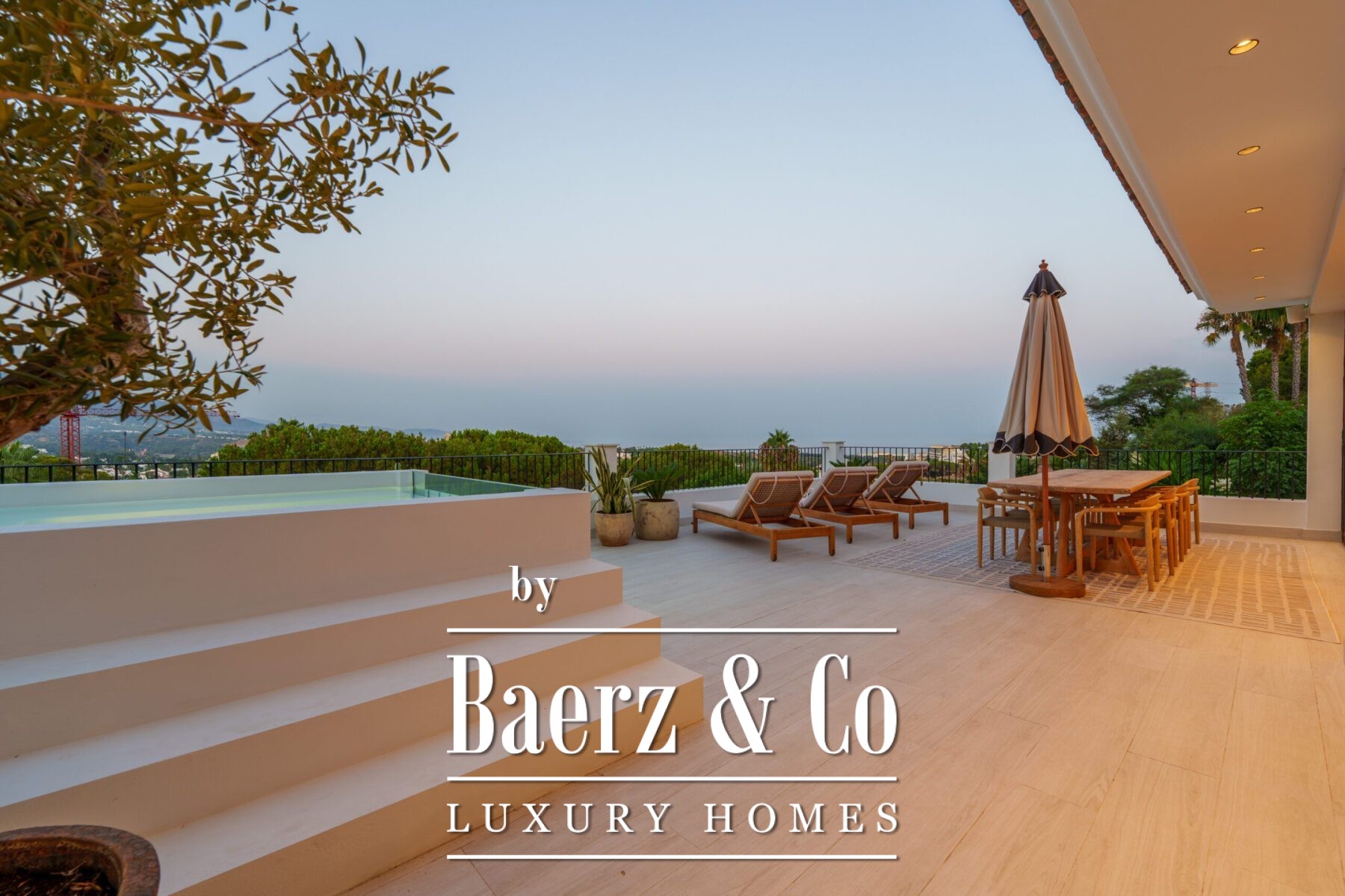 Villa Marbella with panoramic sea and mountain views epitomises the interplay of refined Mediterranean tradition and contemporary architecture in one of the most coveted enclaves of Nueva Andalucía. This expansive villa is arranged over five levels and offers 965 m² of living space on a 1,474 m² plot, blending Andalusian charm with considered, modern elegance.