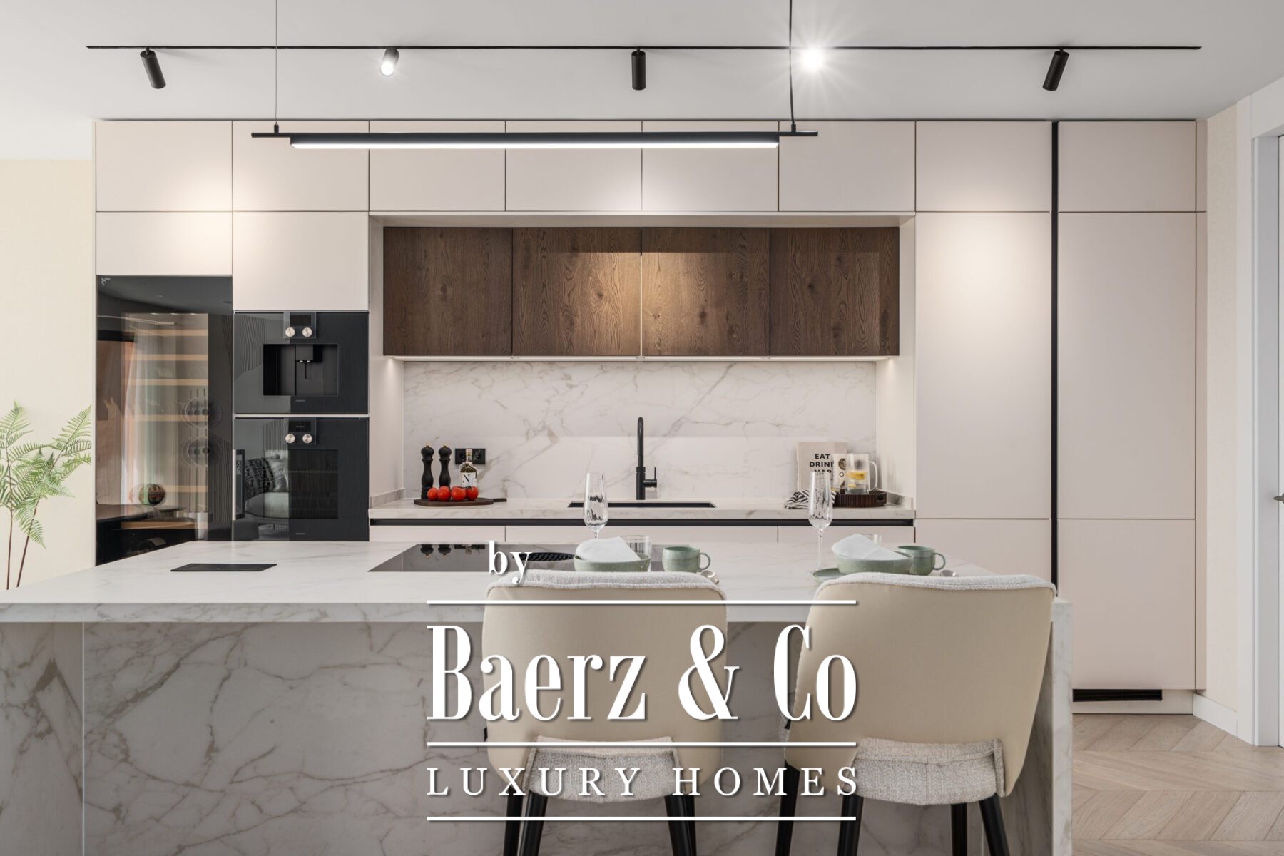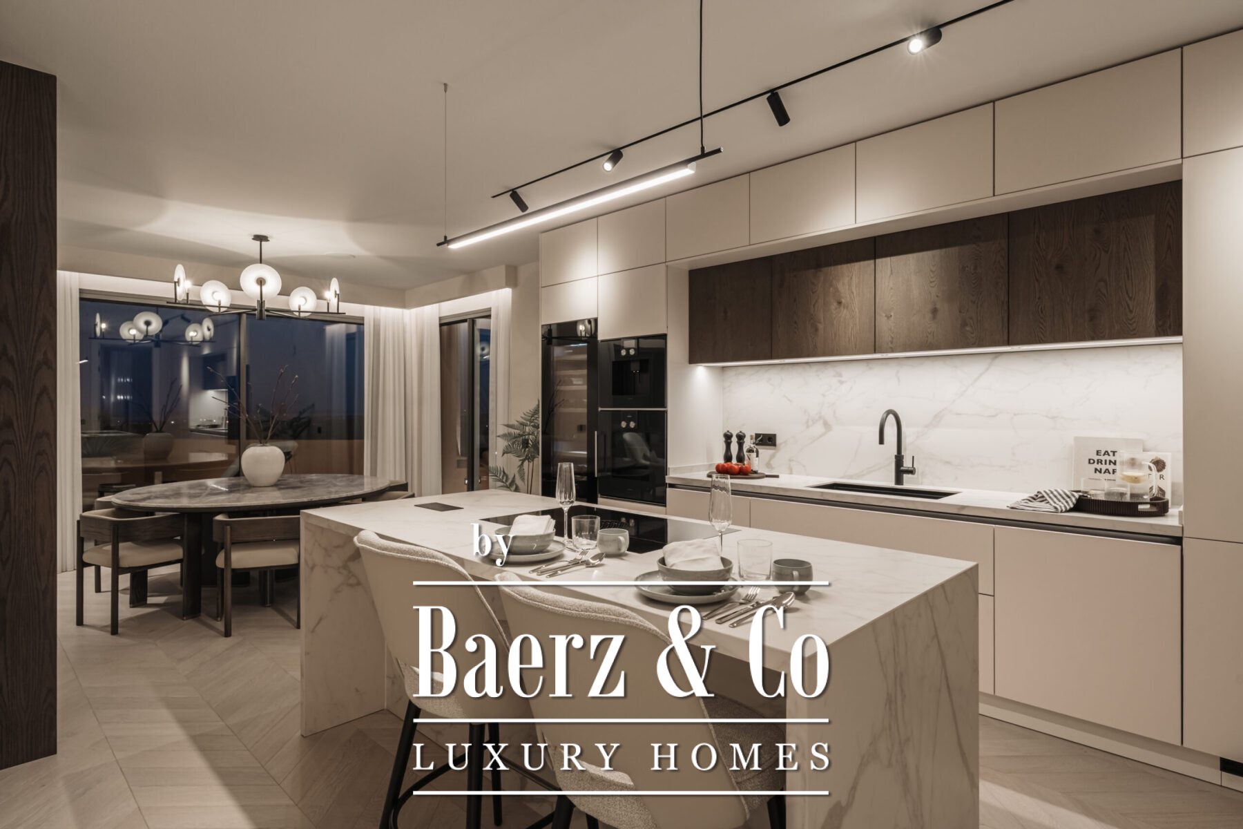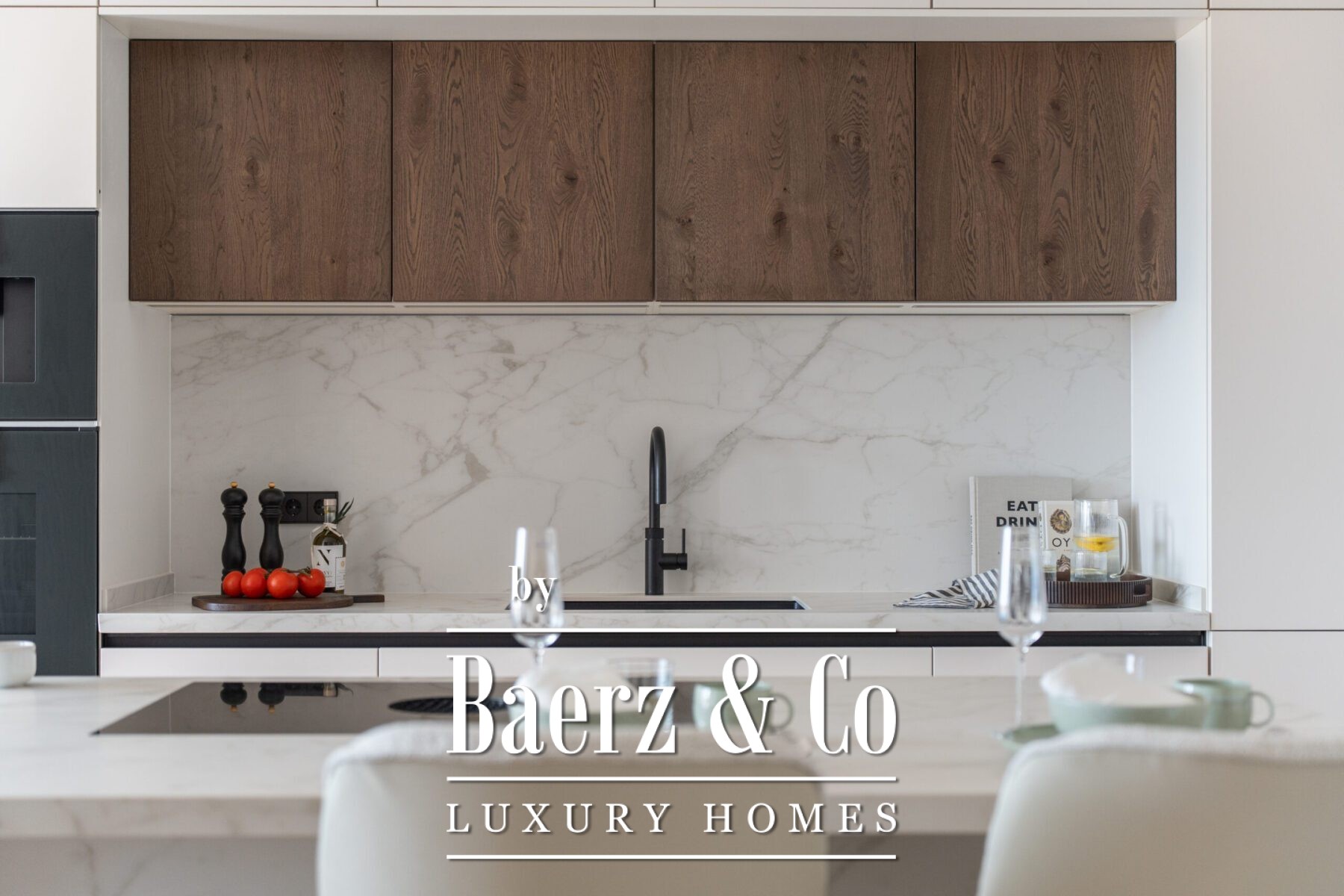 Within this secured, gated enclave with 24-hour security, the four-bedroom, four-and-a-half-bathroom home reveals refined details. Floor-to-ceiling windows illuminate the open living and dining space, seamlessly extending to a spacious terrace designed for tranquil hours or entertaining under the Marbella sky. The kitchen is appointed with Gaggenau appliances, complemented by natural oak floors and an intuitive smart home system, underlining discreet luxury and ease.