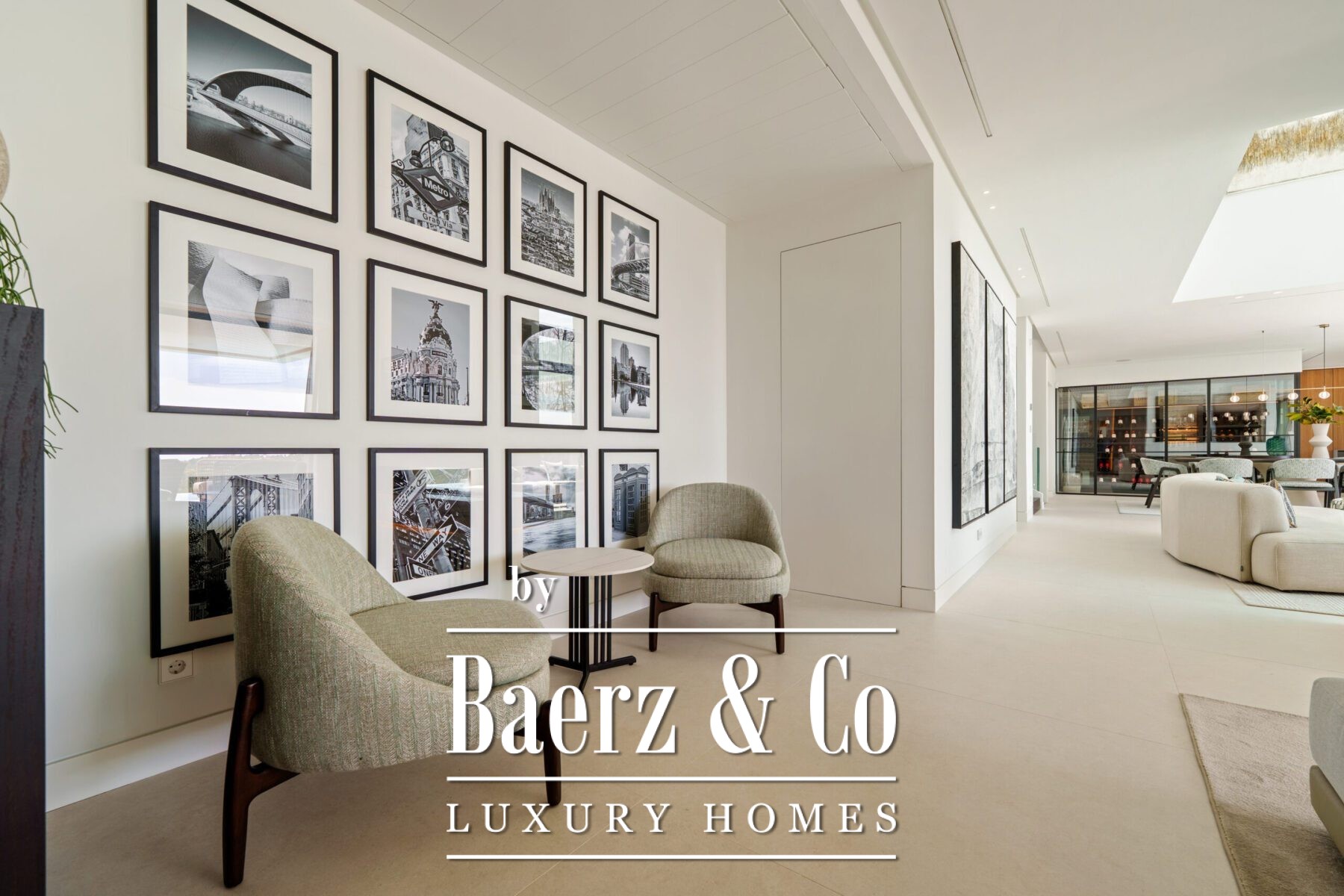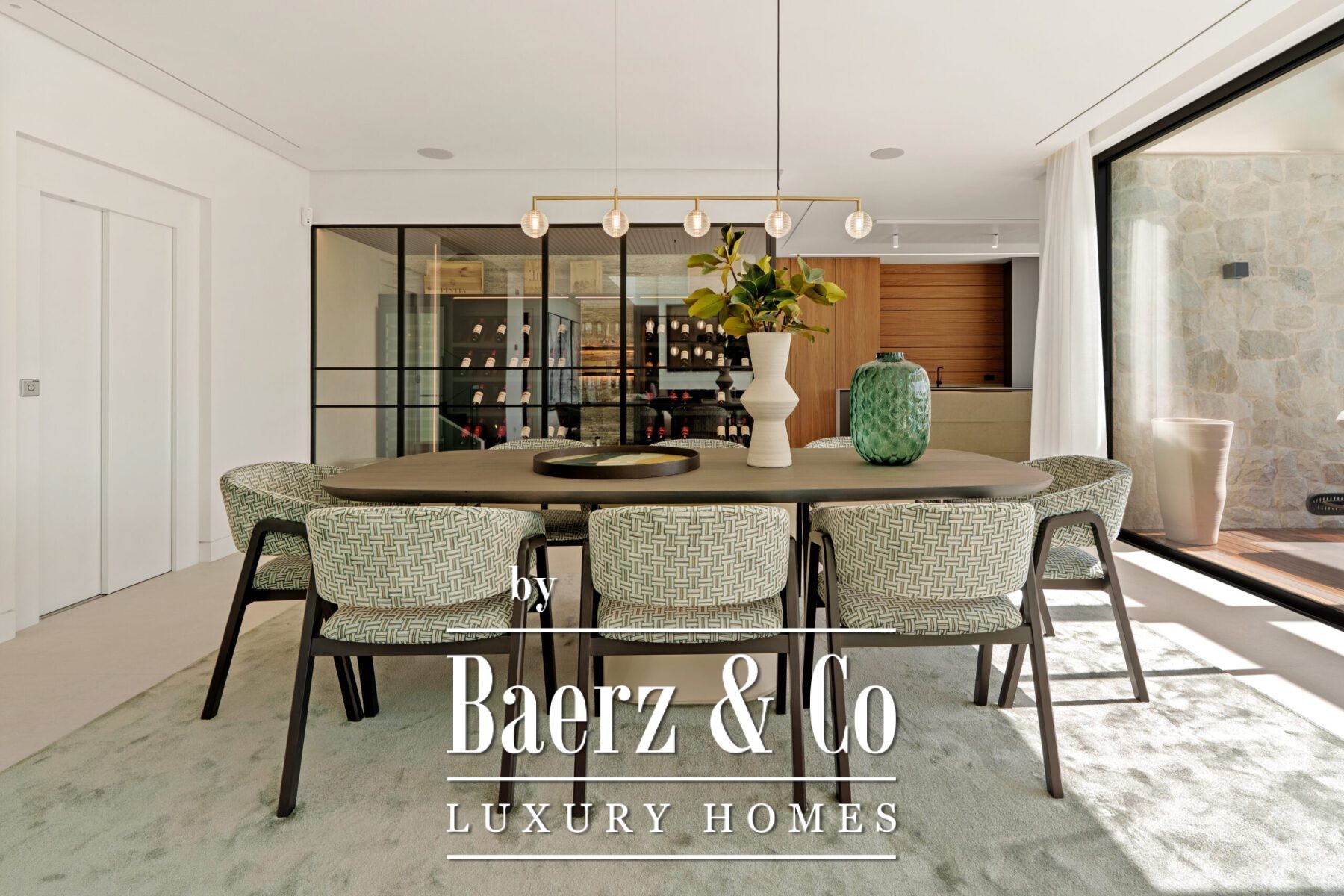 Modern villa Marbella serves as the focus keyword for this six-bedroom residence positioned in the gated enclave of La Quinta, Marbella. Spanning 636m² on a 1,579m² plot, the villa offers architectural precision tuned to the landscape, affording panoramic views of the Mediterranean and mountains from a private, elevated position. The main living areas are open-plan, where the boundaries between indoor and outdoor dissolve through floor-to-ceiling glass. Light is a constant presence, infusing the interconnected living, dining, and kitchen spaces as they lead to expansive terraces.