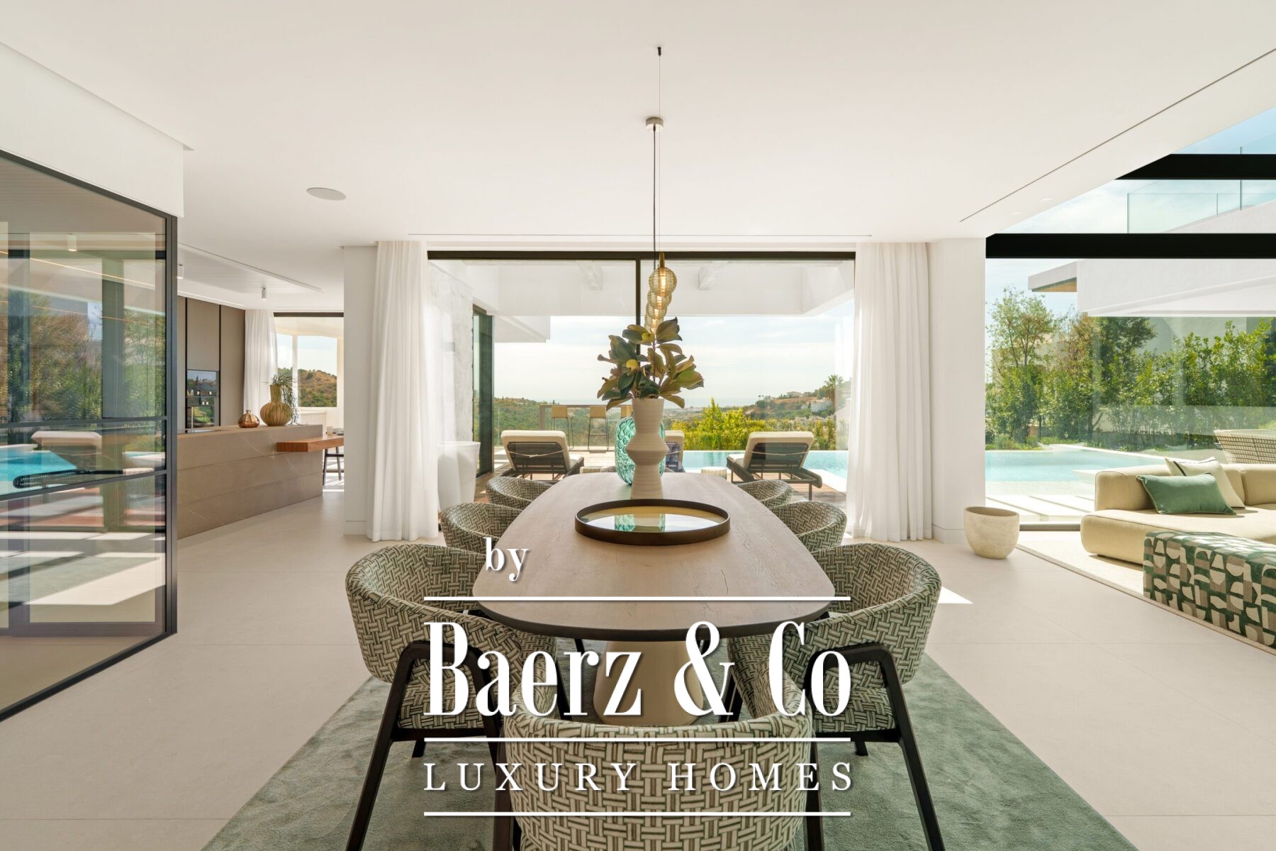 Externally, landscaped gardens, a private infinity pool, and sweeping views over the valley reinforce a sense of retreat, while proximity to golf, amenities, and the coastline ensures seamless connectivity. This luxury villa for sale in Marbella is a complete modern lifestyle property within one of the region’s most revered gated communities.
