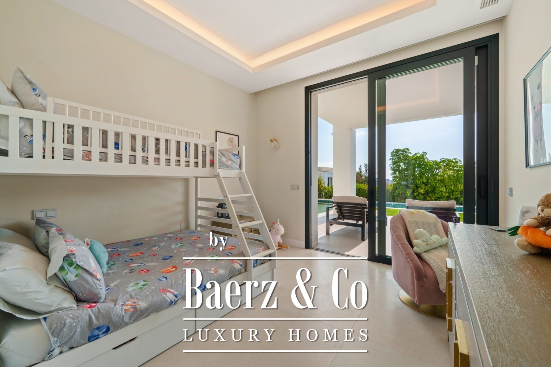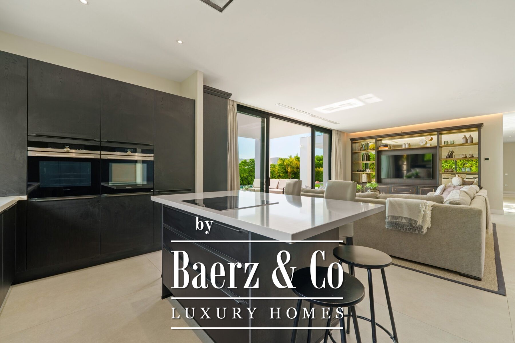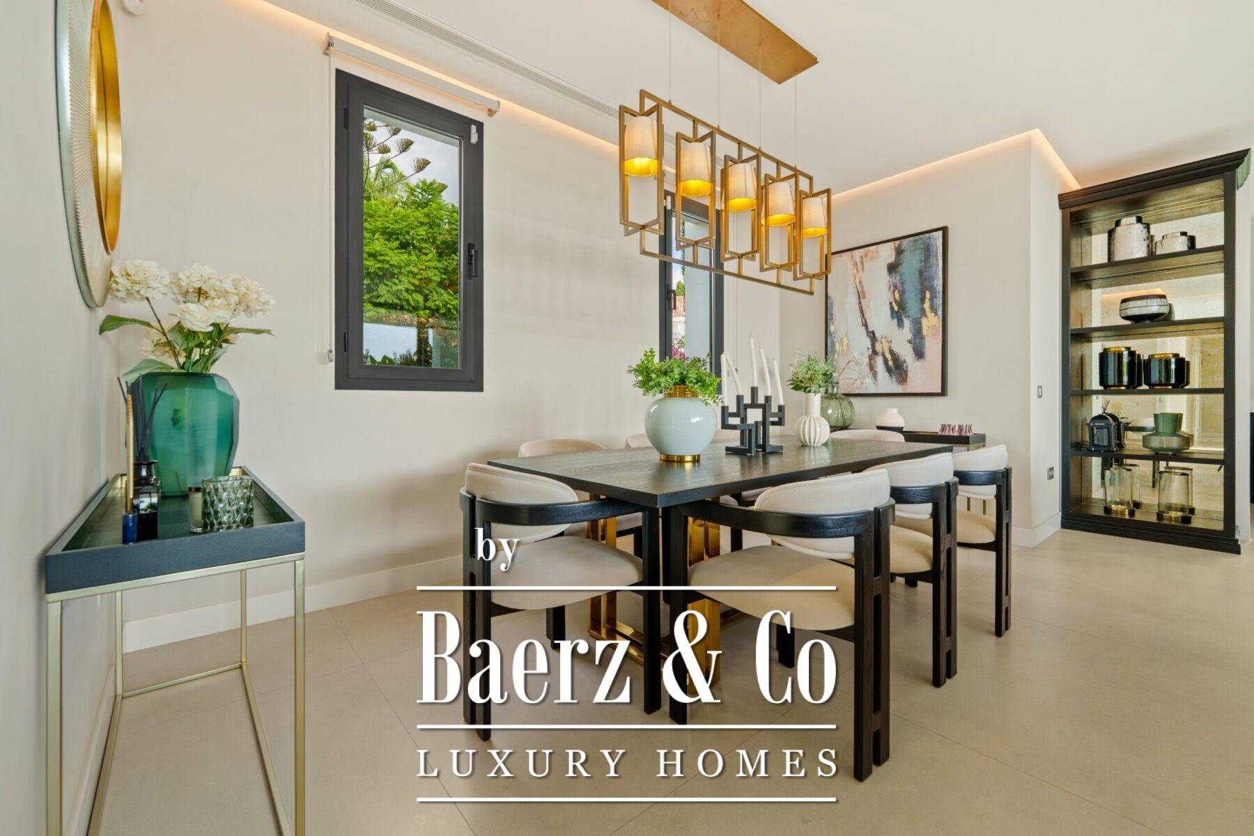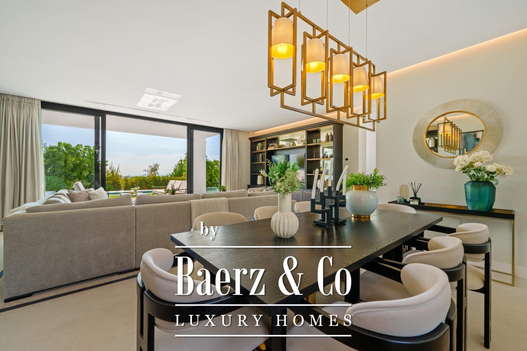 Contemporary villa Marbella defines a new standard for modern living in one of Marbella’s most coveted locations. This residence extends across 581 m² of living space, where a fluid open-plan design draws together the lounge, dining area, and fully equipped kitchen. Floor-to-ceiling glass doors connect the interior seamlessly to the outdoors, inviting natural light and offering views across the private plot of 1231 m².