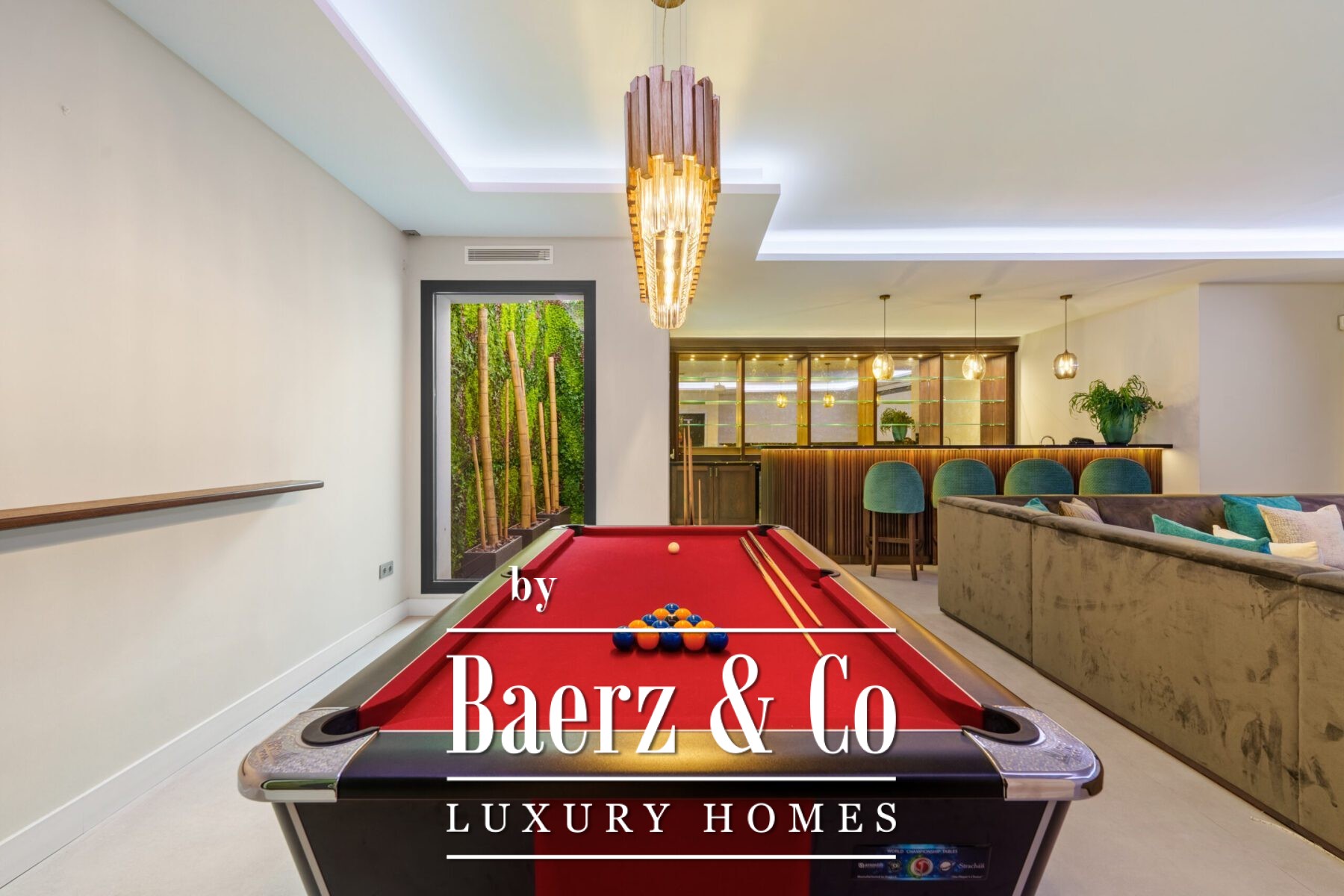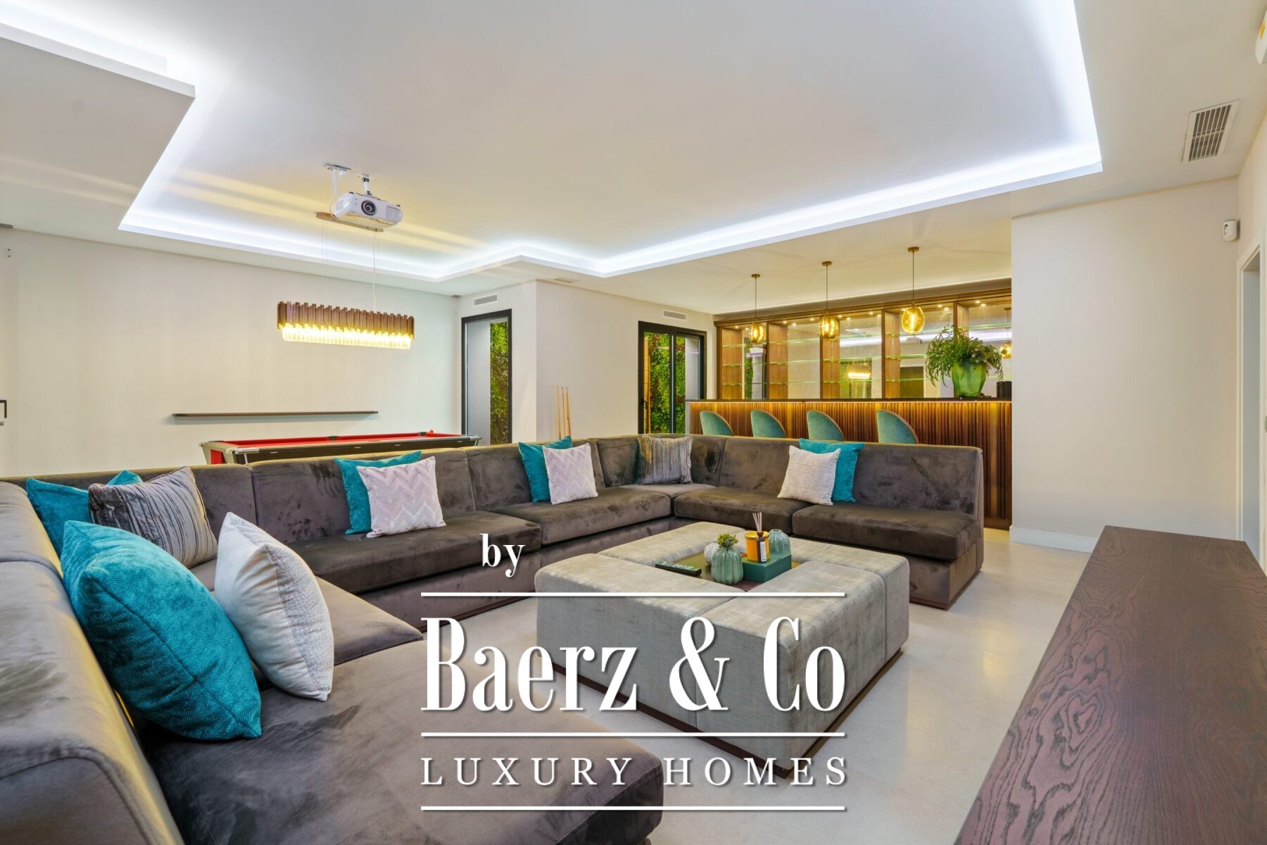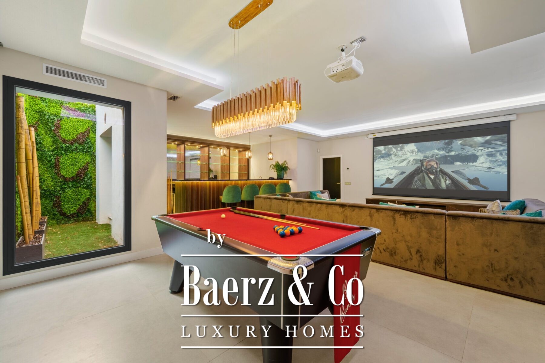For leisure and gathering, a dedicated cinema-style room features a bar, pool table, and projector screen. Modern amenities include an air source heat pump, solar panels with battery storage, a smart home system, and security features for peace of mind. The villa’s location offers immediate access to local stores and Marbella’s golf, beach, and sea, completing a luxury villa for sale in Marbella that balances pristine architecture with everyday practicality.
