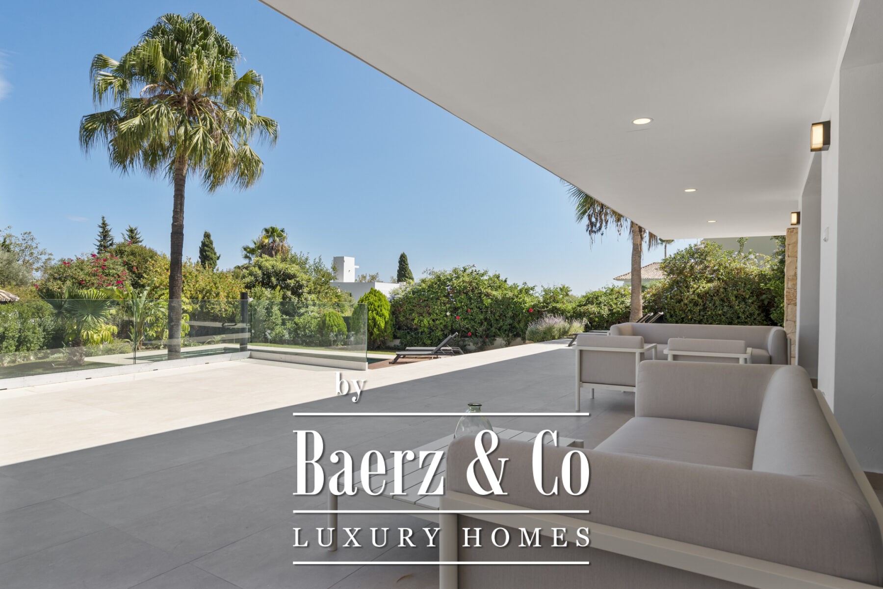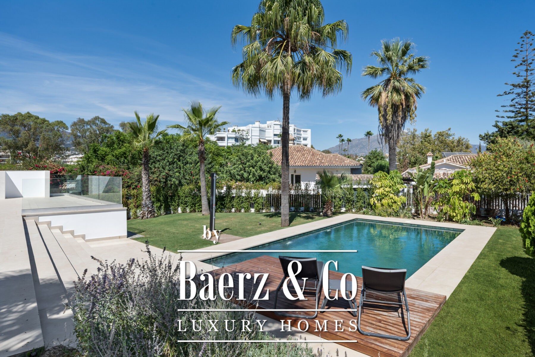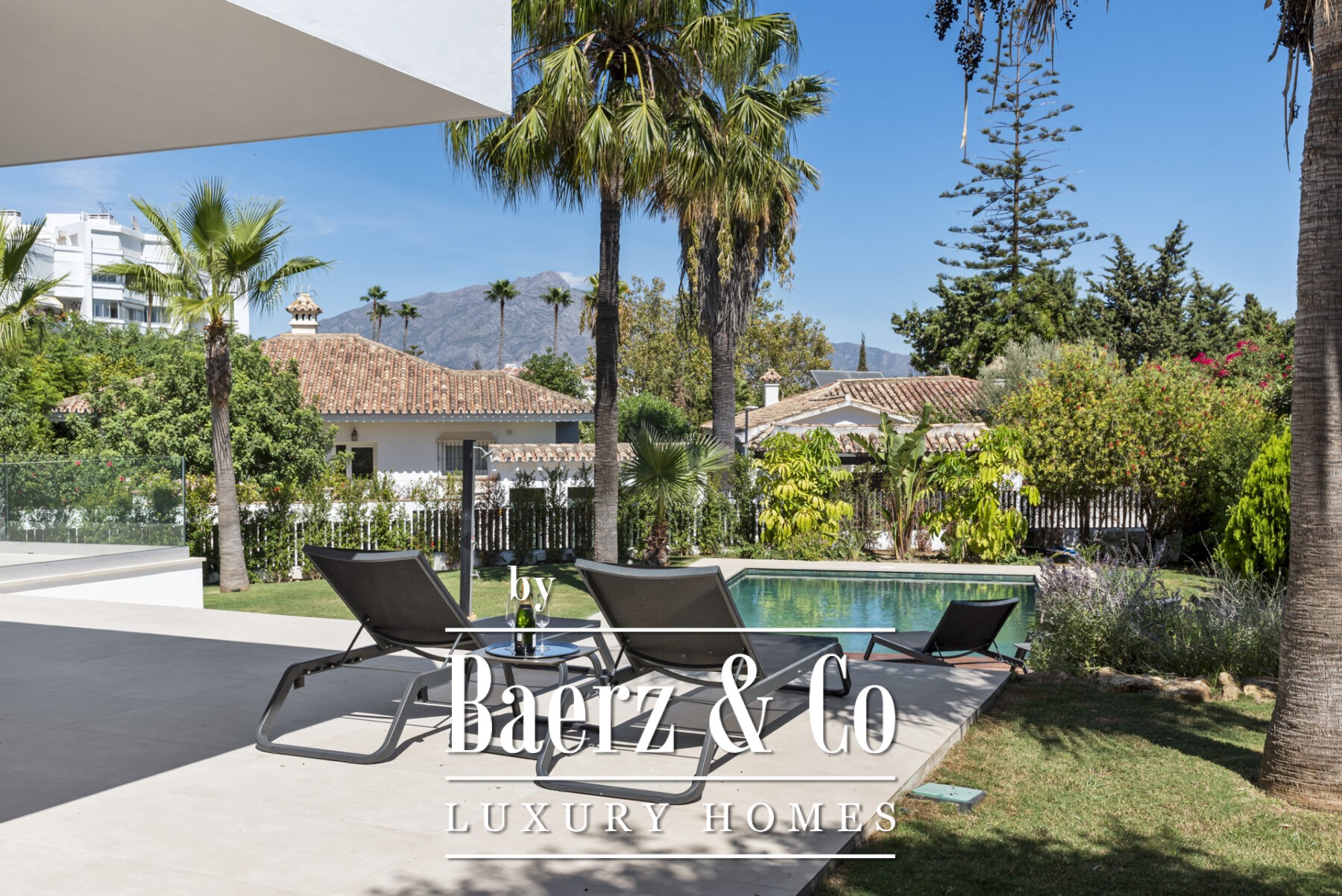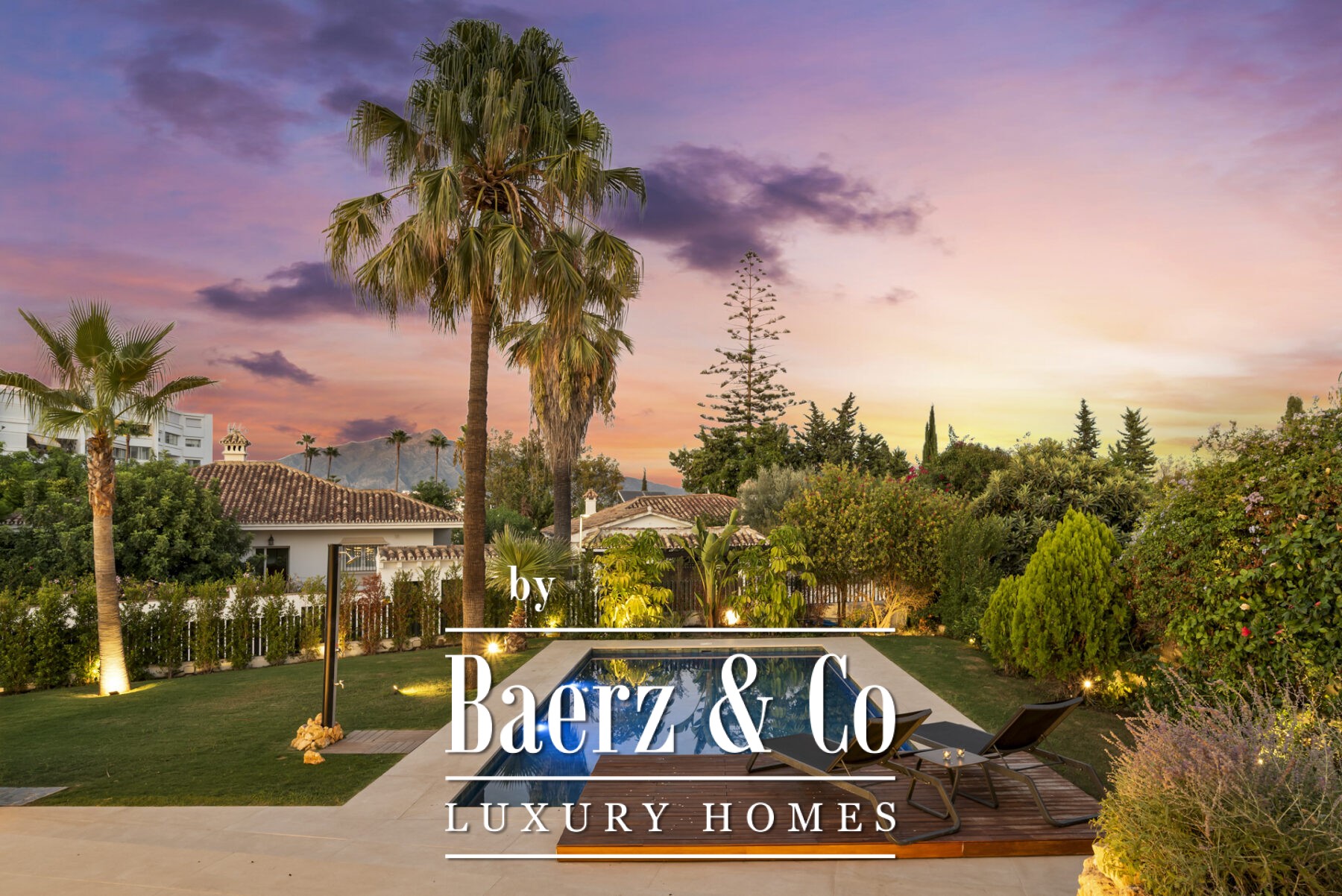 Villa Marbella with sea and mountain views welcomes you to an atmosphere of refined Mediterranean living. Ideally situated within walking distance of Guadalmina Golf Club and only minutes from the coastline, this 320 m² villa offers both seclusion and accessibility in Marbella’s coveted surroundings.
