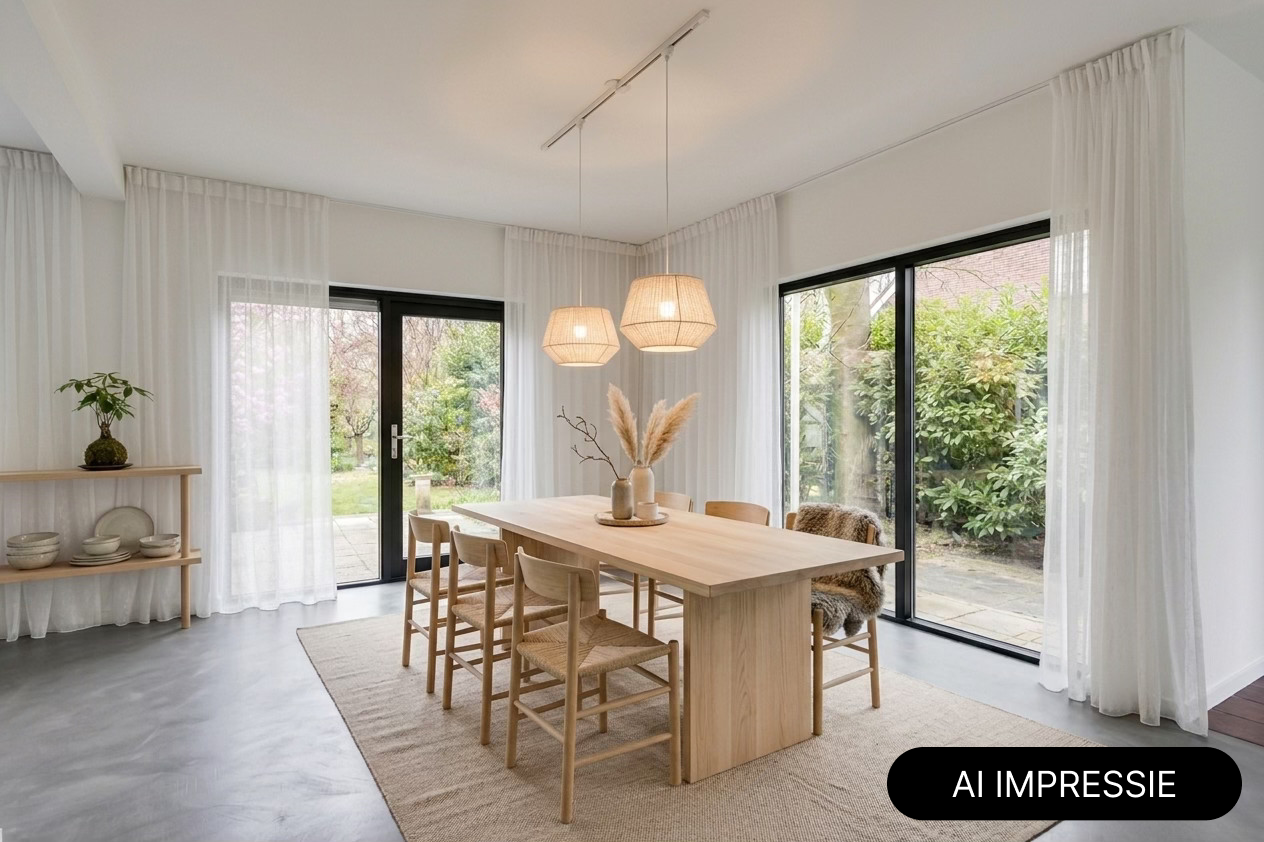 The garden of this home is a wonderful outdoor retreat where you can fully unwind. Behind the house, a spacious terrace stretches out — the perfect place for a morning coffee in the sun or a relaxing evening with friends and family. The lawn offers plenty of space for playing, relaxing, or simply enjoying the outdoors.