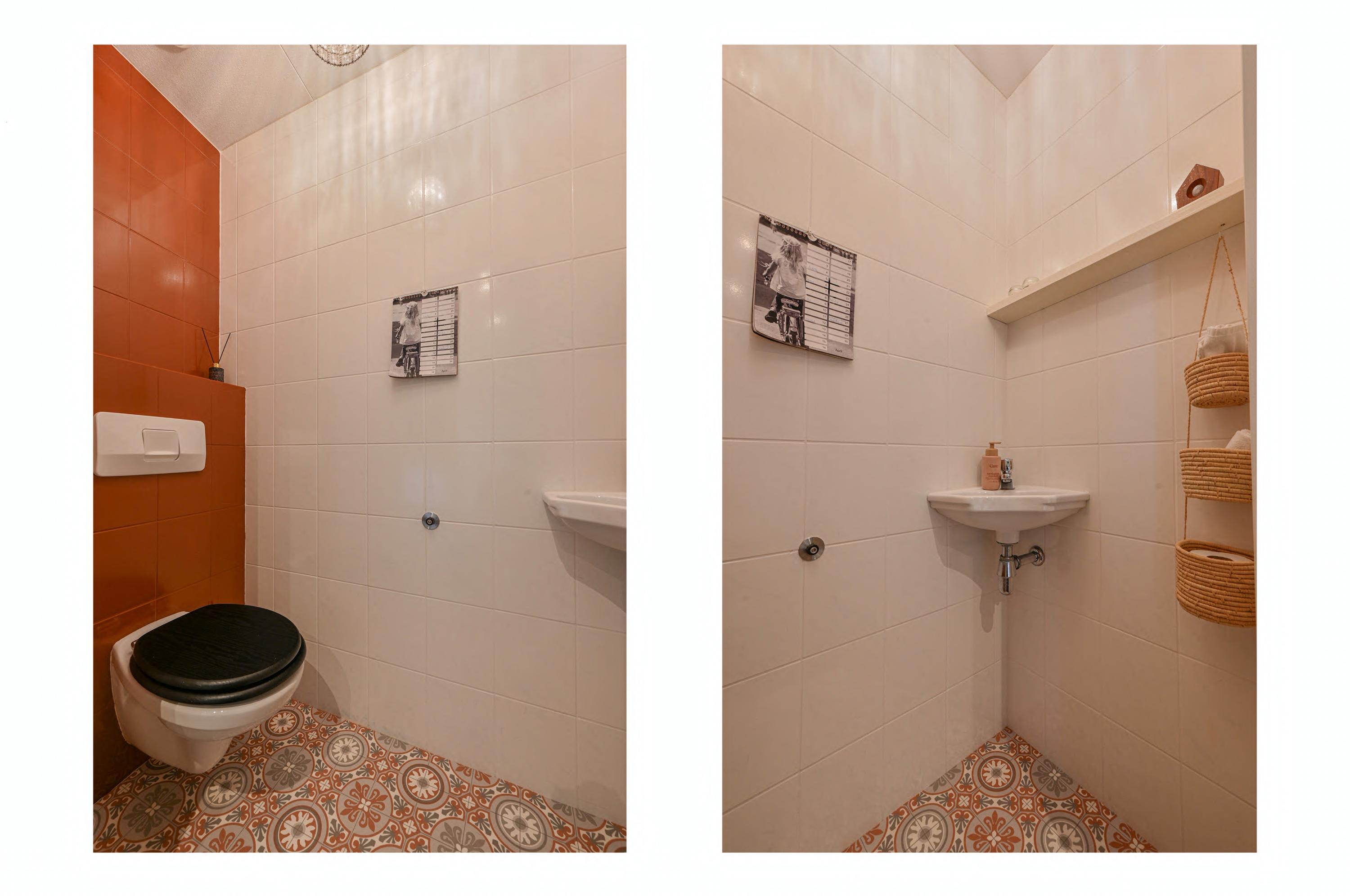 Upon entering the property, the generous setup immediately stands out: a wide driveway with space for no fewer than three cars — always a parking spot when you return home. Through the entrance, you step into the welcoming hallway, which features the staircase, meter cupboard, a practical storage closet, a toilet with washbasin, and additional storage under the stairs — ideal for shoes or everyday items you prefer to keep out of sight.