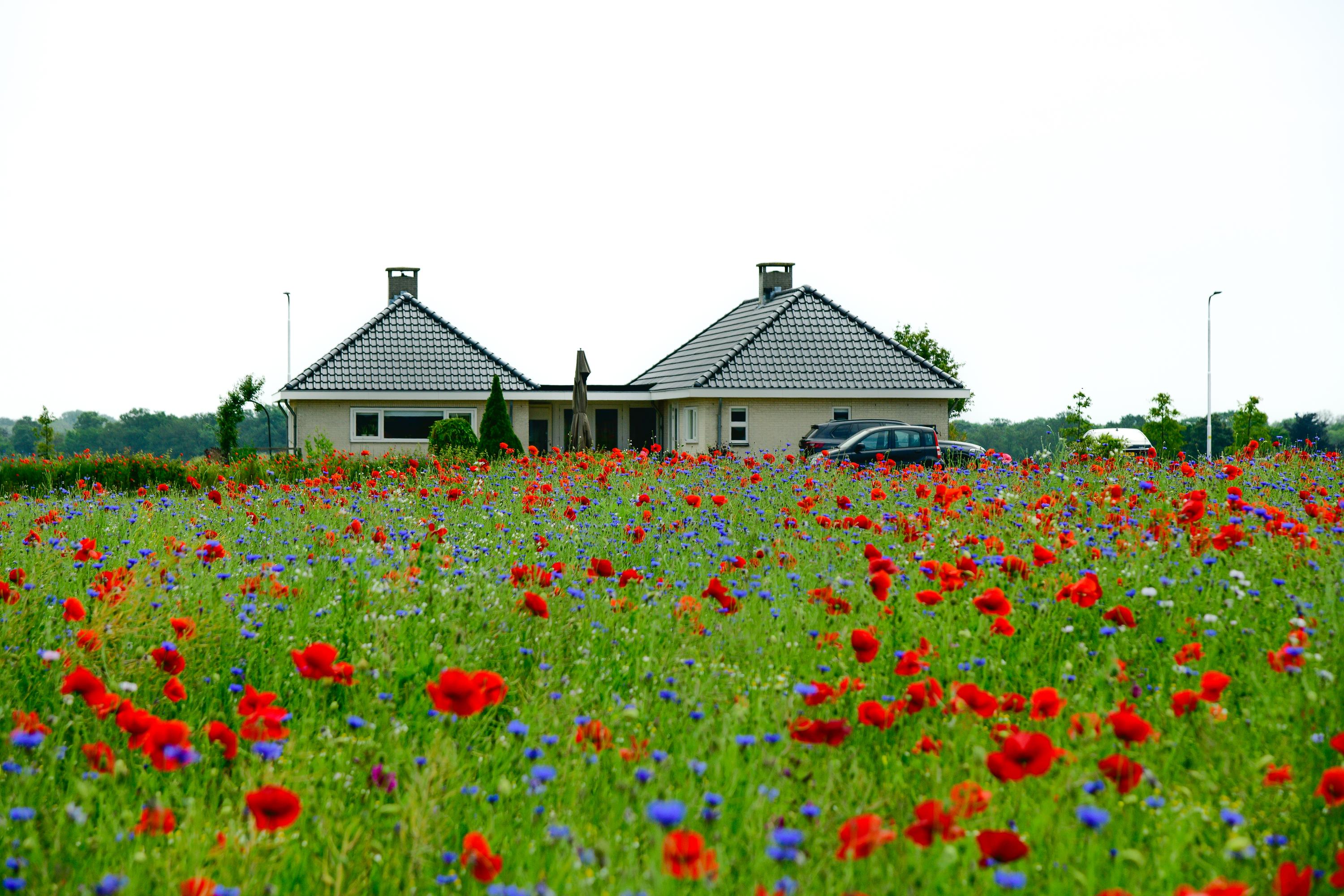 Here you experience the land, the weather and the seasons, but above all you experience nature. The current residents have put their heart and soul into making this a true Garden of Eden, with an eye for biodiversity and aesthetics. The colorful borders are a poem of color and form throughout the garden. At the back of the garden, half an acre has been sown with wildflowers, and this is something spectacular; around May and June it is a sensory feast of fragrance and color here, due to the many thousands of cornflowers, chamomile buds and poppies.