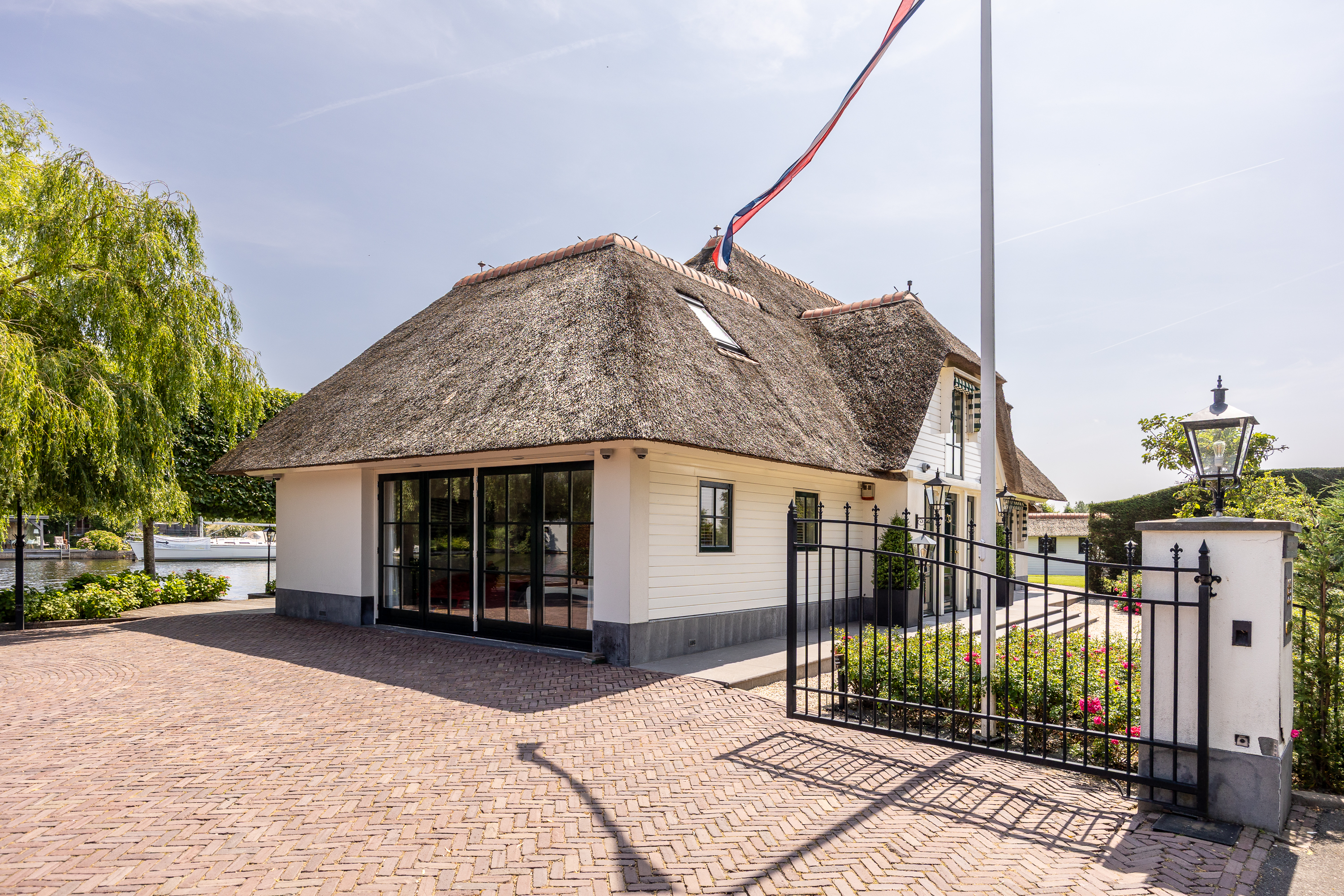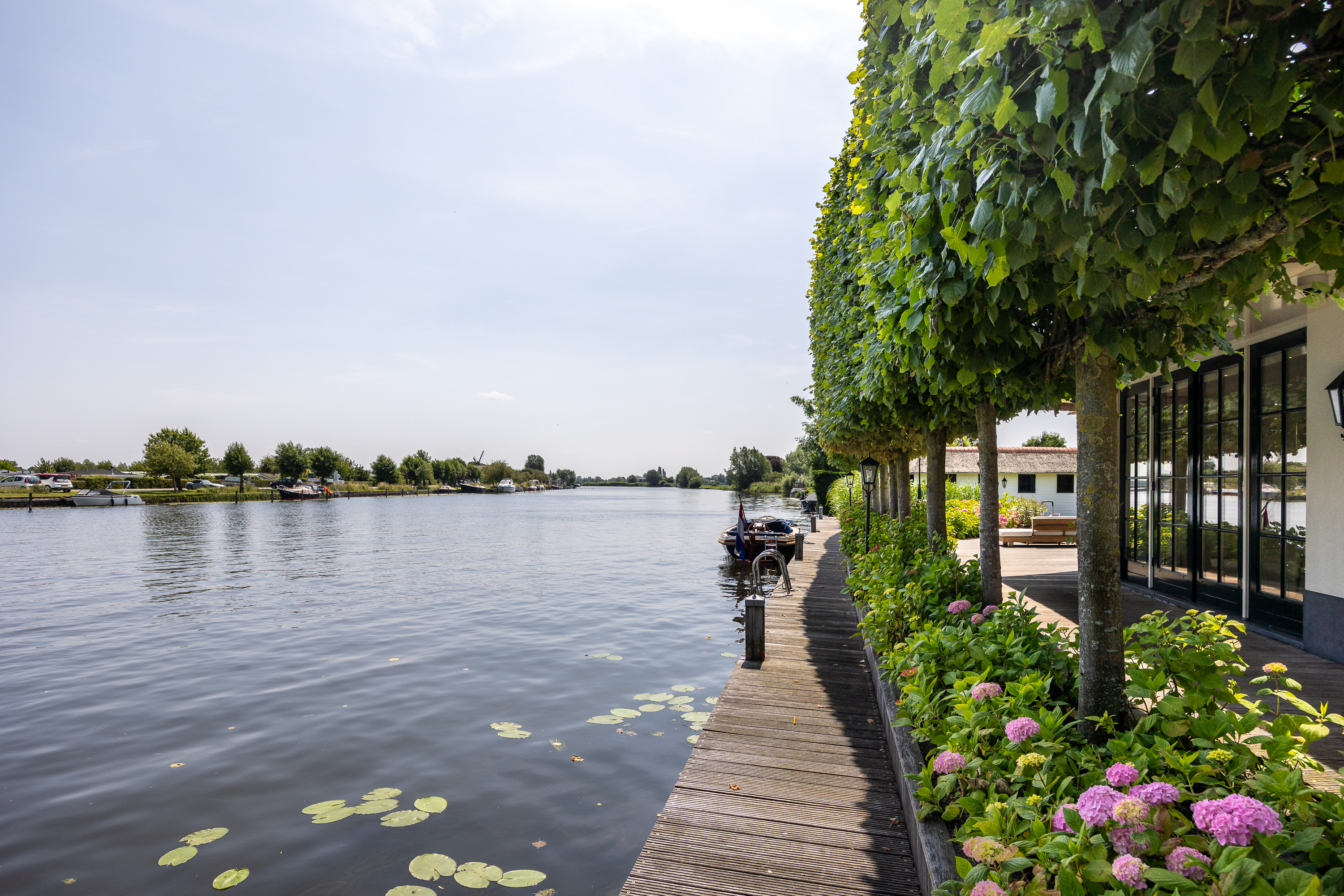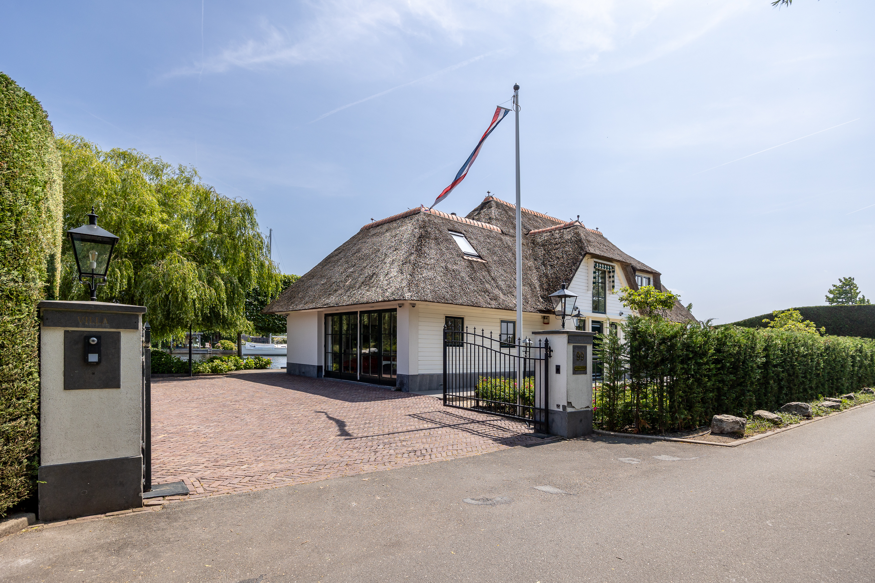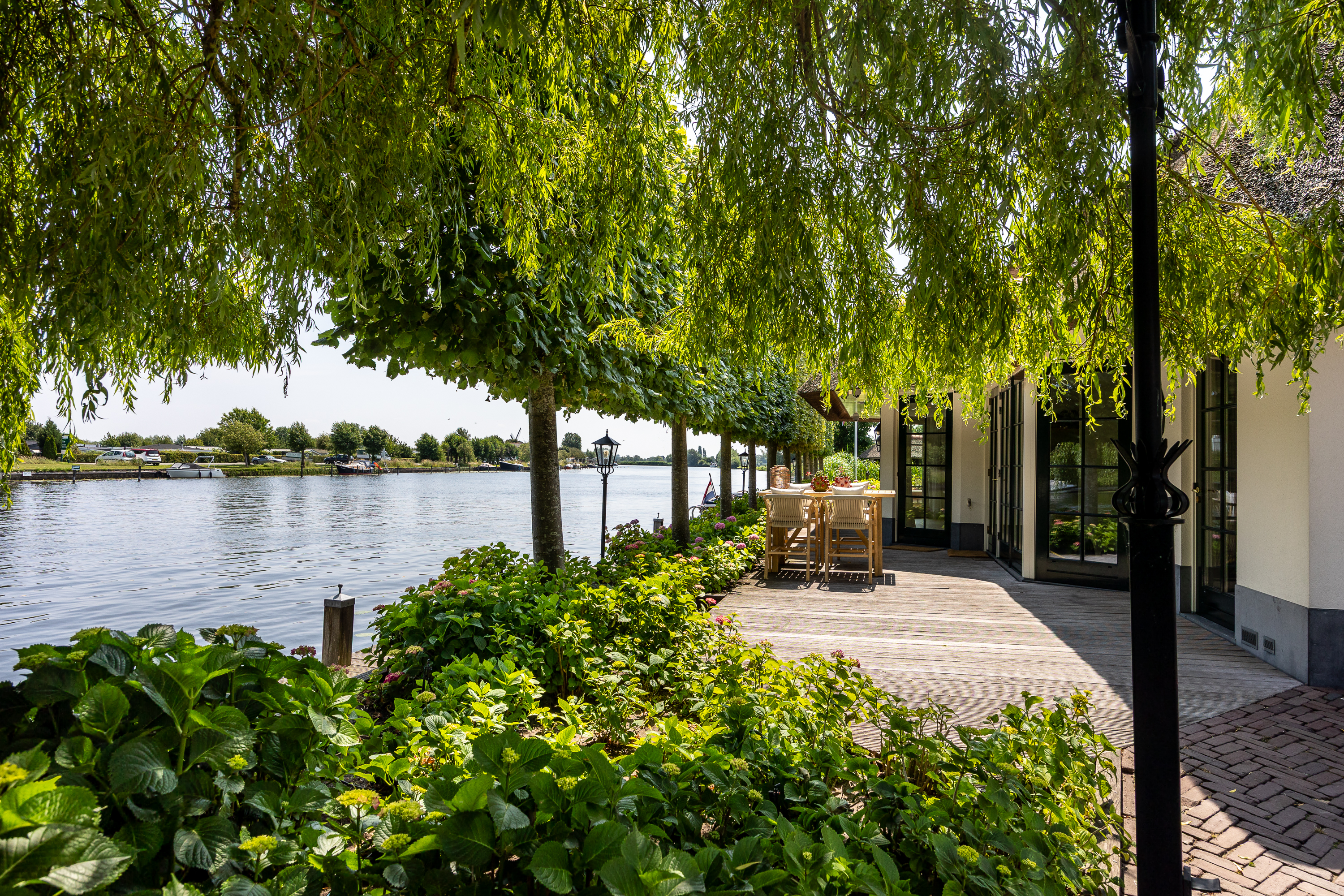 Vreelandseweg 99 in Nigtevecht - A beautiful, modern (completely renovated in 2023), luxurious, thatched villa on the majestic River Vecht, just outside Amsterdam. Living here means endless enjoyment with family and friends of the beautiful nature, the conviviality of water sports on the river, but also the ultimate peace and privacy that this magnificent place has to offer. And all this just a stone's throw (20 minutes) from Amsterdam and the charming villages of Nigtevecht and Vreeland (5 minutes).