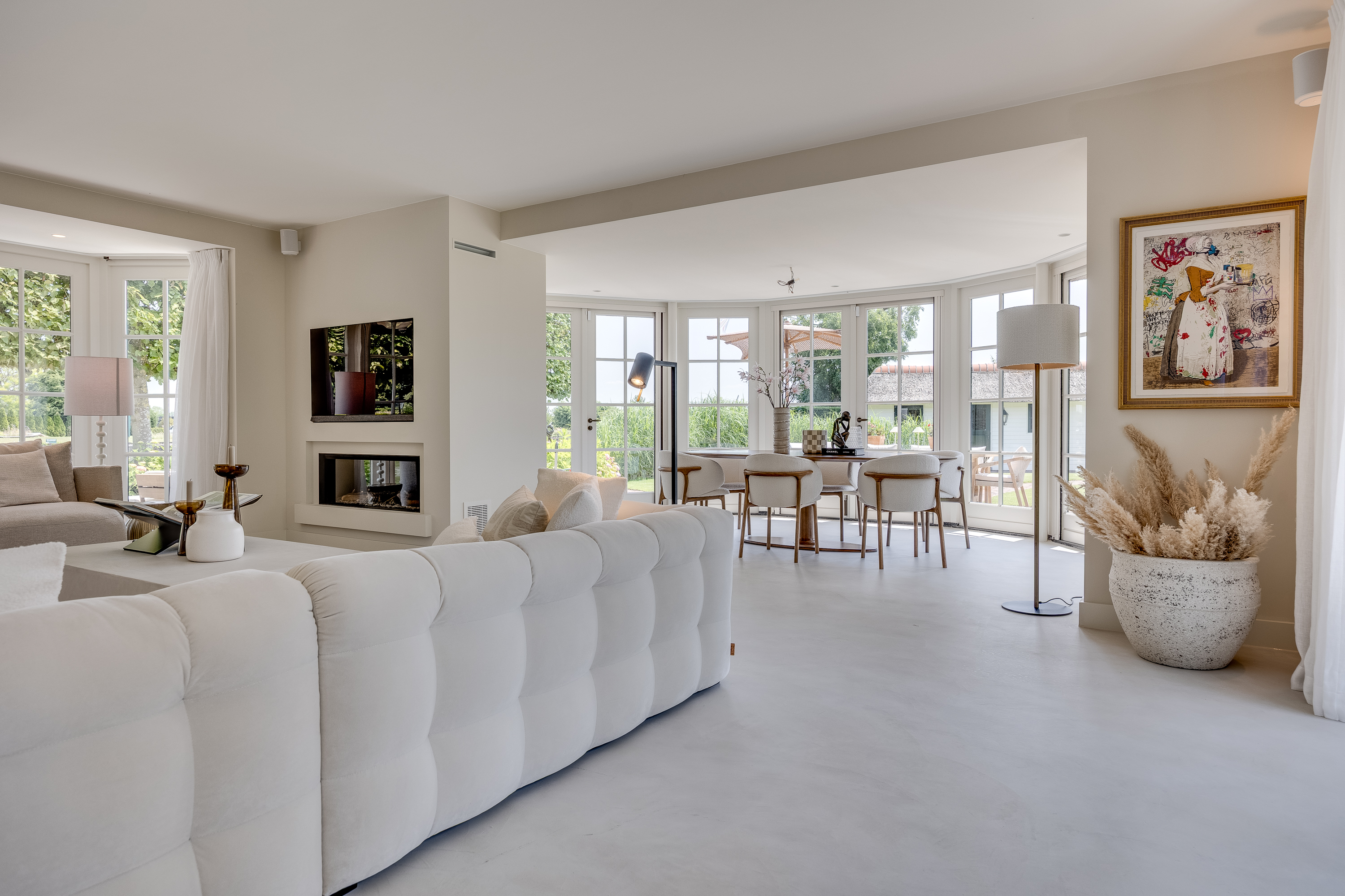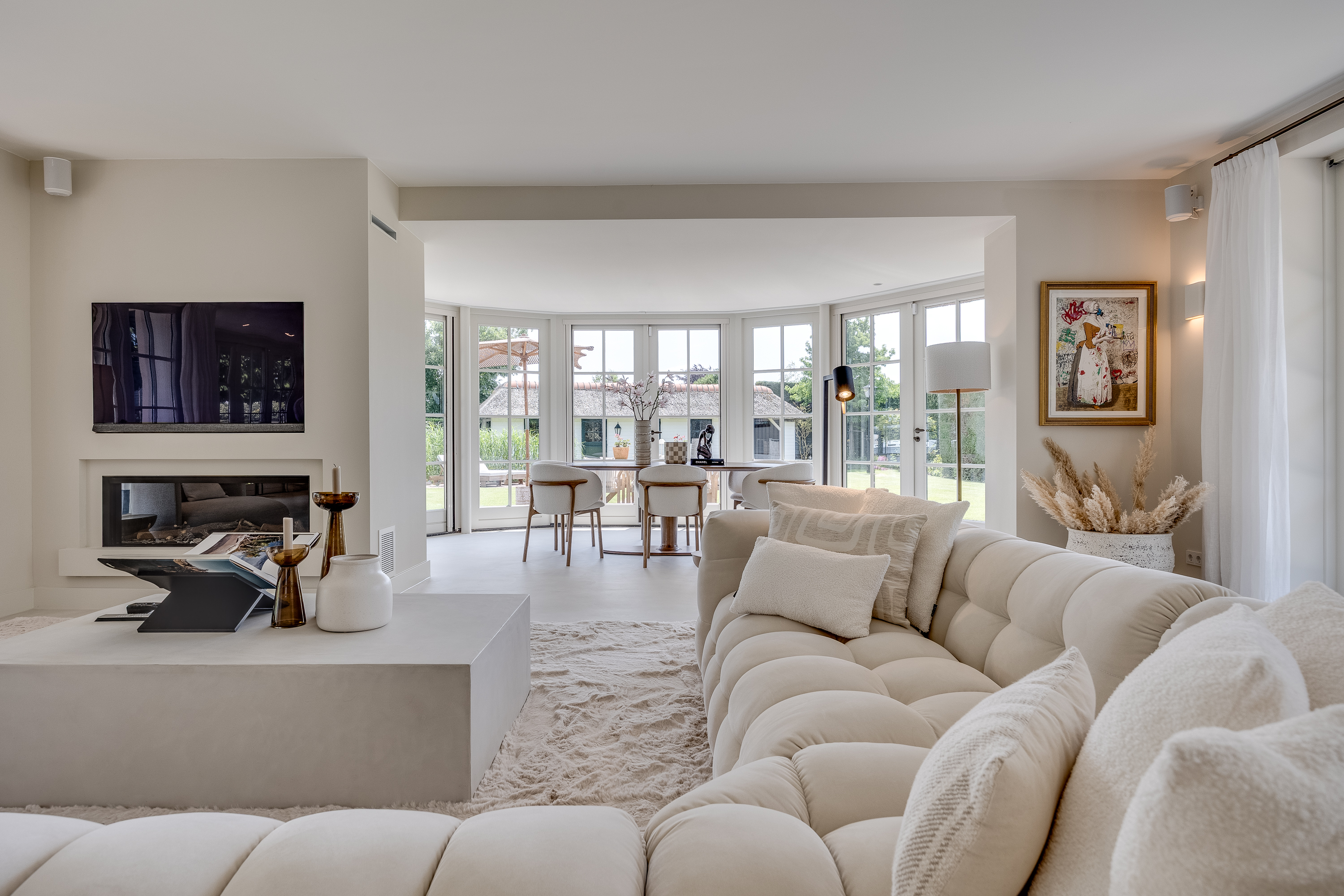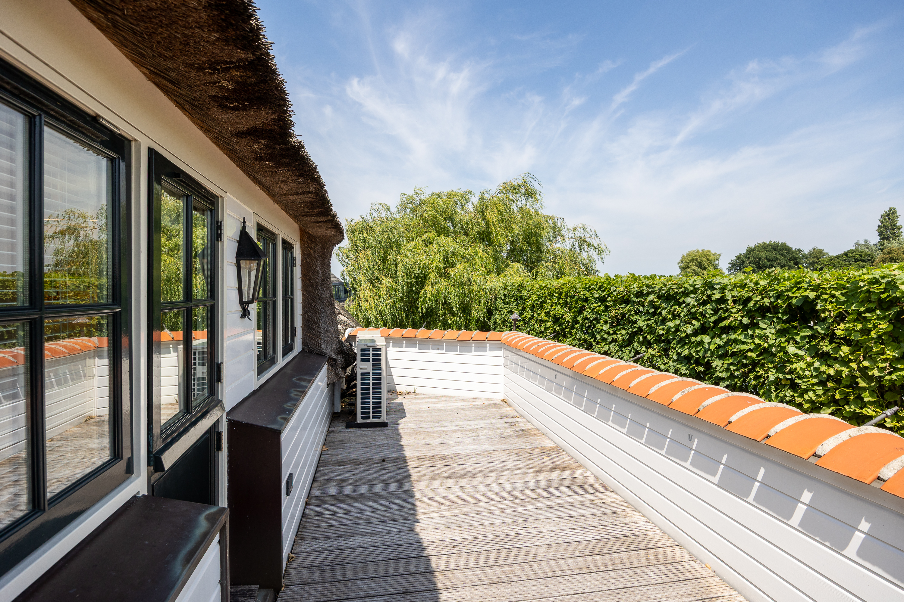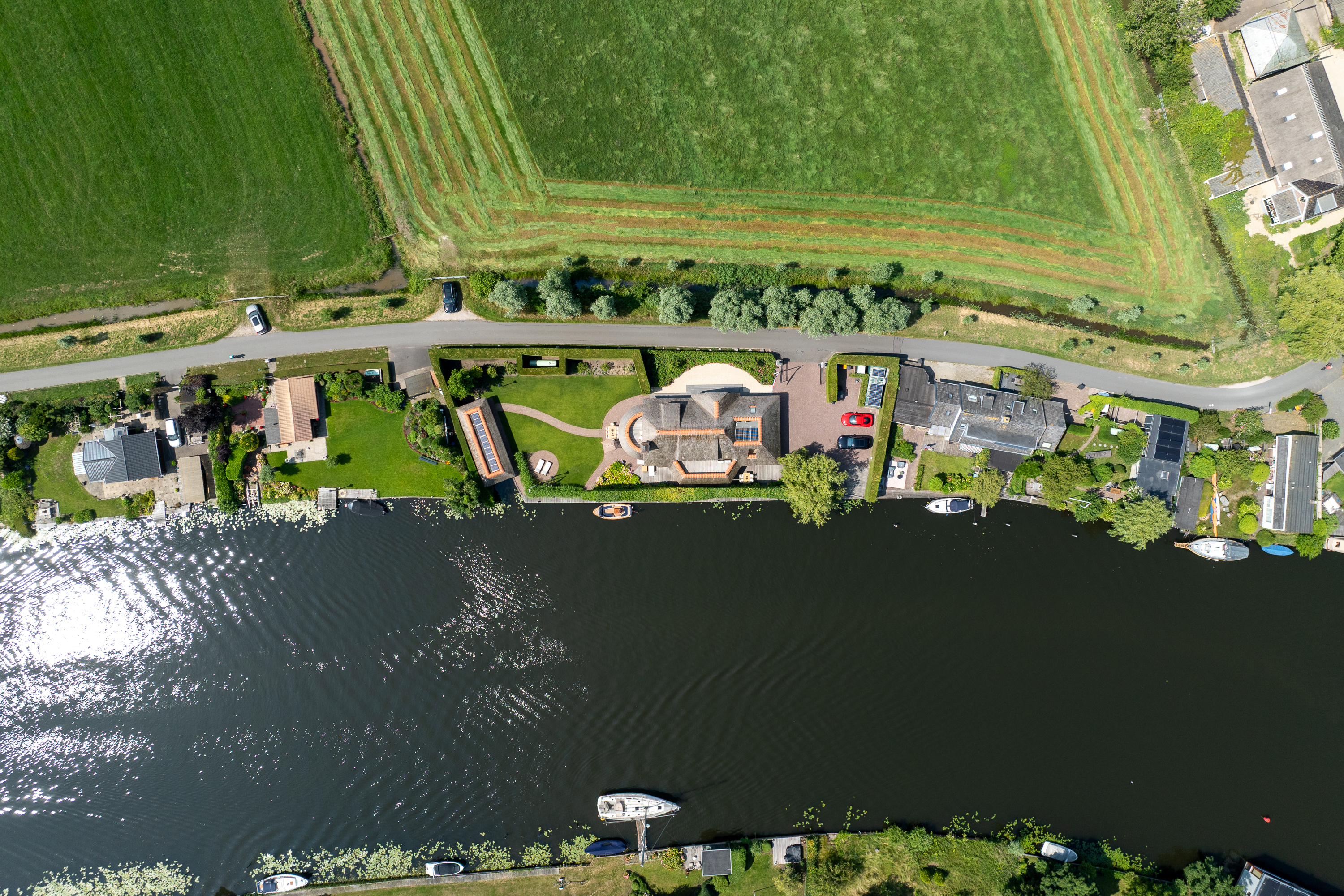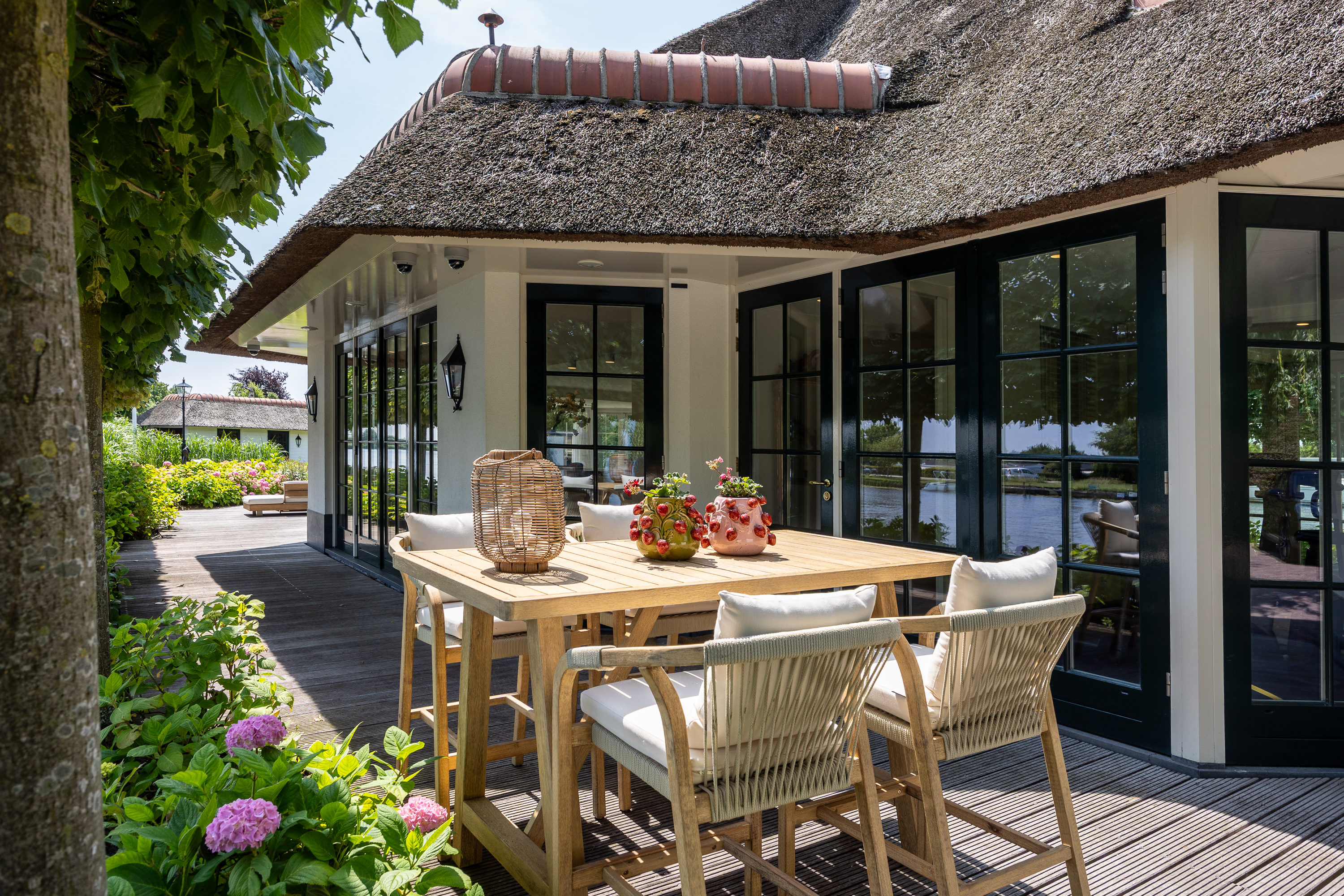 Vreelandseweg 99 in Nigtevecht - A beautiful, modern (completely renovated in 2023), luxurious, thatched villa on the majestic River Vecht, just outside Amsterdam. Living here means endless enjoyment with family and friends of the beautiful nature, the conviviality of water sports on the river, but also the ultimate peace and privacy that this magnificent place has to offer. And all this just a stone's throw (20 minutes) from Amsterdam and the charming villages of Nigtevecht and Vreeland (5 minutes).