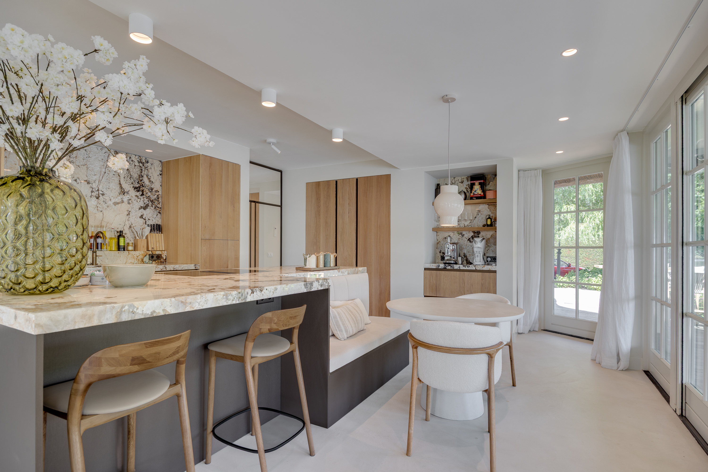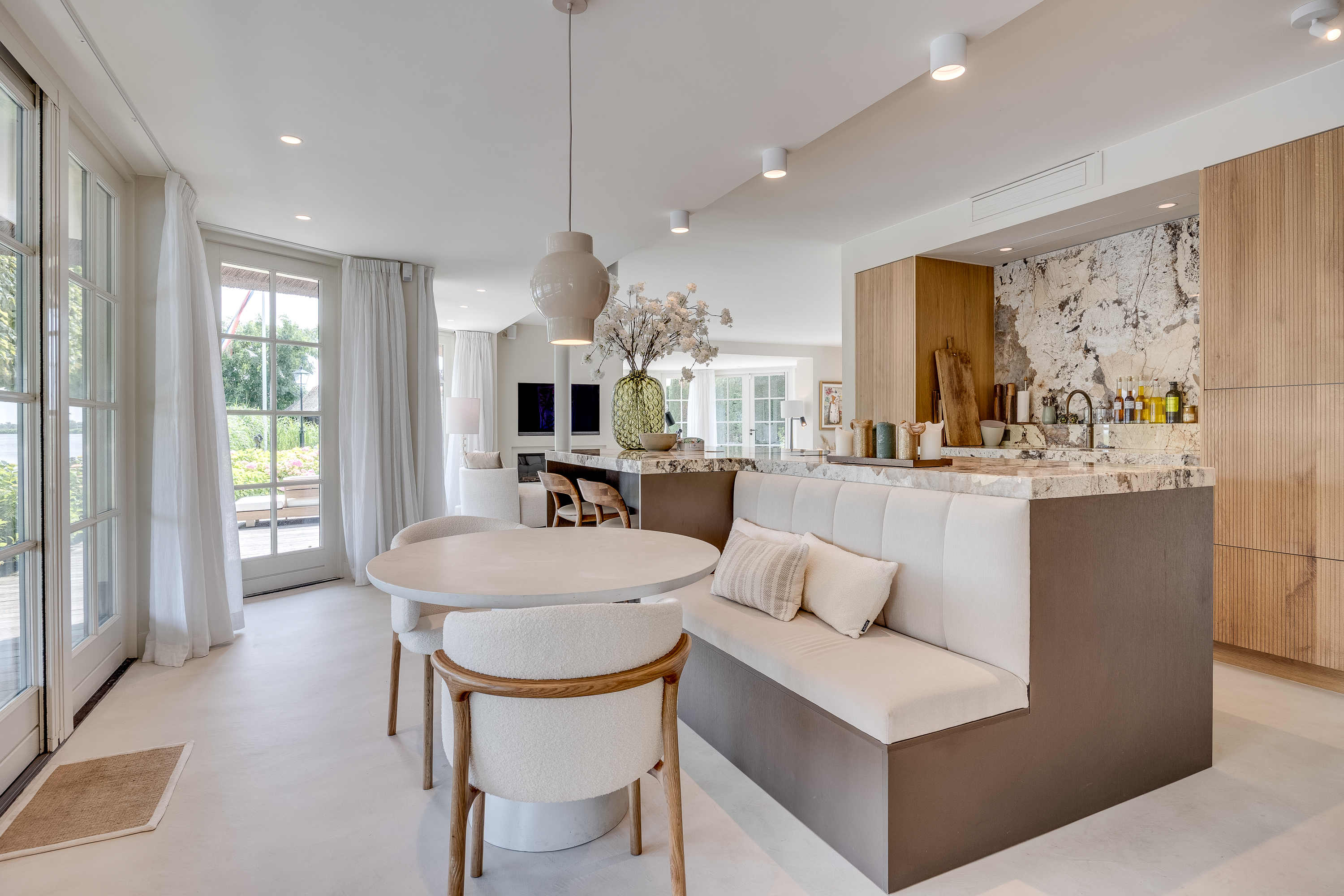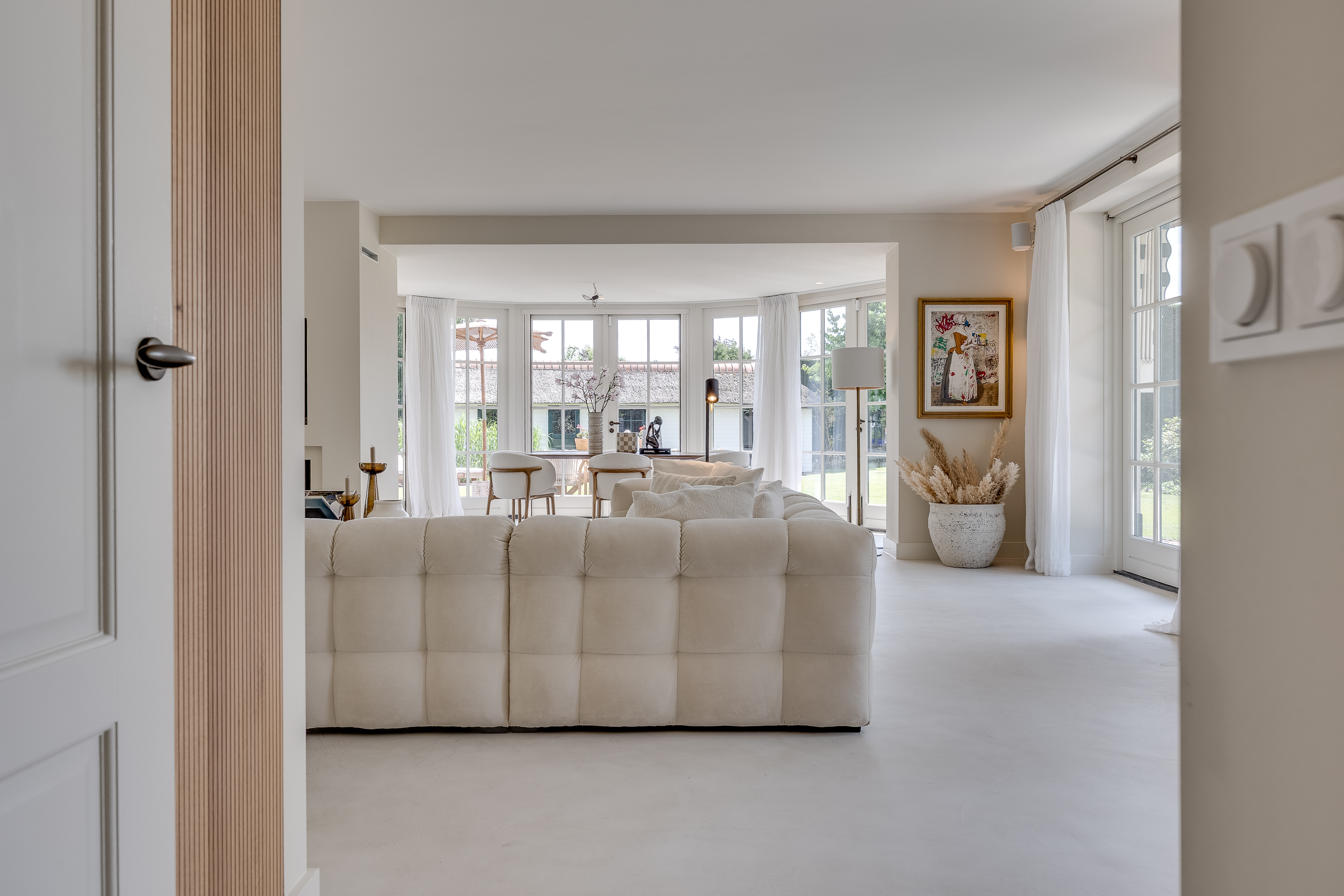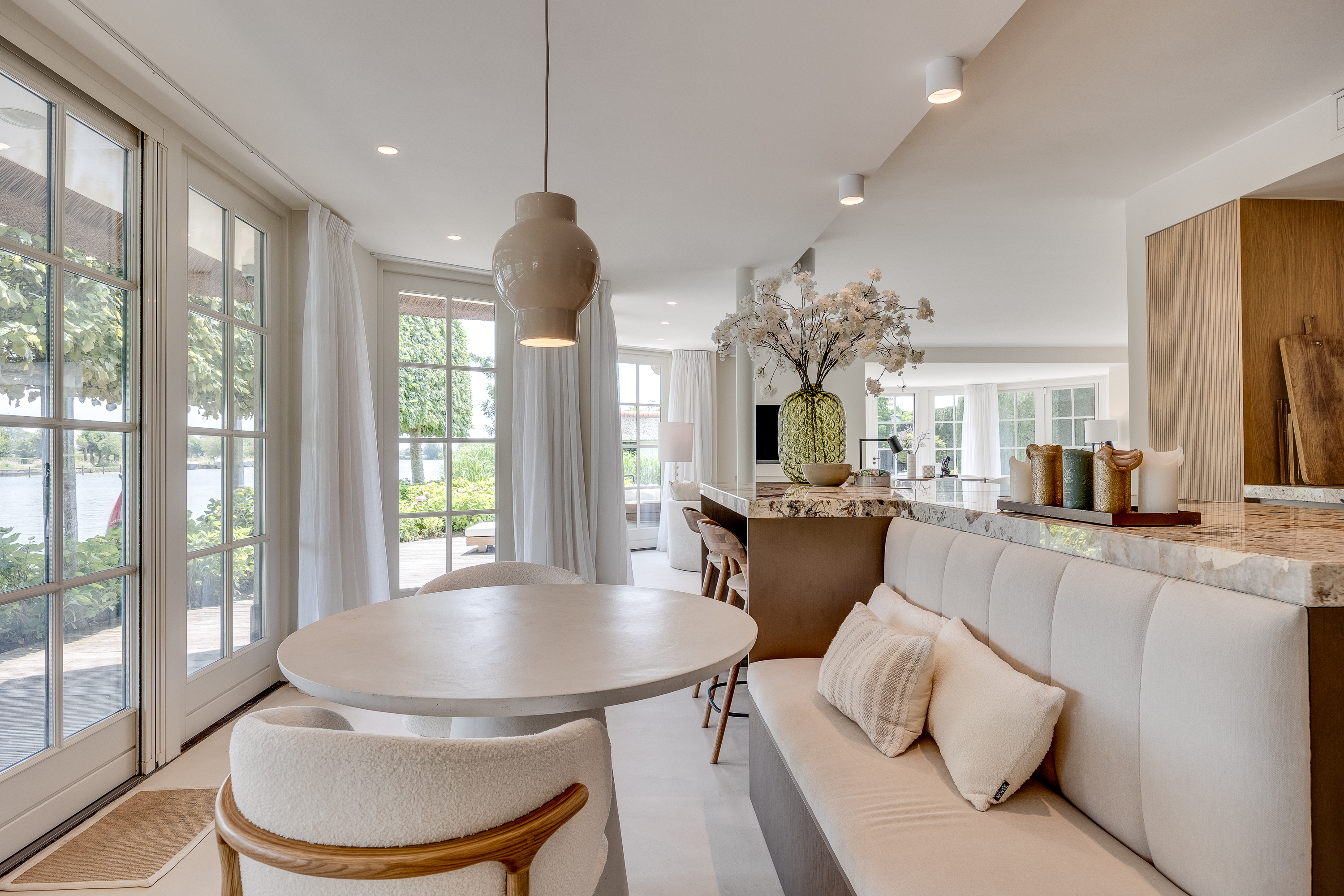 When you leave the hustle and bustle of the big city behind and approach the house via a traditional Dutch country road winding along the beautiful river “de Vecht,” peace and quiet envelop you like a warm blanket. The stately automatic gate opens, you park your car in the spacious parking lot, and you turn off the engine. You are home.