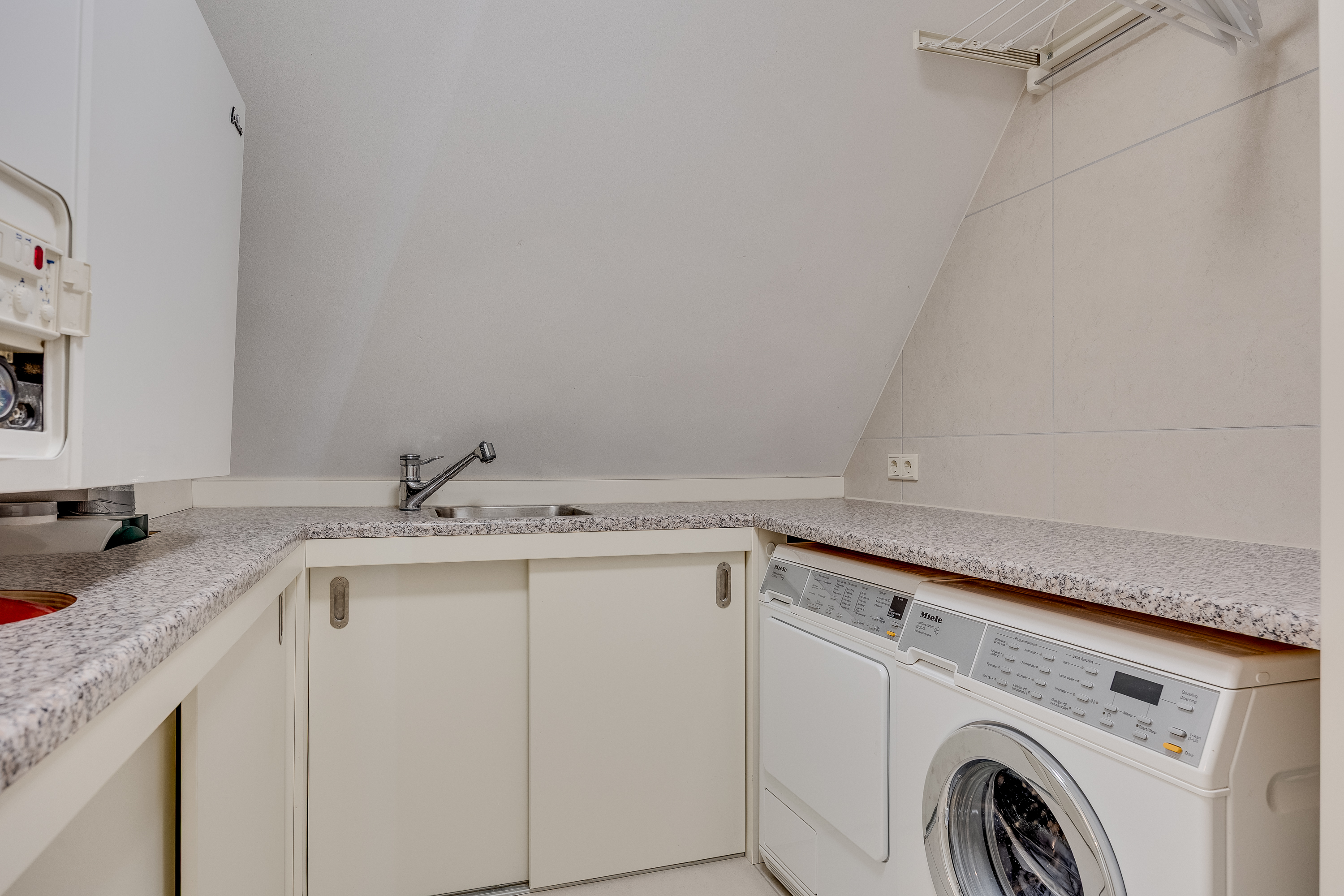 Here you can lift your boat out of the water in winter and store it for the winter. It is also ideal for lifting the boat in summer, as the hull remains spotlessly clean. The entire automated garden irrigation system is also located here, fully automated and controllable via the app!