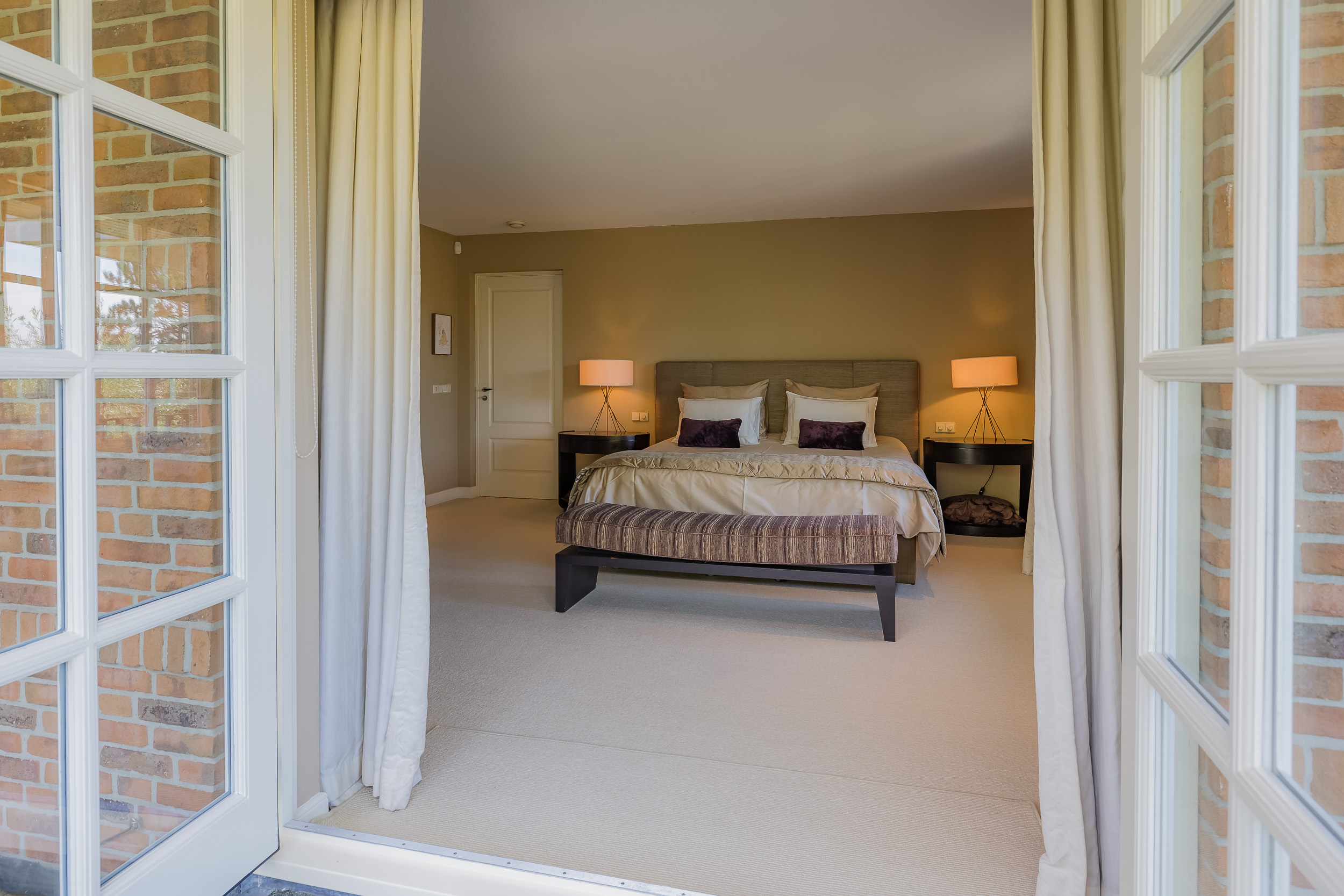 The villa exudes tranquility, space, and elegance. An elegant entrance, richly surrounded by flowers, welcomes you at the door. The spacious hall leads to the cozy living room with fireplace, adjacent dining room, and delightful kitchen with French doors to the garden. A place that invites you to spend long evenings cooking, dining, and enjoying life. A practical utility room and a spacious study on the ground floor complete the picture. All rooms have direct access to the garden, veranda, or one of the balconies.
