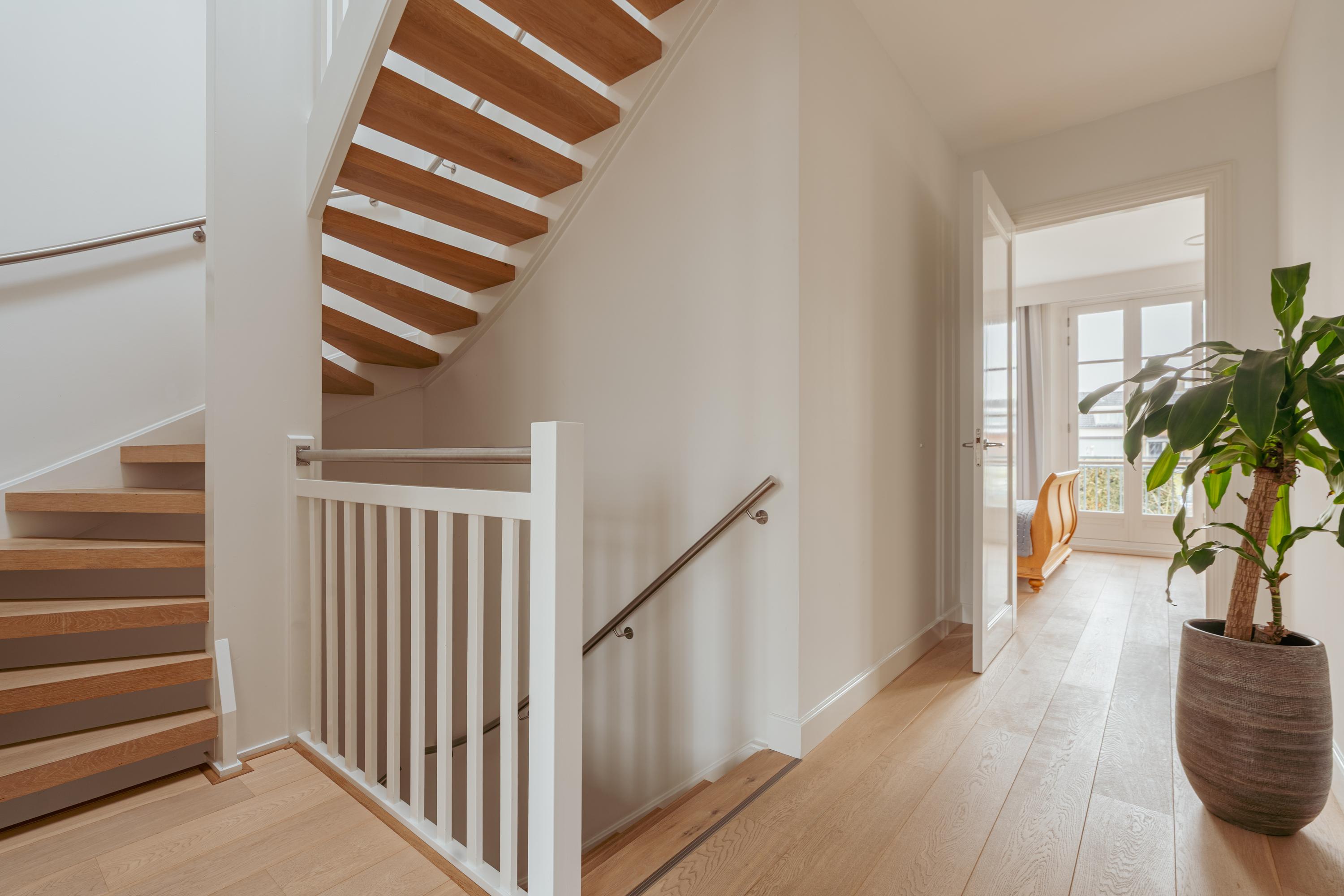 The first floor is reached via the central staircase with overhead light. The spacious landing benefits from ample daylight thanks to the skylight on the second floor. This level accommodates two generously sized bedrooms and an additional room that is ideally suited as a home office or study.