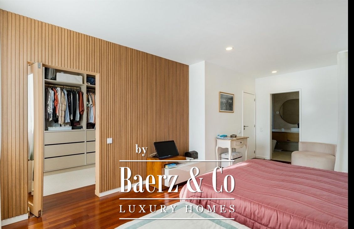Just 400 meters from Leça Beach, we have this 300 m² villa, carefully preserved and renovated. On the ground floor, we have spacious rooms with plenty of natural light, an office, and a kitchen — generous and well-equipped. On the first floor, four spacious suites, all with built-in wardrobes. The villa's flooring is made of sucupira wood. Air conditioning equipment, solar energy, electric shutters, suspended sanitary ware — everything has been designed to ensure comfort, efficiency, and a lifestyle. Outside, a garden of over 350 m² with a heated saltwater pool invites swimming all year round.