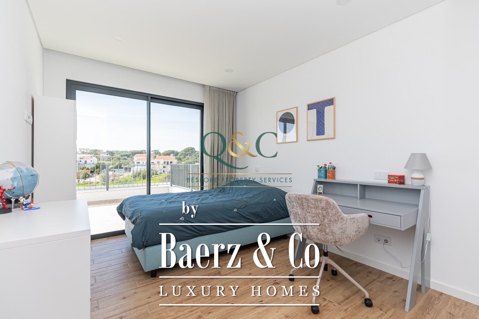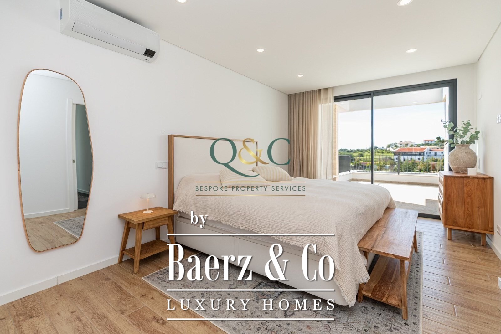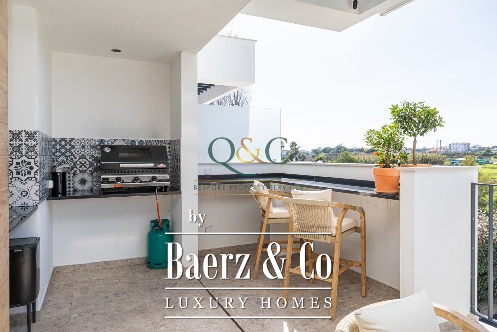 Outdoor living is elevated by a 7 x 3 m saltwater pool, solar cover, heat pump, and barbecue area, set within a terrace shaded by an electric awning. Underfloor heating, air conditioning, solar panels, and centralised electric shutters ensure year-round comfort. Built in 2025, this villa extends over a 333 m² plot and stands within walking distance to Fonte Santa, international schools, renowned golf courses, and the beaches of Trafal, Vilamoura, and Vale do Lobo. The private garden, double glazing, and secure parking promise a refined and effortless lifestyle, making this luxury villa for sale in Quarteira a discreet yet exceptional home.