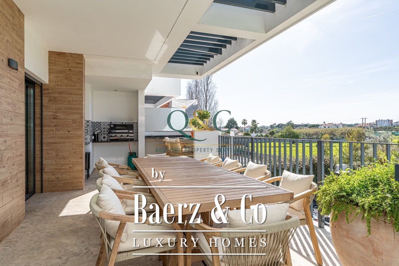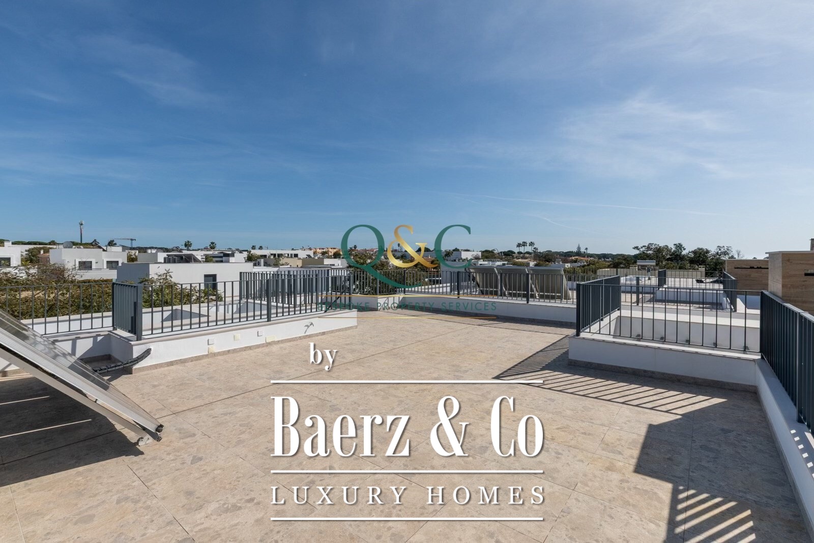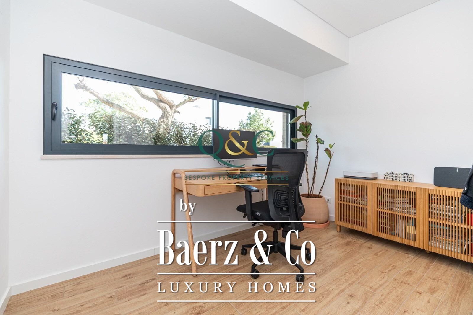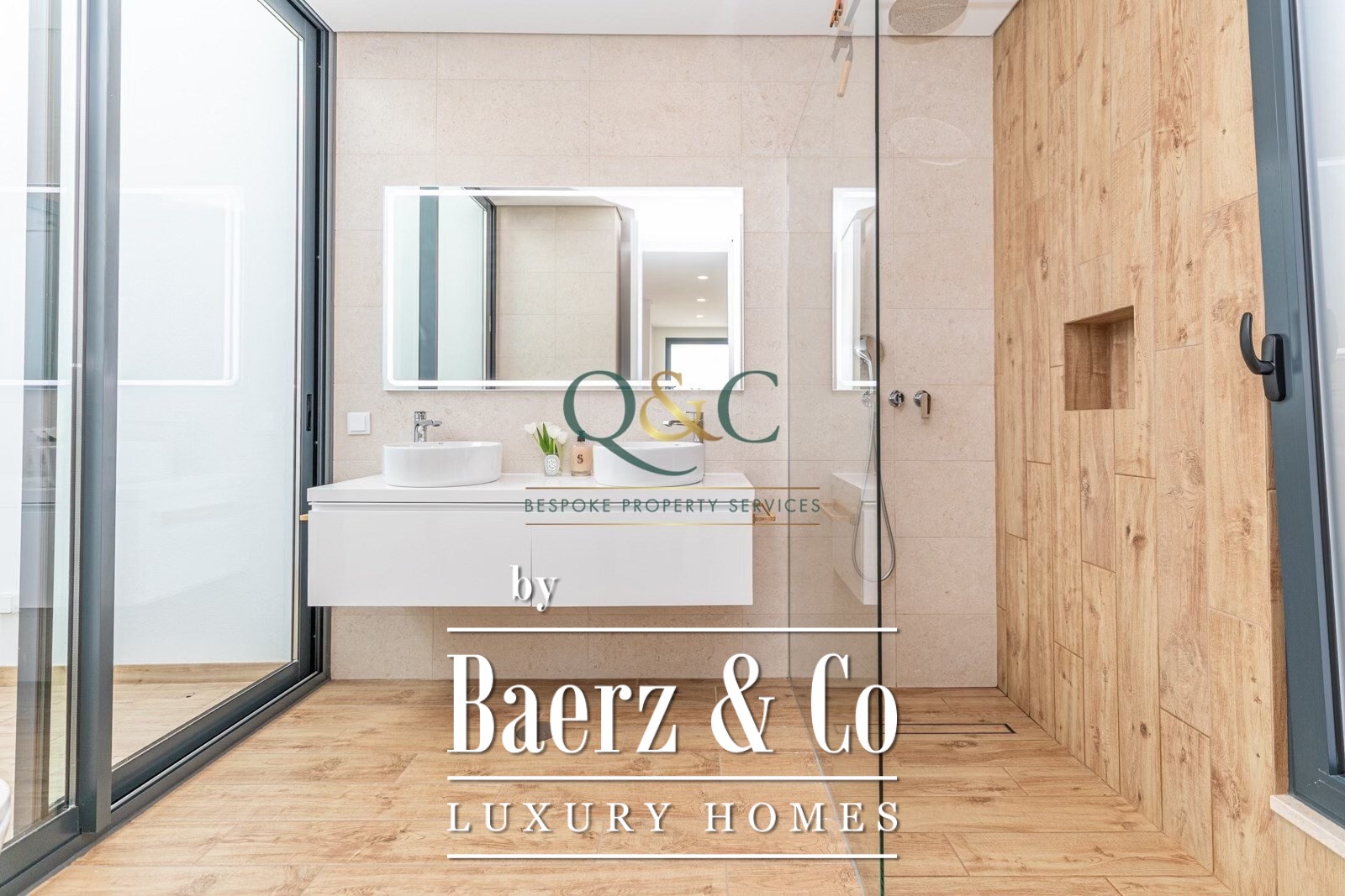 Outdoor living is elevated by a 7 x 3 m saltwater pool, solar cover, heat pump, and barbecue area, set within a terrace shaded by an electric awning. Underfloor heating, air conditioning, solar panels, and centralised electric shutters ensure year-round comfort. Built in 2025, this villa extends over a 333 m² plot and stands within walking distance to Fonte Santa, international schools, renowned golf courses, and the beaches of Trafal, Vilamoura, and Vale do Lobo. The private garden, double glazing, and secure parking promise a refined and effortless lifestyle, making this luxury villa for sale in Quarteira a discreet yet exceptional home.