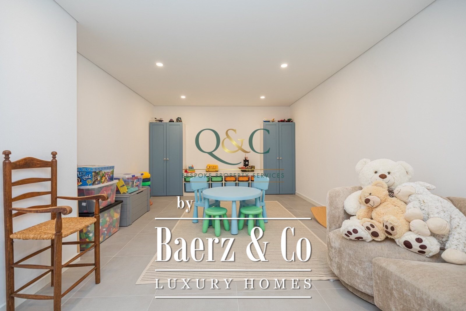 This modern villa Quarteira presents a fresh approach to contemporary living in Al Sakia Village, defined by its 313 m² of carefully considered space and premium finishes. The entrance opens to a voluminous living and dining area, directly connected to a fully furnished open-plan kitchen. The ground level includes a flexible bedroom or office, a family bathroom, and internal access to the garage, ensuring seamless day-to-day living.