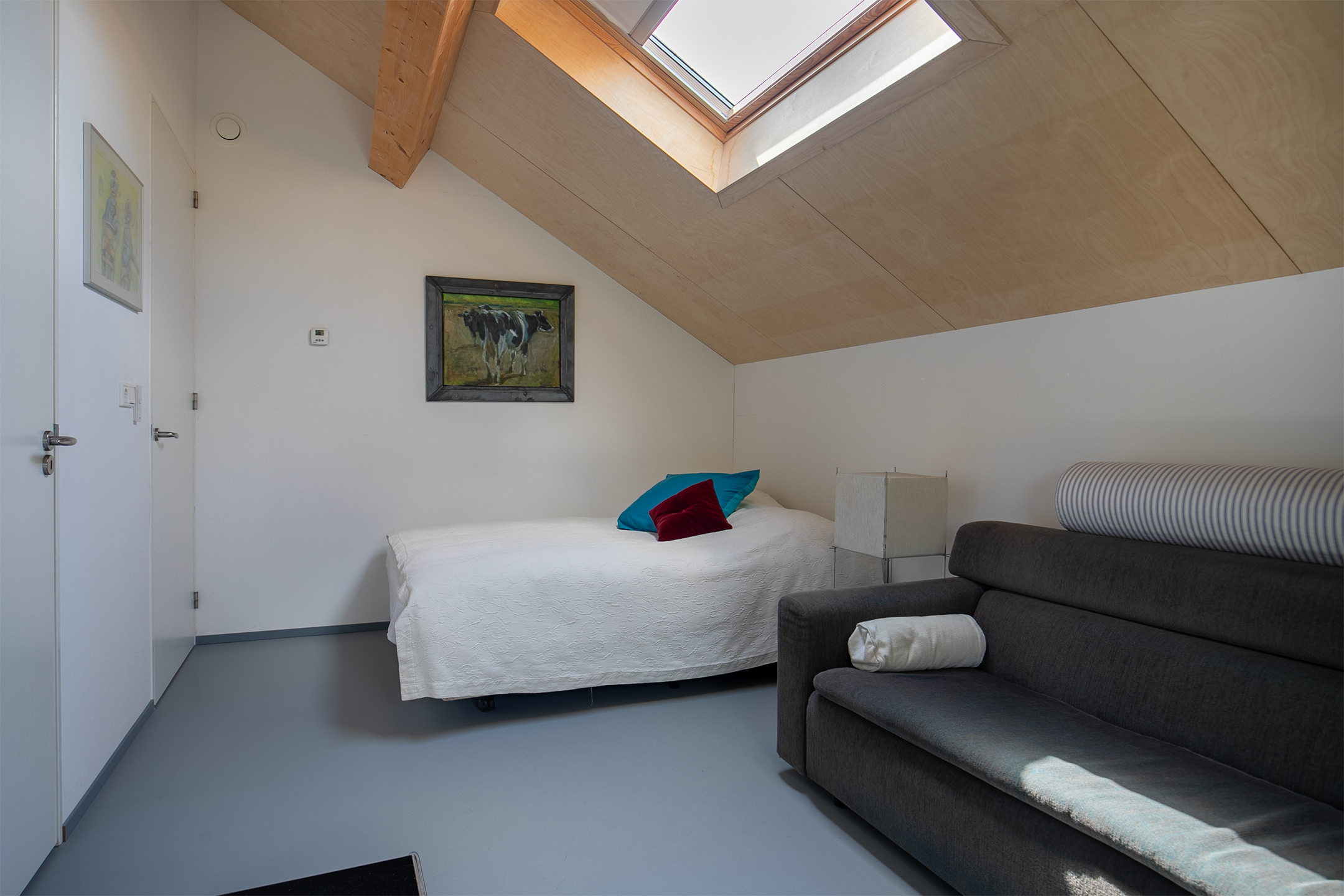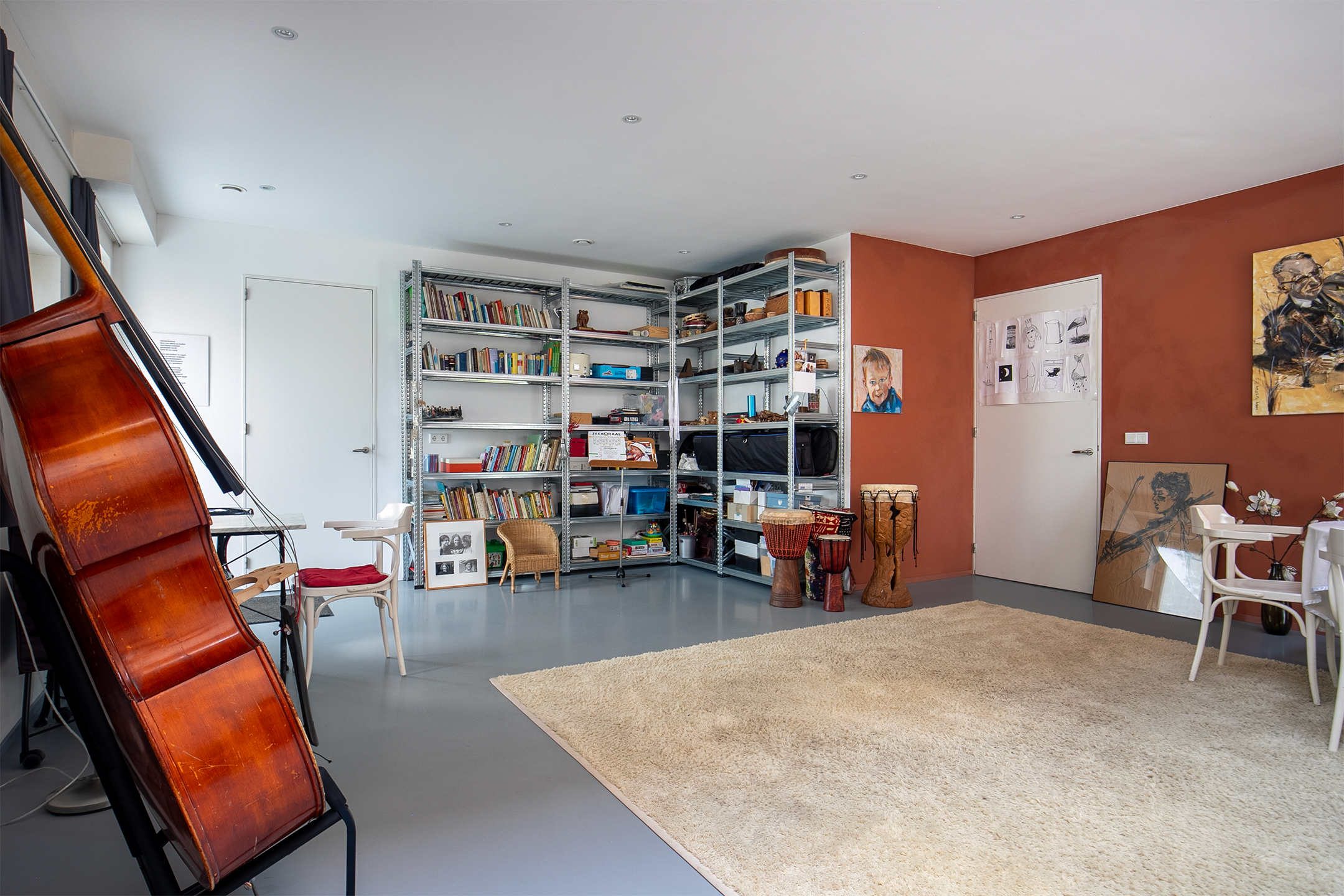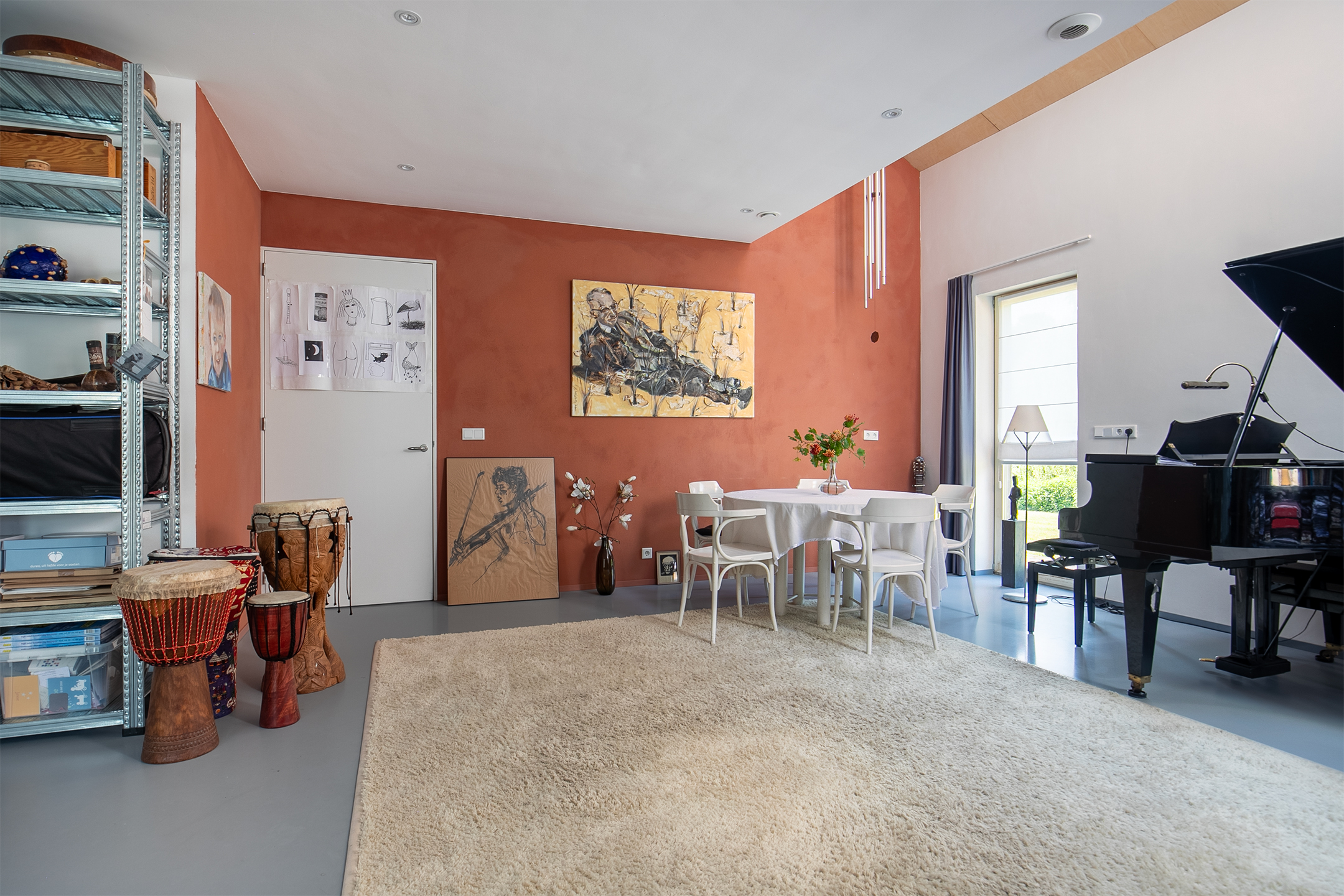 In addition, on the ground floor you will find a utility room, a separate toilet, and a spacious bedroom with an en-suite bathroom—perfect for single-story living or as a guest apartment. Unique is the extra spacious room, which can be furnished according to your wishes as a living room, workspace, or extra bedroom. Thanks to its separate entrance, this space offers excellent opportunities for working from home without compromising on privacy.