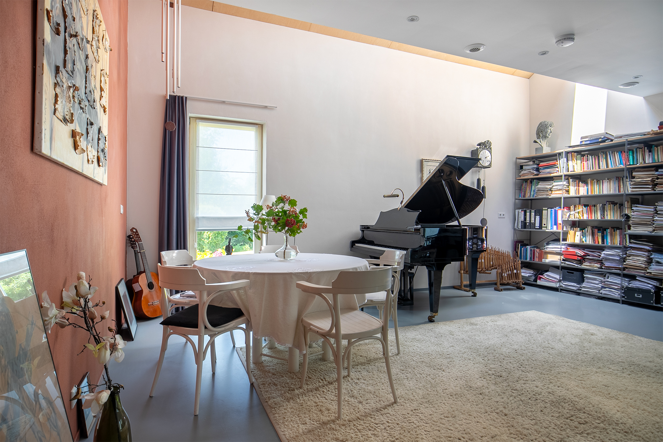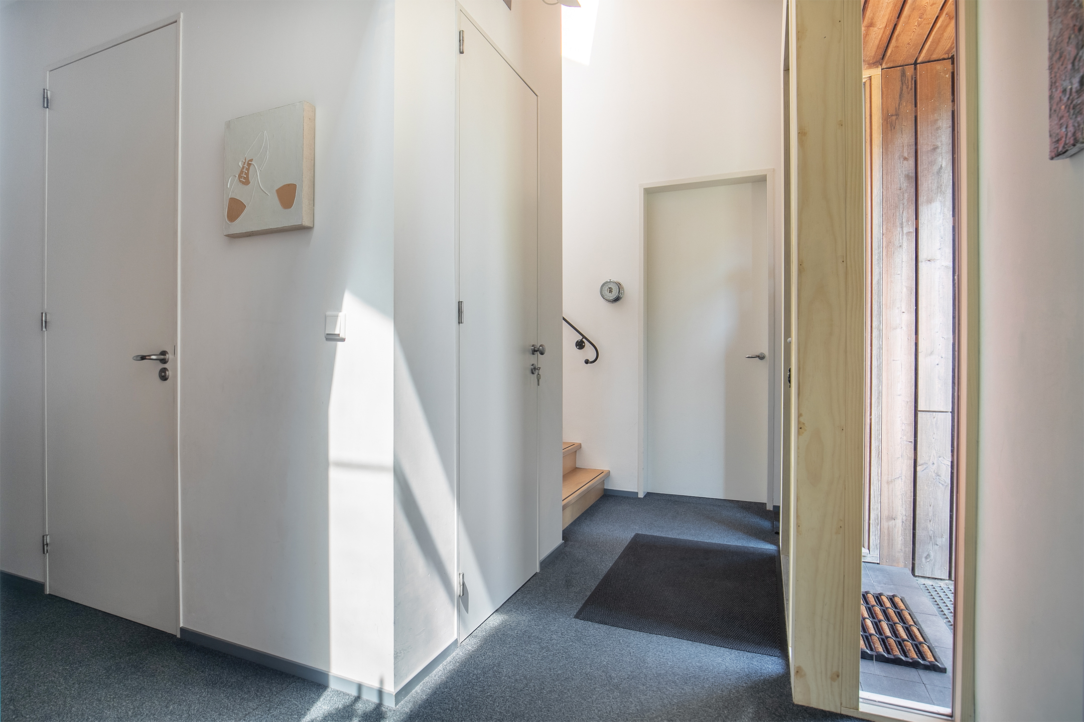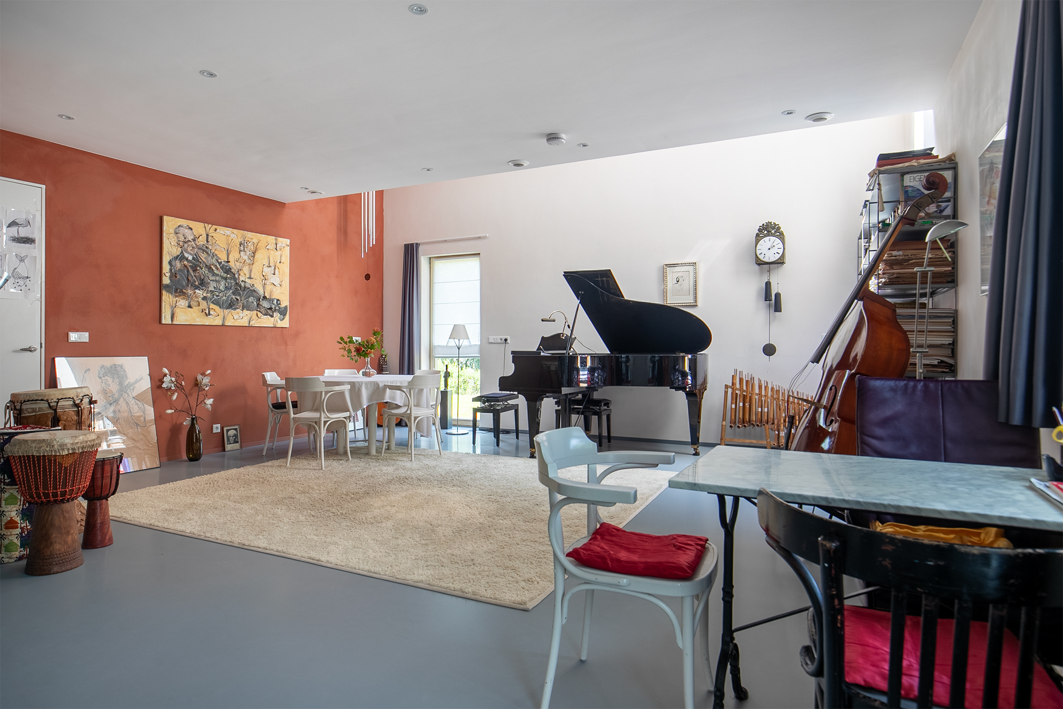 In addition, on the ground floor you will find a utility room, a separate toilet, and a spacious bedroom with an en-suite bathroom—perfect for single-story living or as a guest apartment. Unique is the extra spacious room, which can be furnished according to your wishes as a living room, workspace, or extra bedroom. Thanks to its separate entrance, this space offers excellent opportunities for working from home without compromising on privacy.