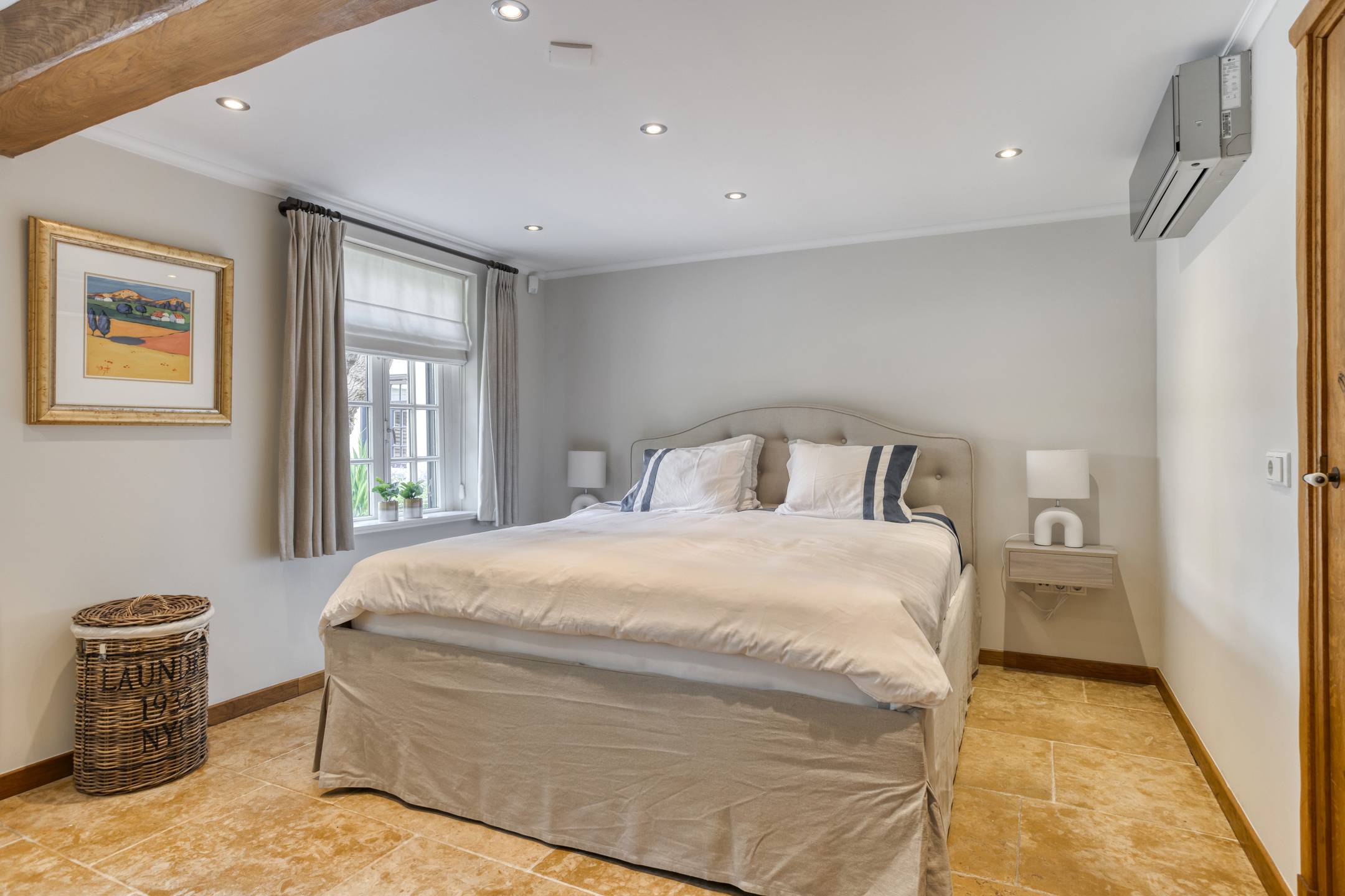 The main house is composed of a welcoming living room with a wood fireplace, a refined dining space, a large kitchen with marble surfaces and a prominent island, a wine cellar, four tranquil bedrooms, and two marble-clad bathrooms. Air conditioning, partial underfloor heating, and an alarm system elevate comfort and security. The guest house, with thatched roof and its own terrace, provides two additional bedrooms and two bathrooms, offering autonomy and dignity for visitors or extended family.