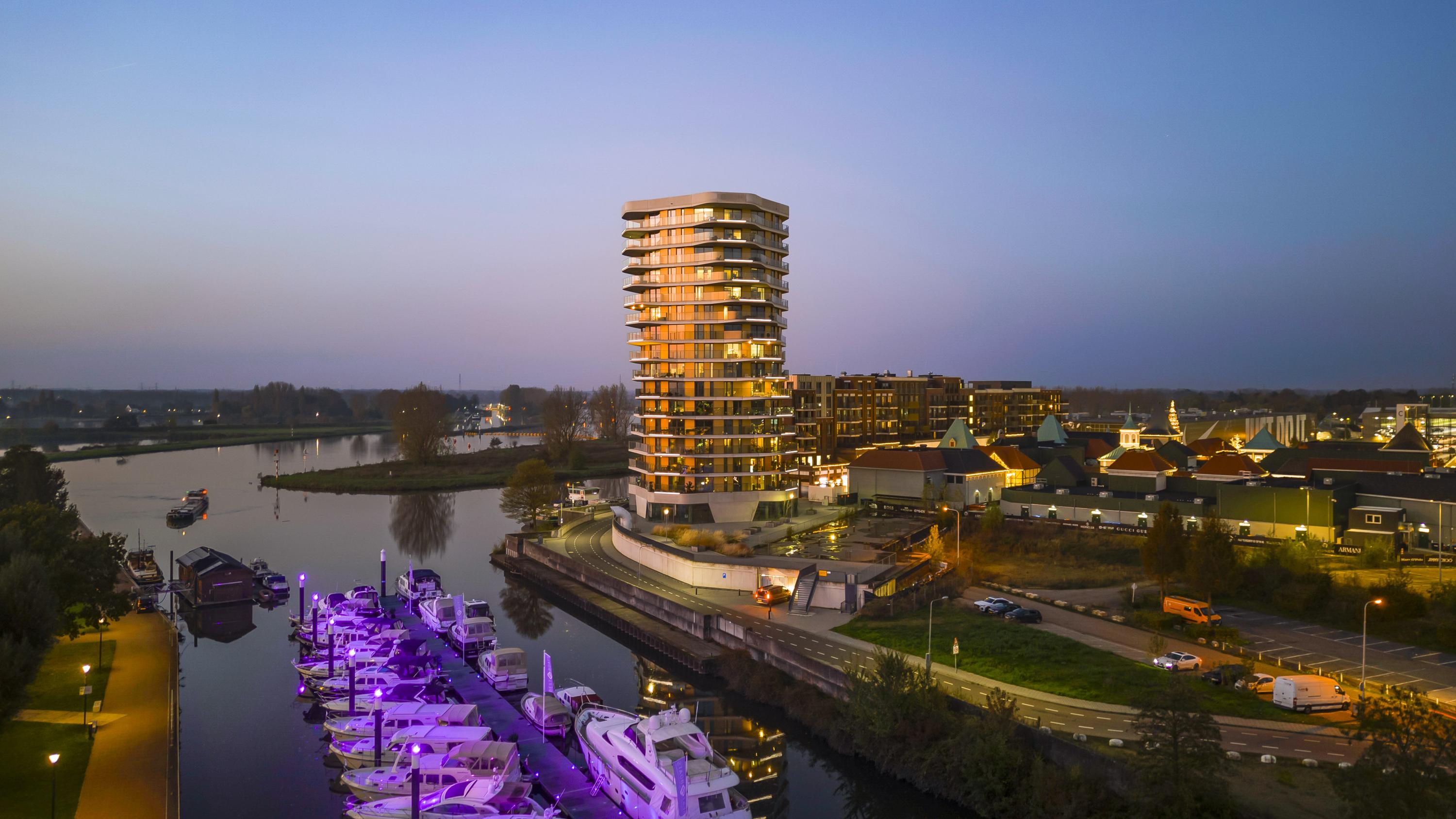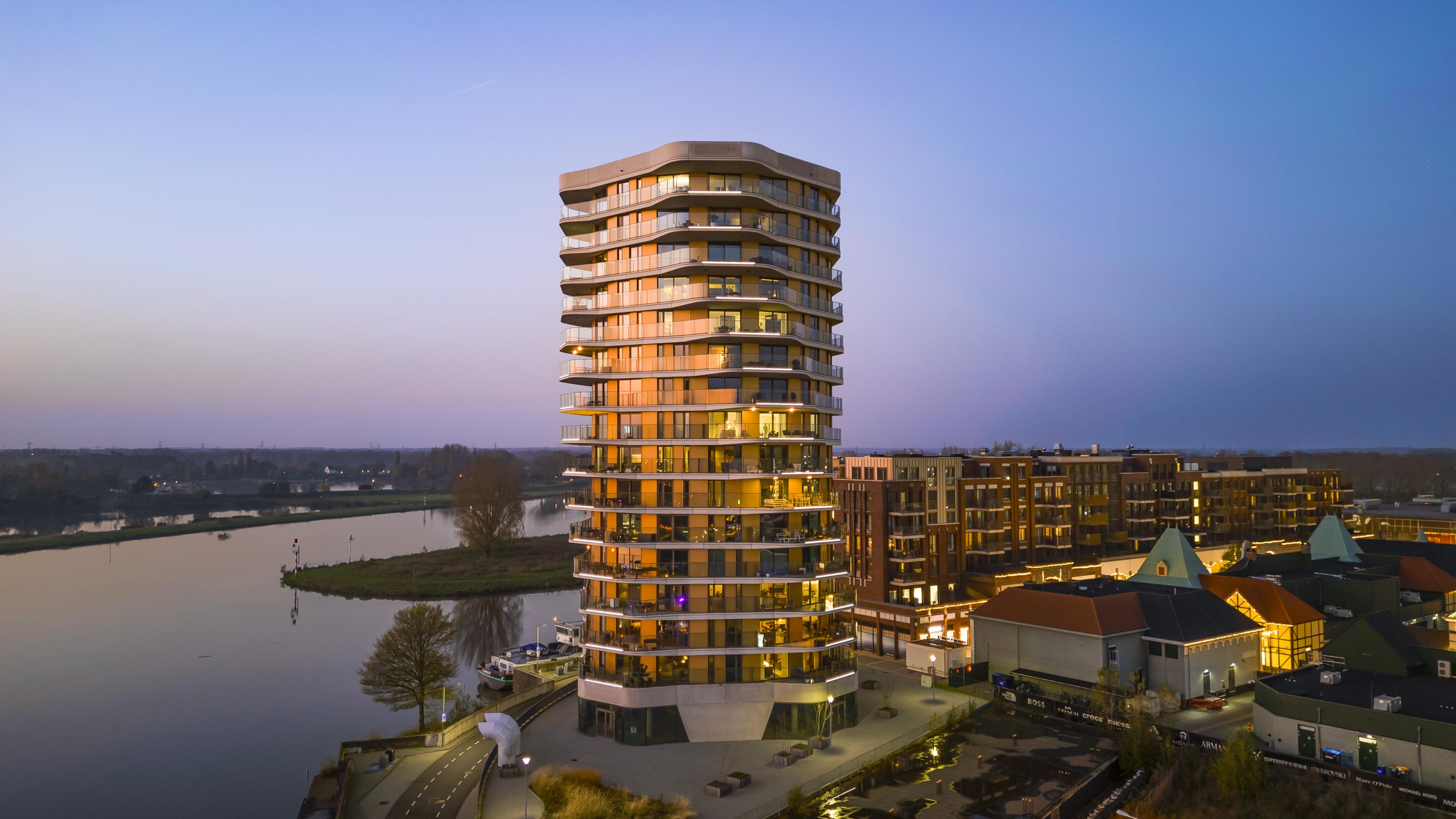 The apartment complex has a perfect location in relation to Roermond's city centre but also the cosy feeling of a ‘free living environment’ with the wide panoramic view over Roermond's Maasplassen.