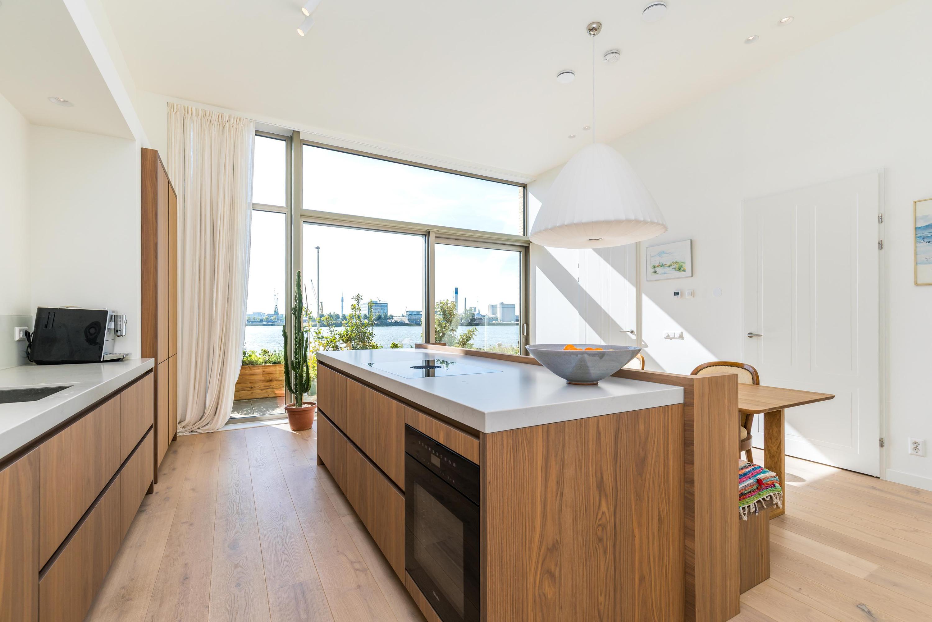 You enter the apartment via your own veranda/sun terrace on the ground floor (facing the sunny south and overlooking the Maas River). Here you'll find the luxurious kitchen/diner, fully equipped and designed for enjoyment, whether you're hosting an intimate dinner or preparing a lavish meal for friends and family. Directly adjacent is a spacious indoor storage room, ideal for extra storage.