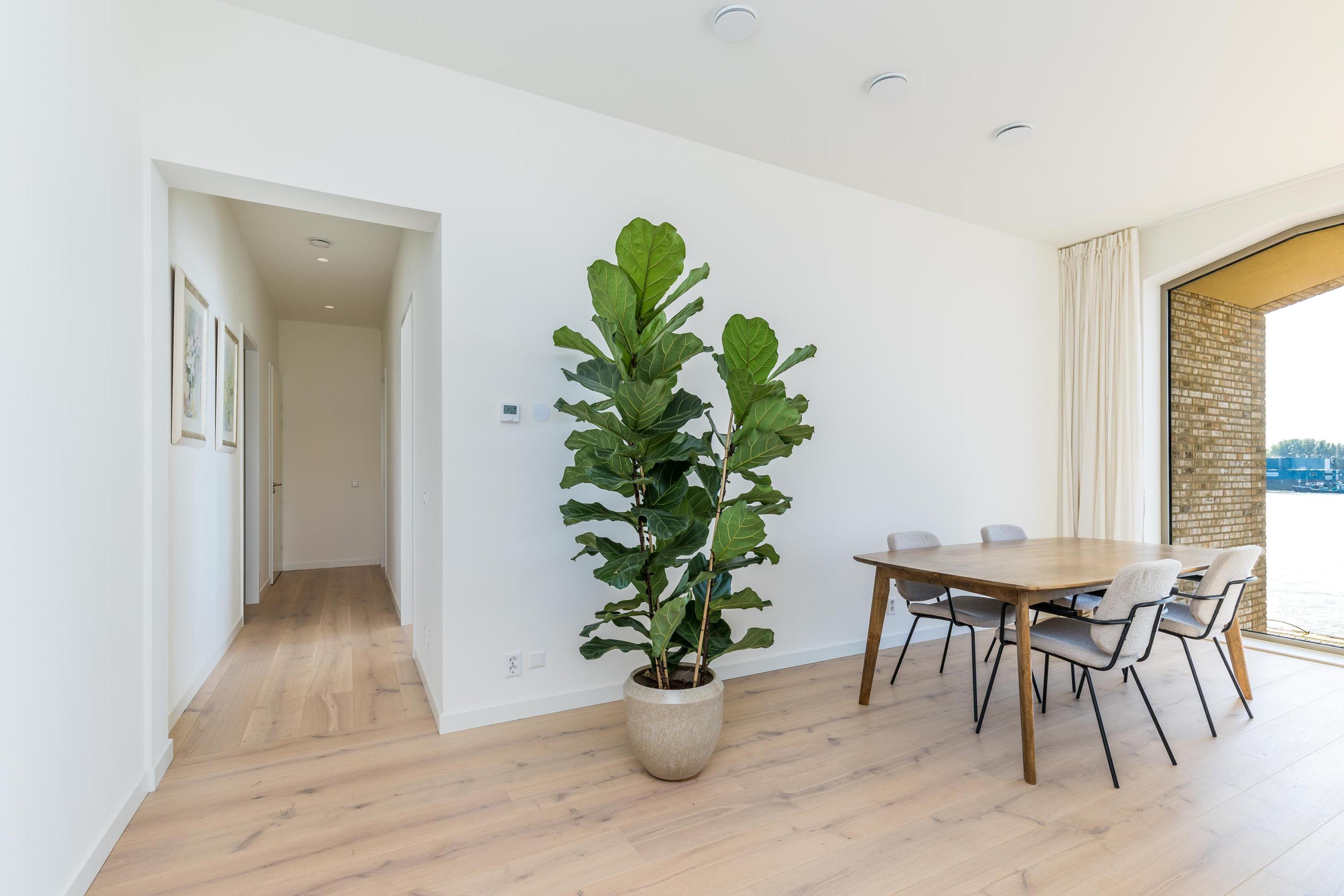 A living painting in your window every day: this spacious and stylishly finished apartment on the Lloydkade offers luxury, space, and panoramic views of the Maas River from sunrise to sunset.