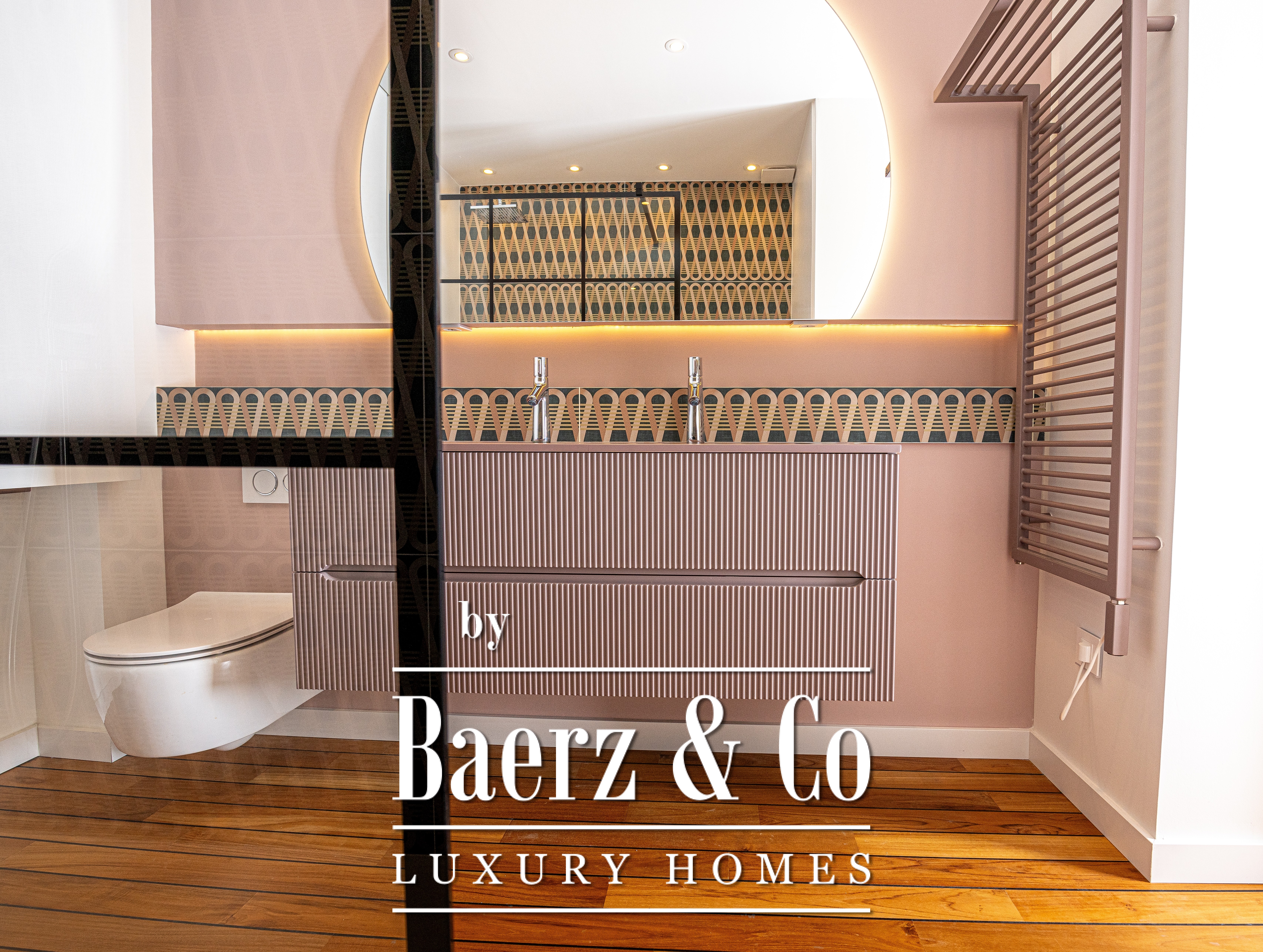 Flat Saint-Raphaël in the Triangle d'Or blends Belle Époque architecture with modern luxury for a discerning Riviera lifestyle. This light-filled apartment, measuring 107.69 m², is set within one of Saint-Raphaël’s historic buildings. The residence offers elevator access to the first floor, where the property unfurls across refined interiors. The 48 m² living space is finished with point de Hongrie parquet, evoking both warmth and quiet grandeur. A U-shaped open kitchen completes this expansive social core.