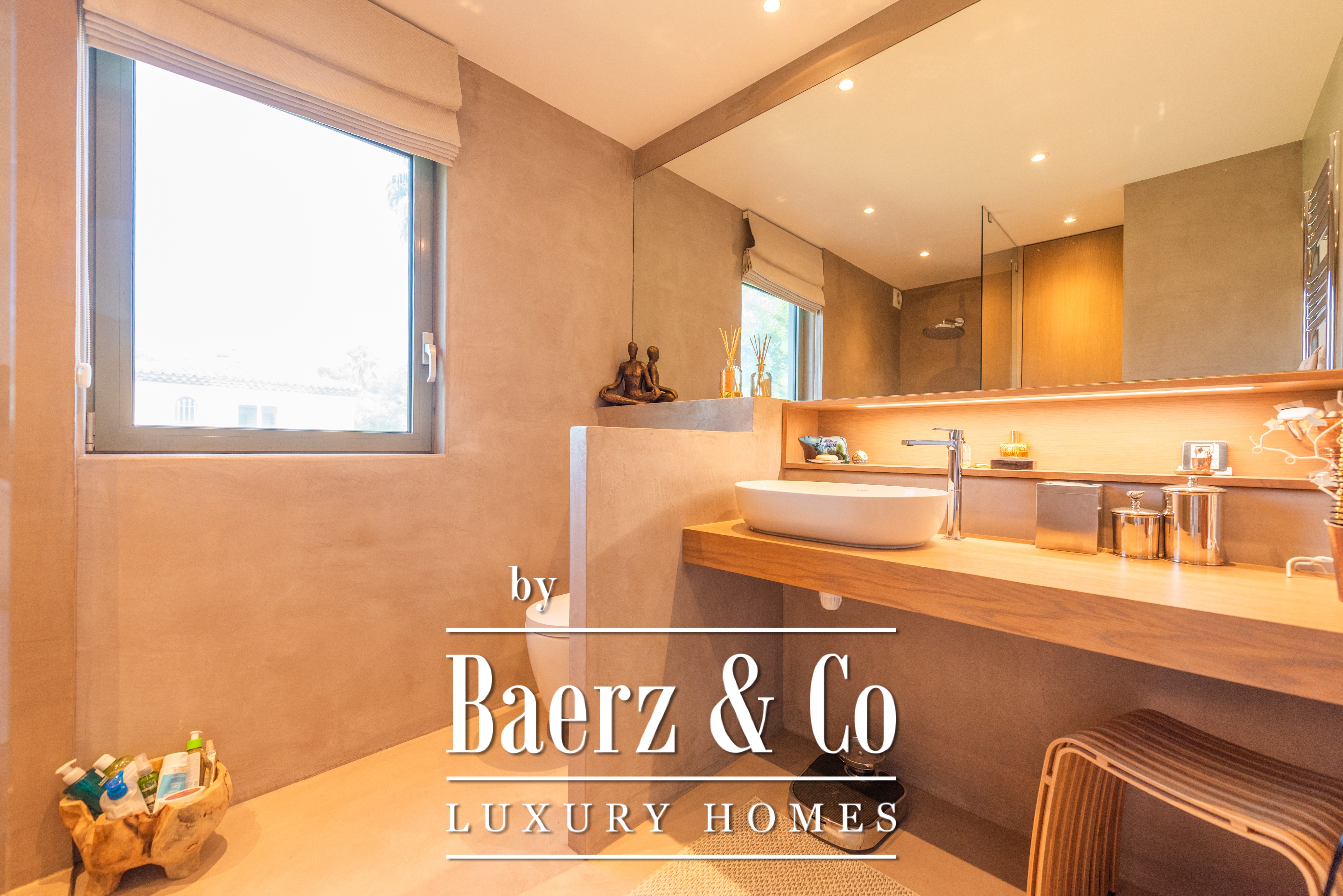 Set on a 900 m² plot in a sought-after enclave of Saint-Raphael, the property’s outdoor spaces invite quiet repose and sophisticated gatherings. A furnished terrace runs alongside the swimming pool, creating an environment equally suited to relaxation or hosting guests. With amenities such as air conditioning and a high energy efficiency rating of A++, this house for sale in Saint-Raphael is a distinguished proposition within the region’s market.