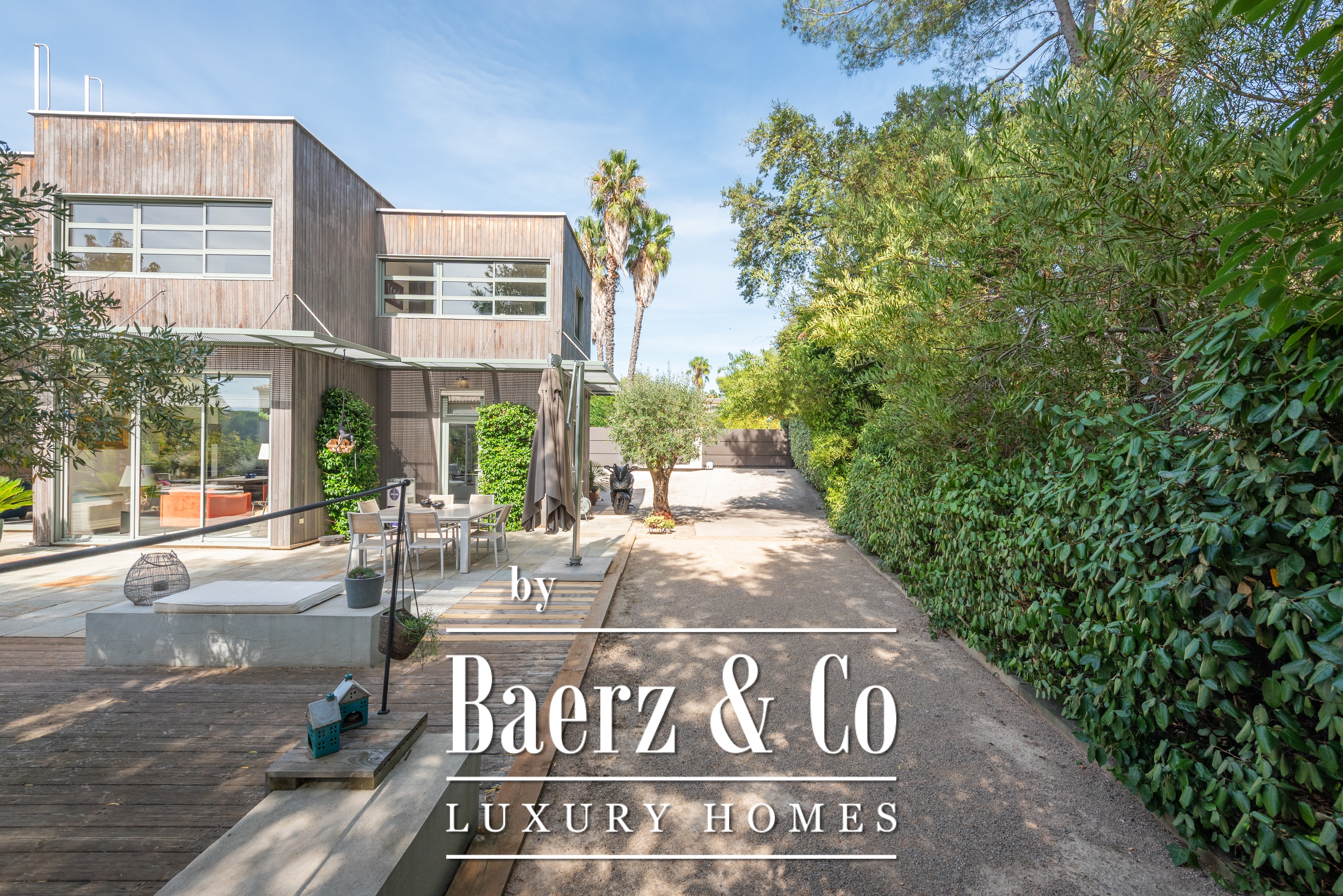 Contemporary house Saint-Raphael defines a rare standard in Mediterranean architecture, seamlessly integrating modern materials and luminous space. Within its 183 m² living area, the residence unveils a double living room suffused with natural light, thanks to expansive bay windows that frame the tranquil outdoors. The main level’s atmosphere is anchored by a streamlined kitchen, fully equipped and carefully considered for both daily living and understated entertaining.