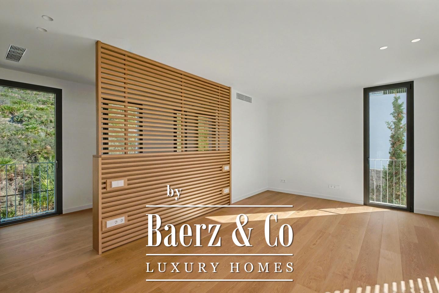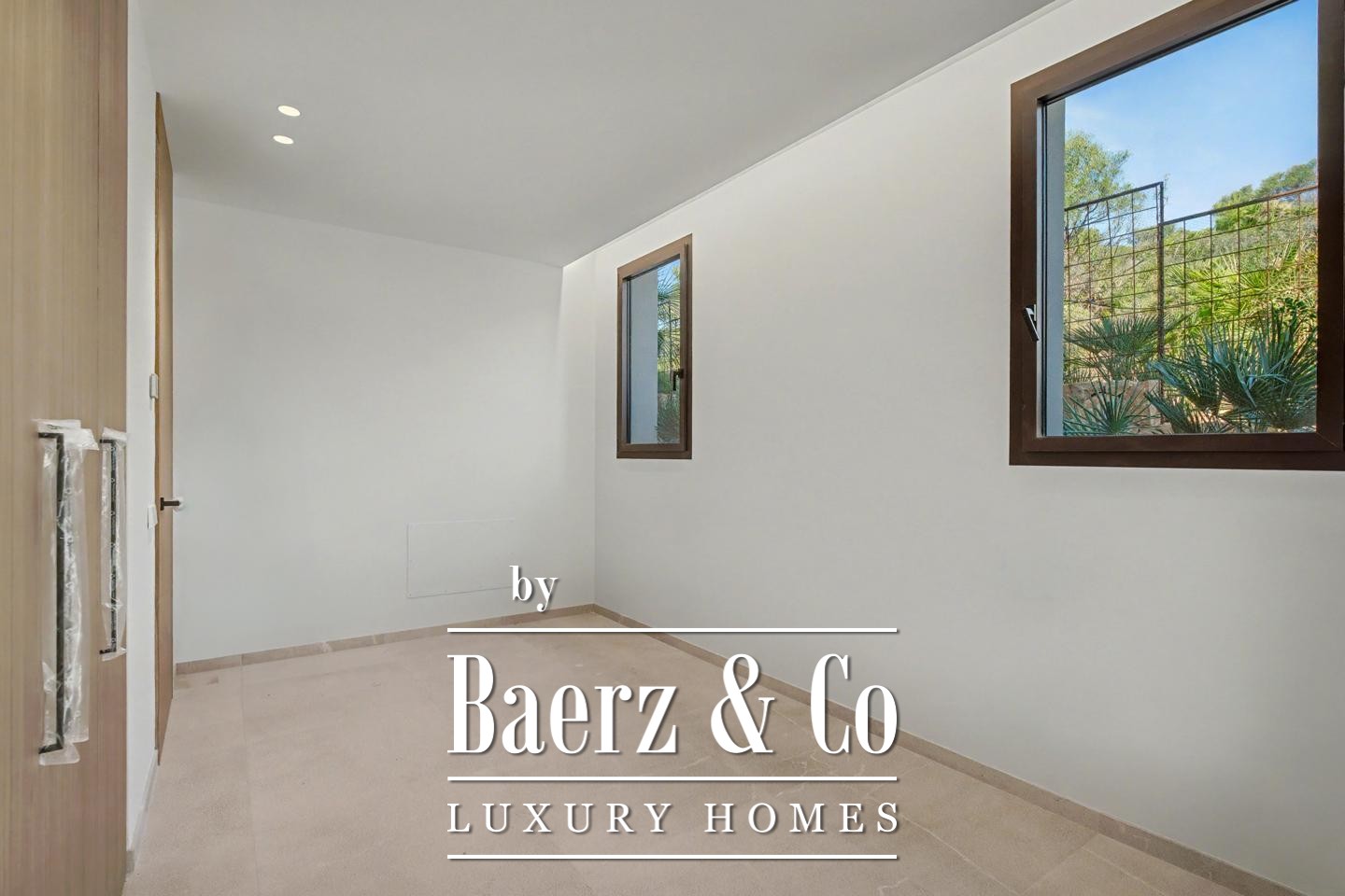 Throughout, integrated heating, smart lighting, and sliding teak shutters underscore the villa’s commitment to comfort and refined living. The property includes a two-car garage, technical room, and storage on the lower level. The rooftop terrace crowns the home, offering a vantage point for sunsets, the Mediterranean horizon, and the calming presence of the sea breeze — an ideal retreat for those seeking a luxury villa for sale in Sant Elm.
