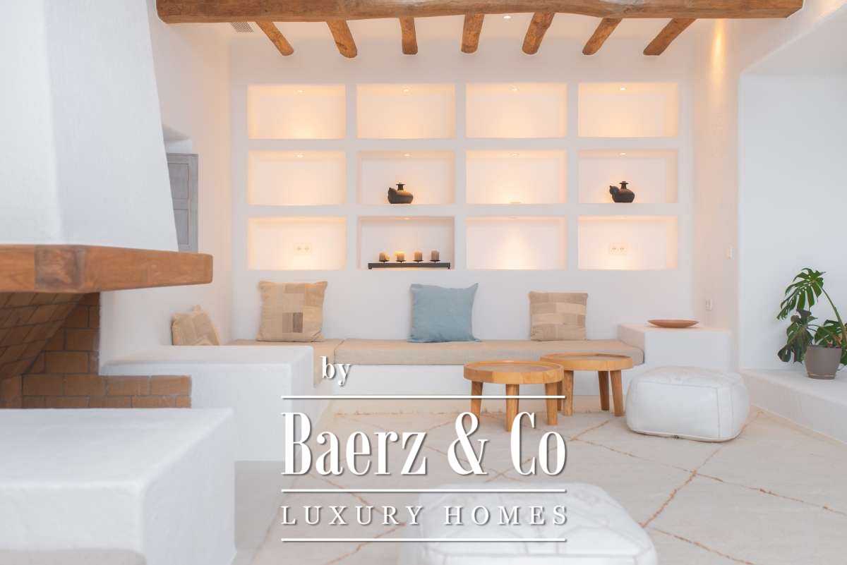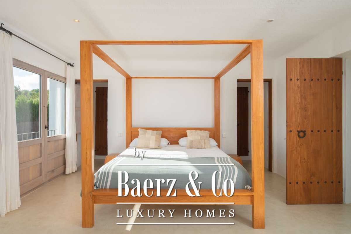 This farmhouse Sant Llorenç de Balàfia resides at the island’s highest valley point, where rolling agricultural land meets forest and mountain views. The property’s terraces open onto a tapestry of olive groves and fruit trees, with vistas extending to the church tower of Balafí and historic walls in the far distance. On the opposite side, the springs of San Rafael bring freshness to the landscape, softening the horizon. Quiet and privacy envelope this 24,215 m² estate, though Eivissa and Santa Gertrudis remain easily within reach.