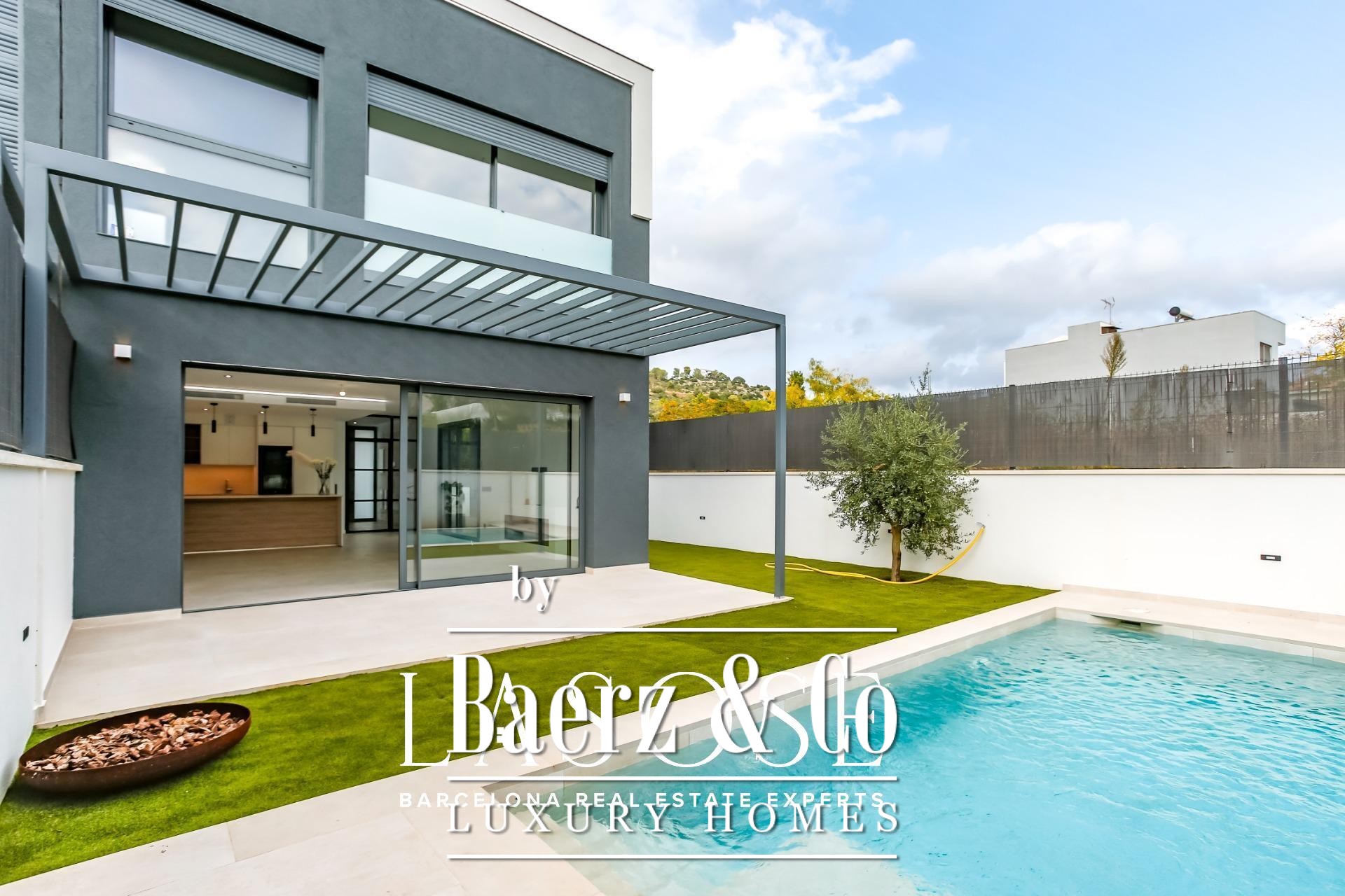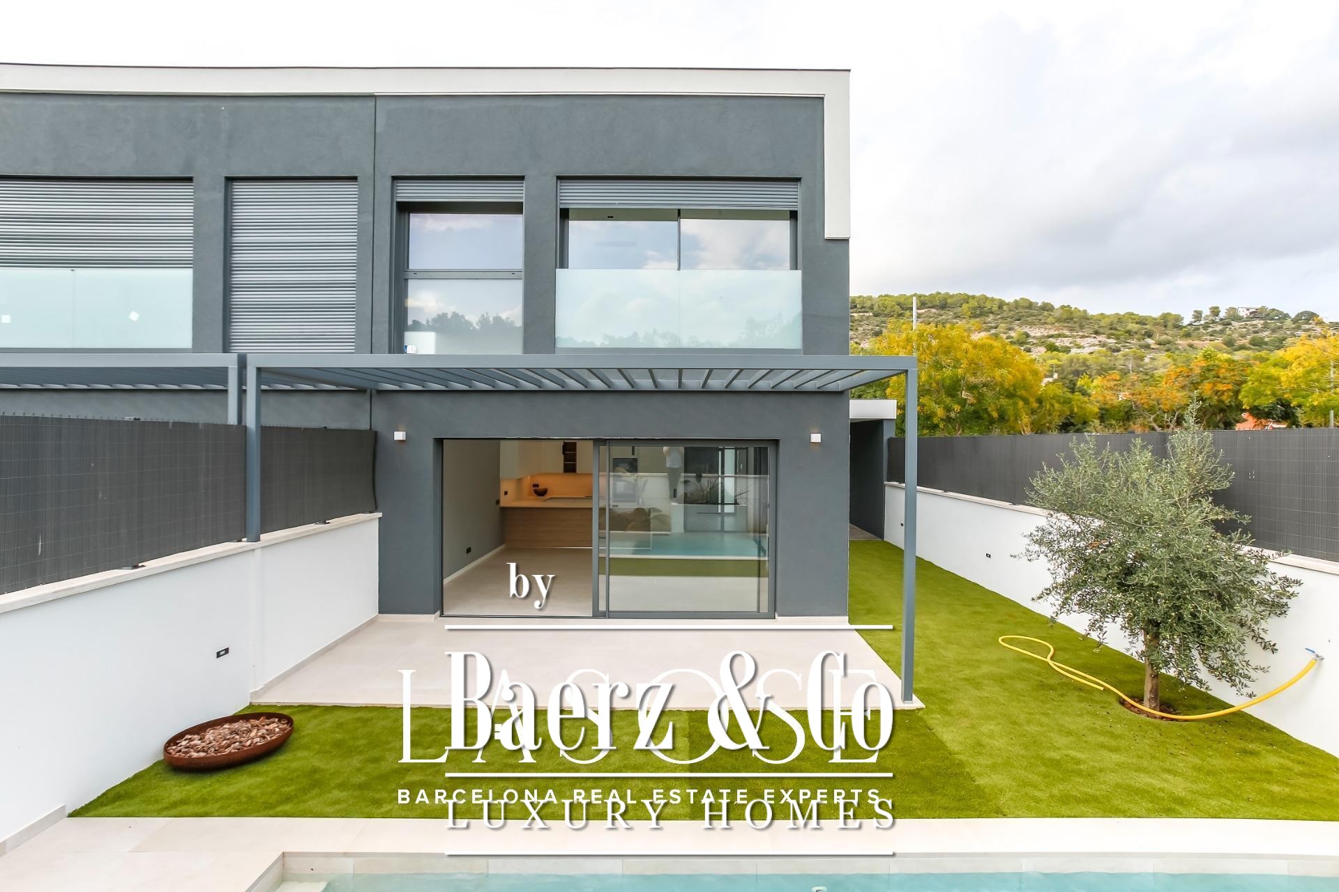 LASOSE PROPIEDADES are delighted to present this modern villa, where your dream Mediterranean lifestyle can start. It is perfectly located just minutes from the center of Sitges and close to international schools, all essential services, and transport connections. Designed for comfort, functionality, and family living, this home offers a peaceful retreat with everything you need within easy reach.. Over 200 m² of built area, the property features 5 bedrooms and 3 bathrooms, offering plenty of space for every member of the family. The open-plan kitchen and dining area create a bright and welcoming space to enjoy daily life together, while the spacious living room opens directly to the garden, filling the home with natural light throughout the day.. . Step outside to your private outdoor space — a garden, terrace, and swimming pool that invite you to enjoy the Mediterranean climate year-round. Whether you’re relaxing by the pool, hosting a barbecue, or watching the kids play, this home provides the perfect setting for both quiet moments and lively family gatherings. The property also includes a garage and ample storage space.. . Built with contemporary architecture and high-quality finishes, the house stands out for its clean lines and modern design. Thanks to its energy-efficient construction, solar panels, and aerothermal system, it combines comfort with sustainability — reducing energy costs while contributing to a more environmentally friendly lifestyle..