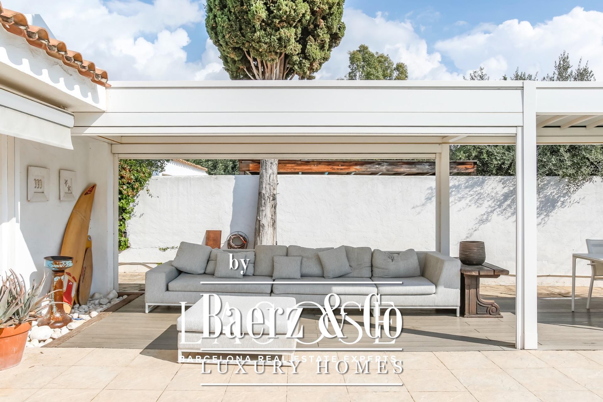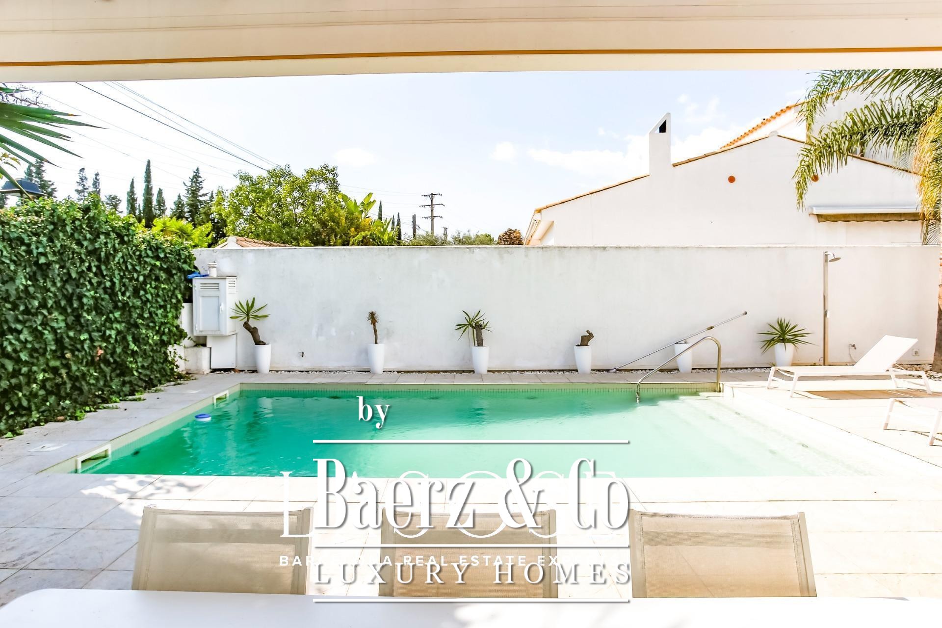 LASOSE is delighted to present this fabulous detached house located in the prestigious residential area of Los Viñedos, in Sant Pere de Ribes.. . This magnificent home perfectly combines Mediterranean charm, comfort, and contemporary functionality. Set on a spacious and well-maintained plot, it offers absolute privacy and a serene atmosphere, reinforced by 24-hour private security. It belongs to one of the most exclusive and sought-after communities in the Garraf region, known for its tree-lined streets, peaceful ambiance, and proximity to vineyards, tennis and padel courts, and high-quality restaurants.. . With a built area of 155 m², the house has been designed to provide a bright and well-balanced layout. Each space has been conceived to make the most of natural light and to create a seamless connection between the interior and exterior areas. The result is a home that invites relaxation and conveys a true sense of wellbeing in every corner.. . A charming landscaped entrance leads to the main door. Outside, a lush garden, private swimming pool, and several lounge areas create the perfect setting to enjoy the Mediterranean lifestyle. Whether hosting gatherings with friends, reading under the trees, or dining al fresco, the outdoor space becomes a natural extension of the interior comfort.. . Large sliding windows connect the living-dining room directly with the terrace and garden, allowing sunlight to flood the interiors and creating a warm, welcoming atmosphere. The spacious living room, centered around an elegant fireplace, combines elegance and functionality. On this same floor, there is also a double bedroom and a full bathroom, ideal for guests or as a quiet workspace..