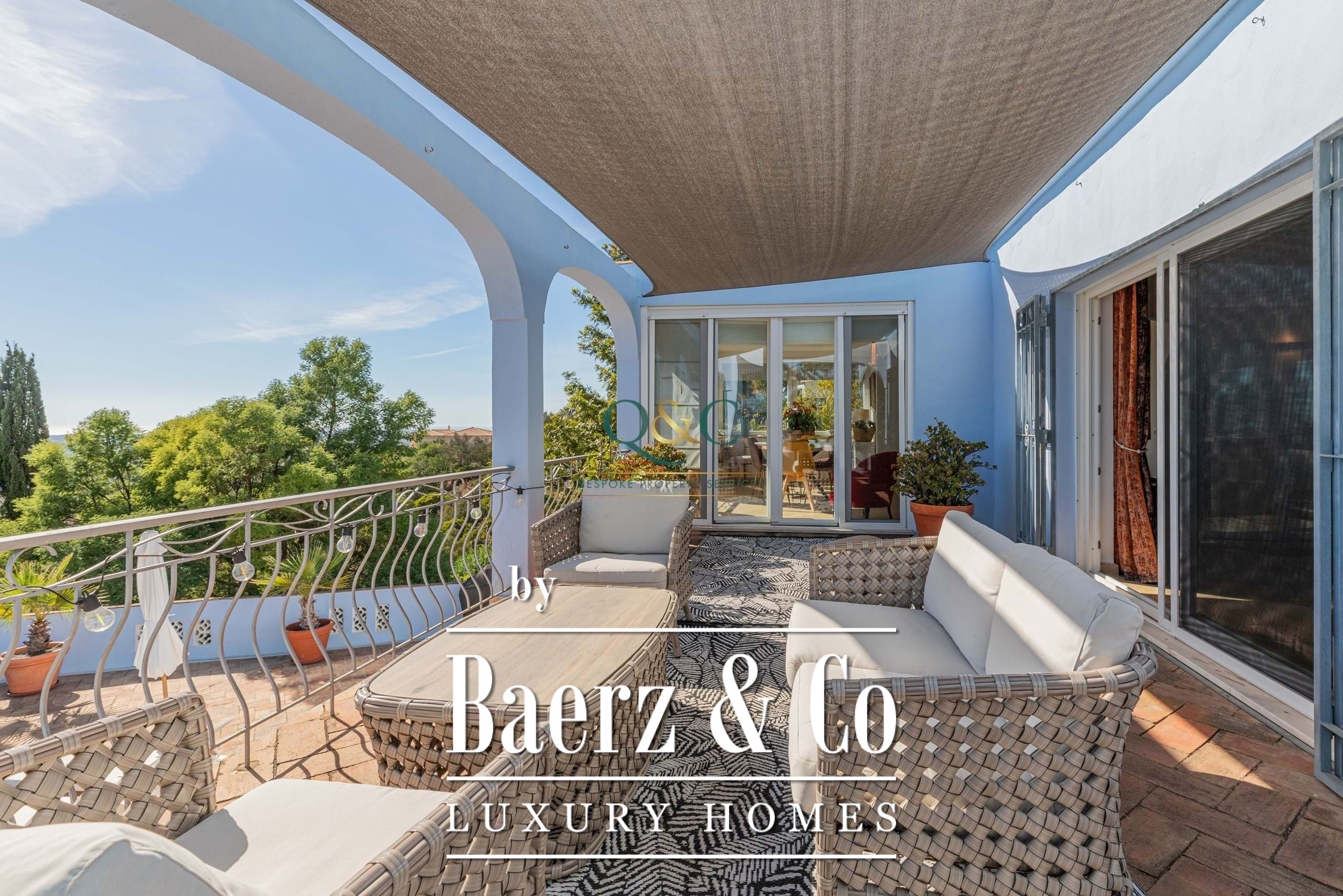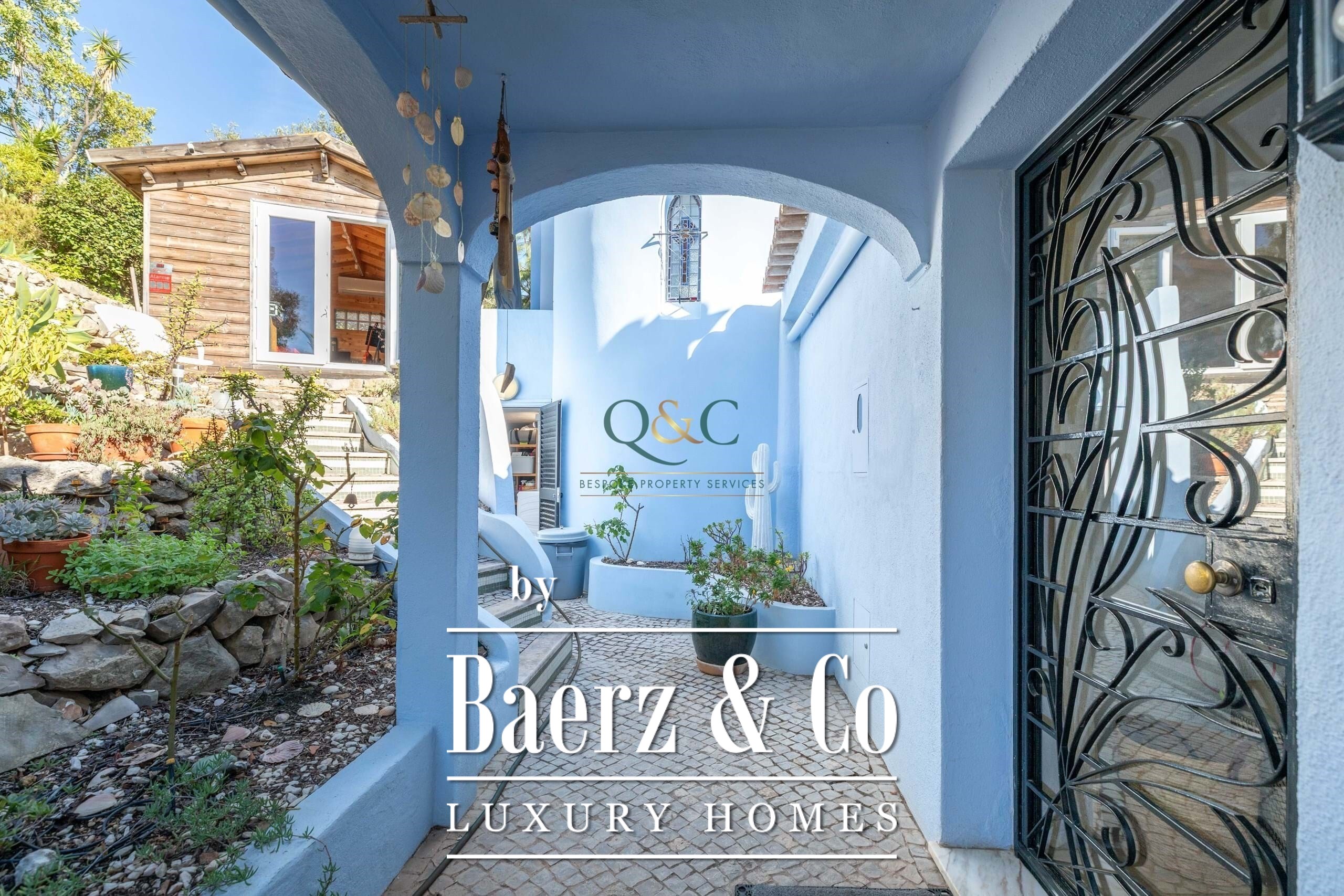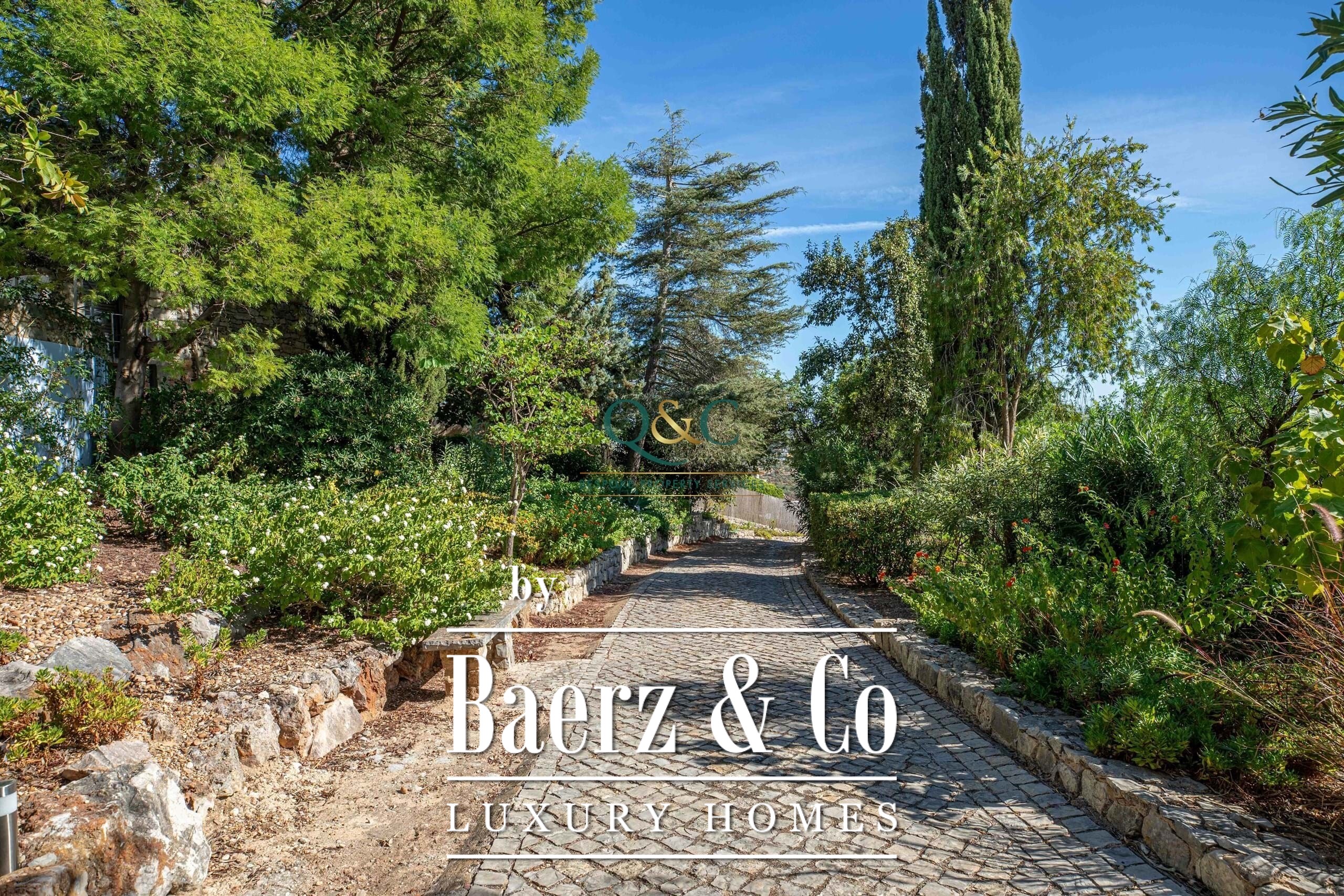 Set within a fully fenced plot, electric gates open to a sweeping calcada driveway leading to a garage, carport, and ample parking. The beautifully landscaped gardens feature mature trees and a well-chosen selection of drought-tolerant plants, creating a lush yet low-maintenance haven.