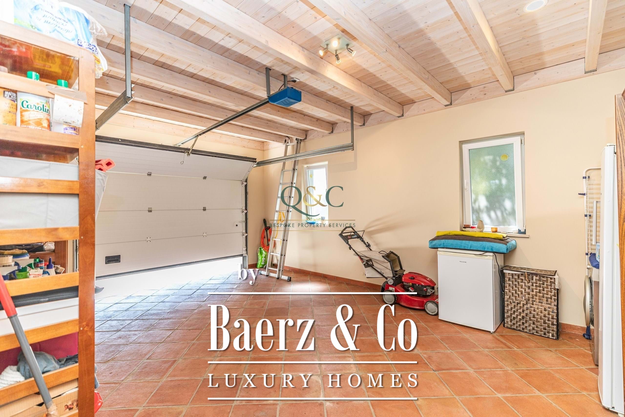 Upon arriving at the property, you will find parking for 2/3 cars outside. The electric gate leads you to the spacious garage with a laundry area and plenty of storage space.