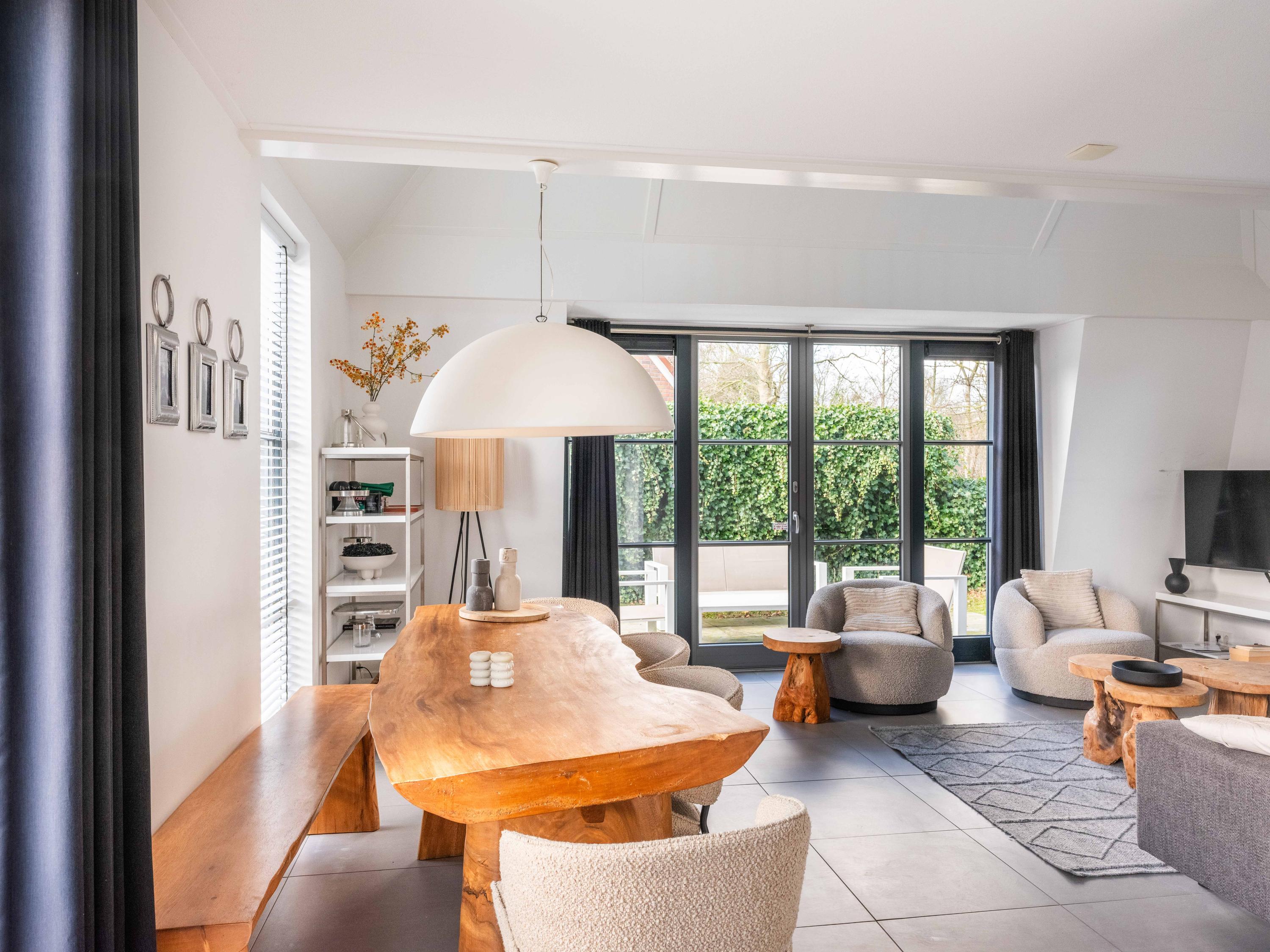 De tuin is heerlijk groen en biedt veel privacy. Hier vindt u een jacuzzi en zowel aan de voor- als achterzijde een terras. Daarnaast is er een eigen parkeerplaats met een laadpaal.