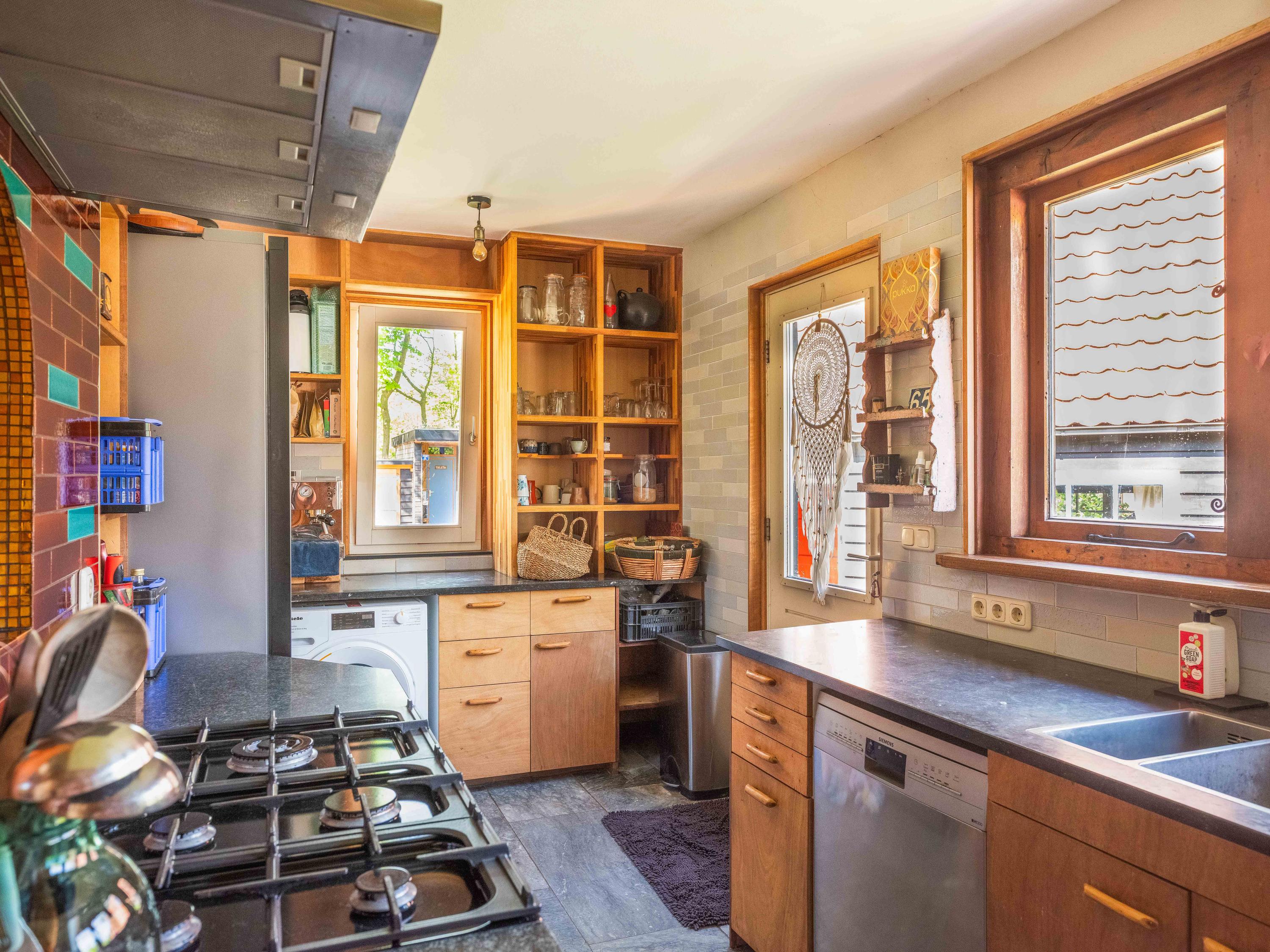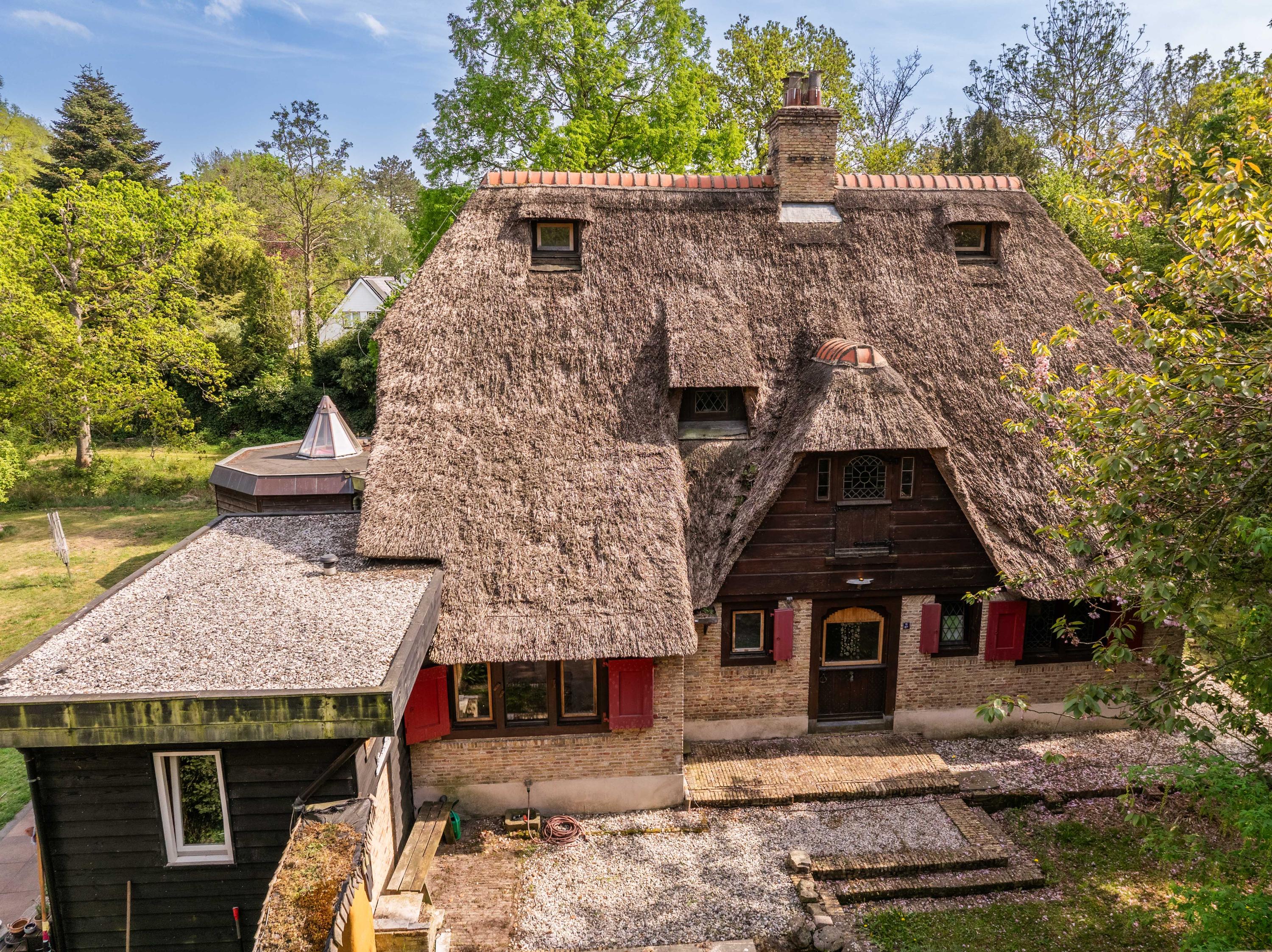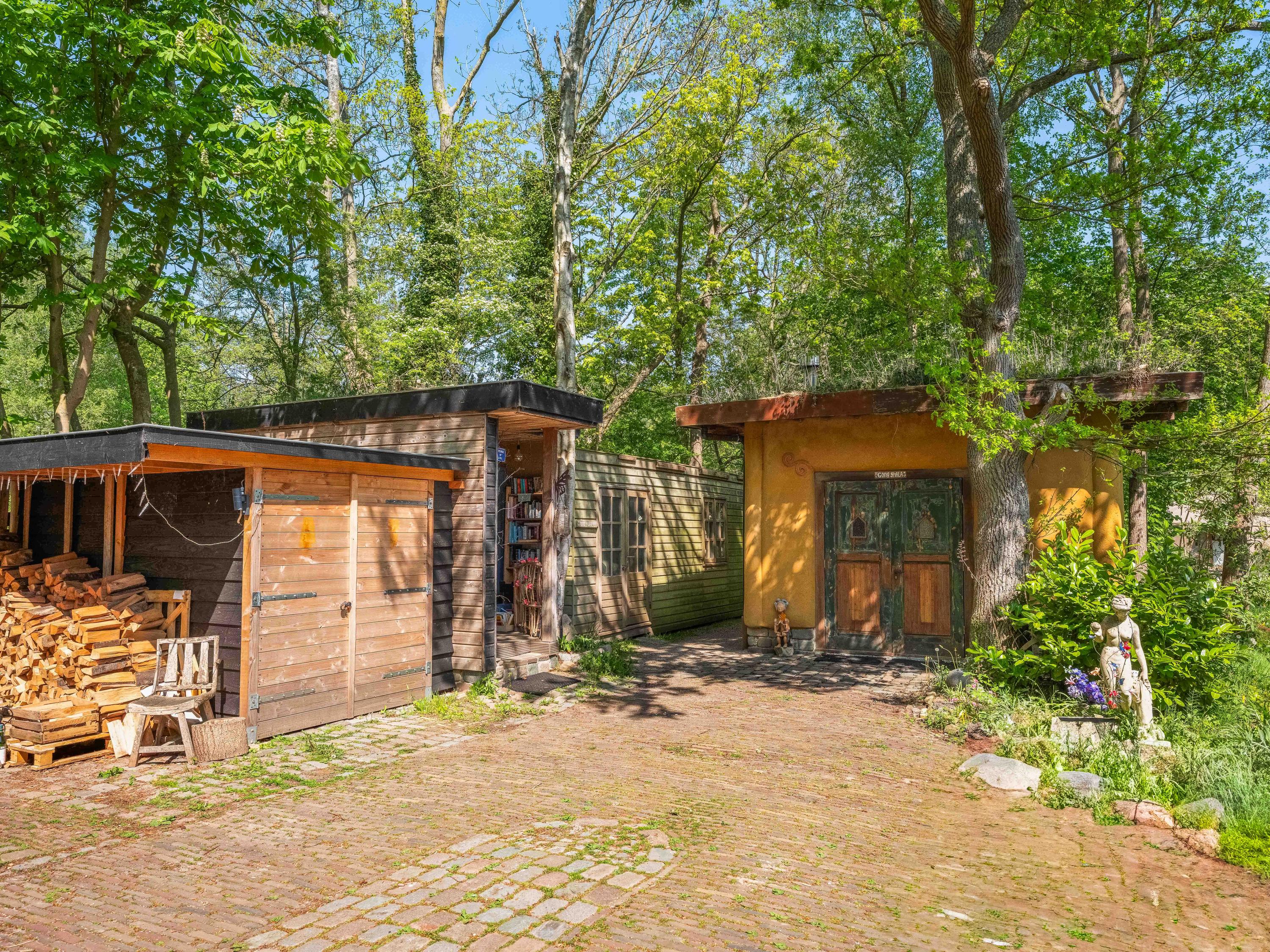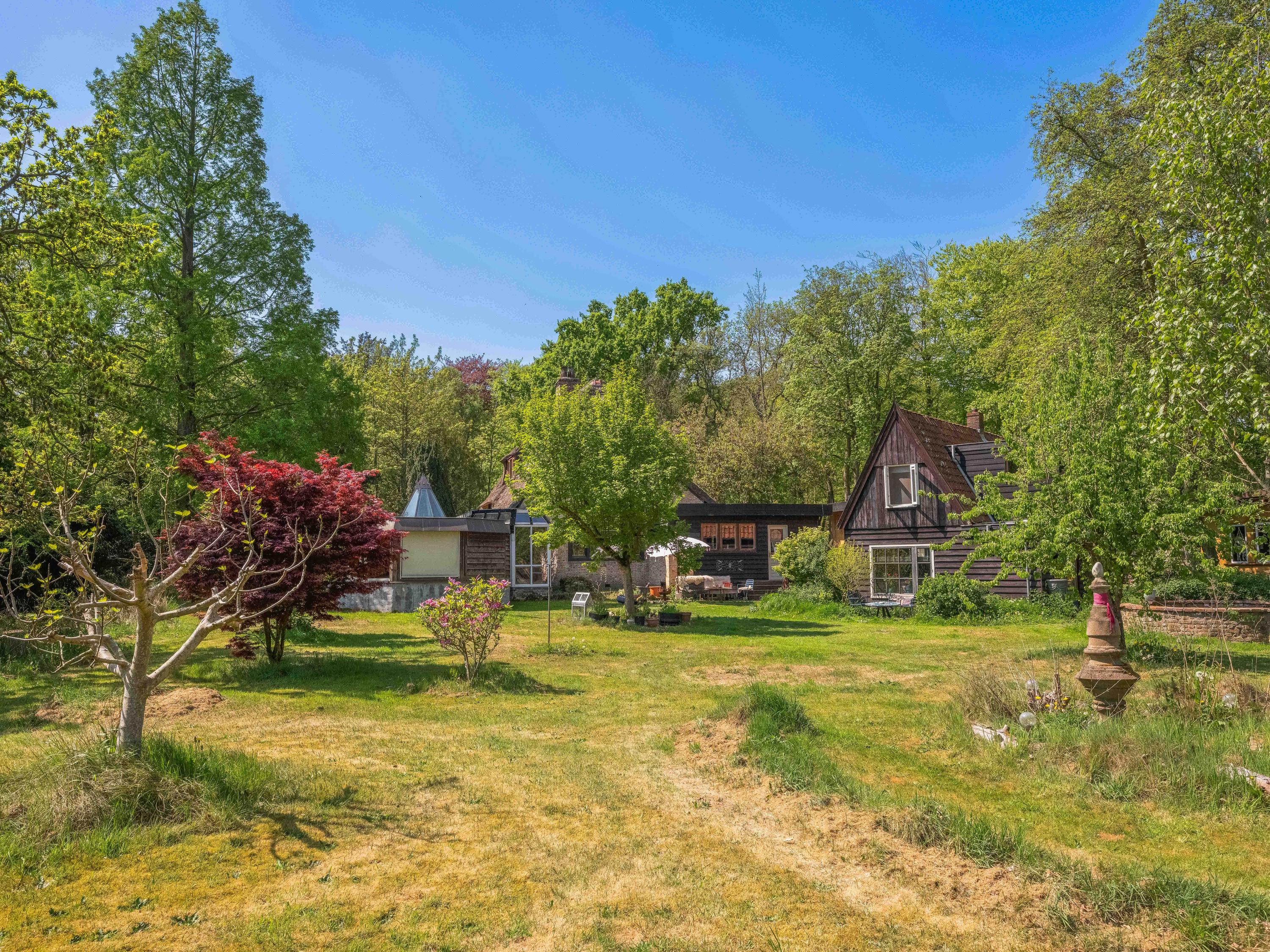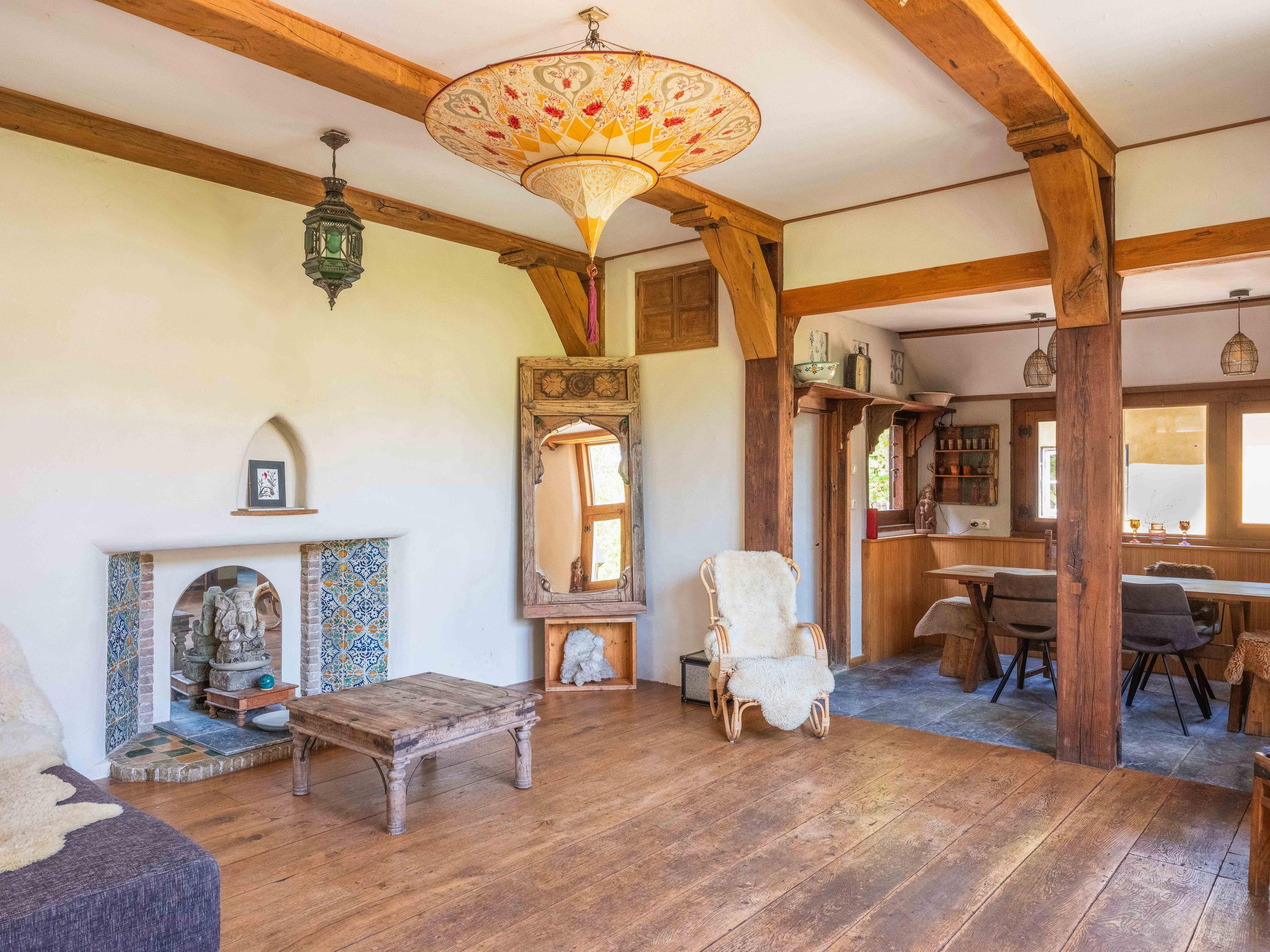 A long forest path leads you to this striking property, built in 1935 using 17th-century materials and designed by architect Royaards. The house exudes character and history: robust fireplaces – currently not functional but eligible for renovation – antique elements such as solid oak beams and floors, and clay-plastered walls that create a pleasant indoor climate and promote restful sleep. Here, you experience the luxury of silence, space, and privacy, surrounded by the scent of the forest, the gentle rustling of trees, and the songs of countless birds – this is truly a bird lover’s paradise.