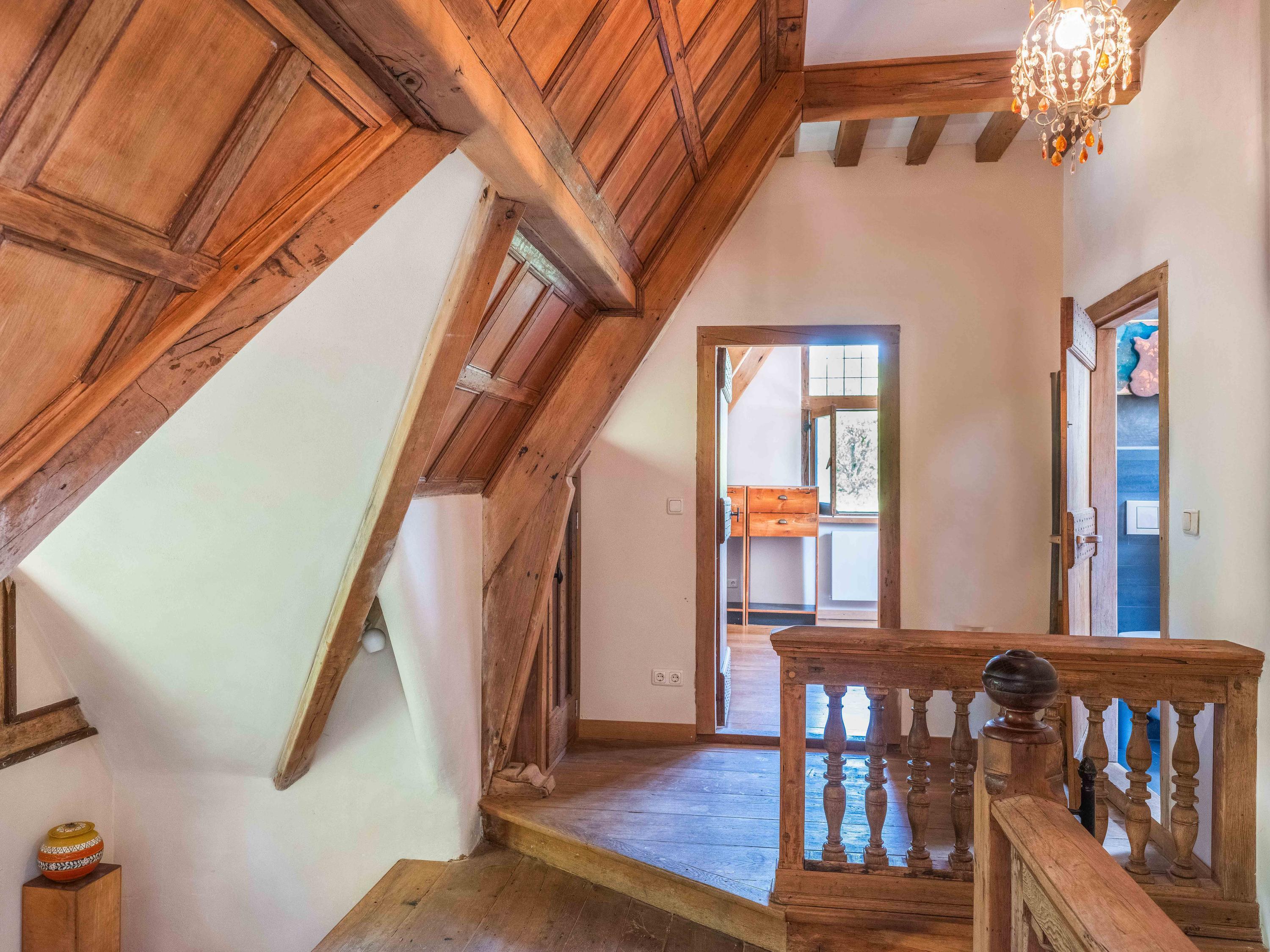 Let us take you inside the main residence. The ground floor welcomes you with a bright entrance, an open staircase, and a toilet. The kitchen, utility room, and cellar offer plenty of possibilities. The attached office is a pleasant and inspiring space. The garden-side living room features a charming fireplace, while the front living room includes a second fireplace and a raised alcove.
