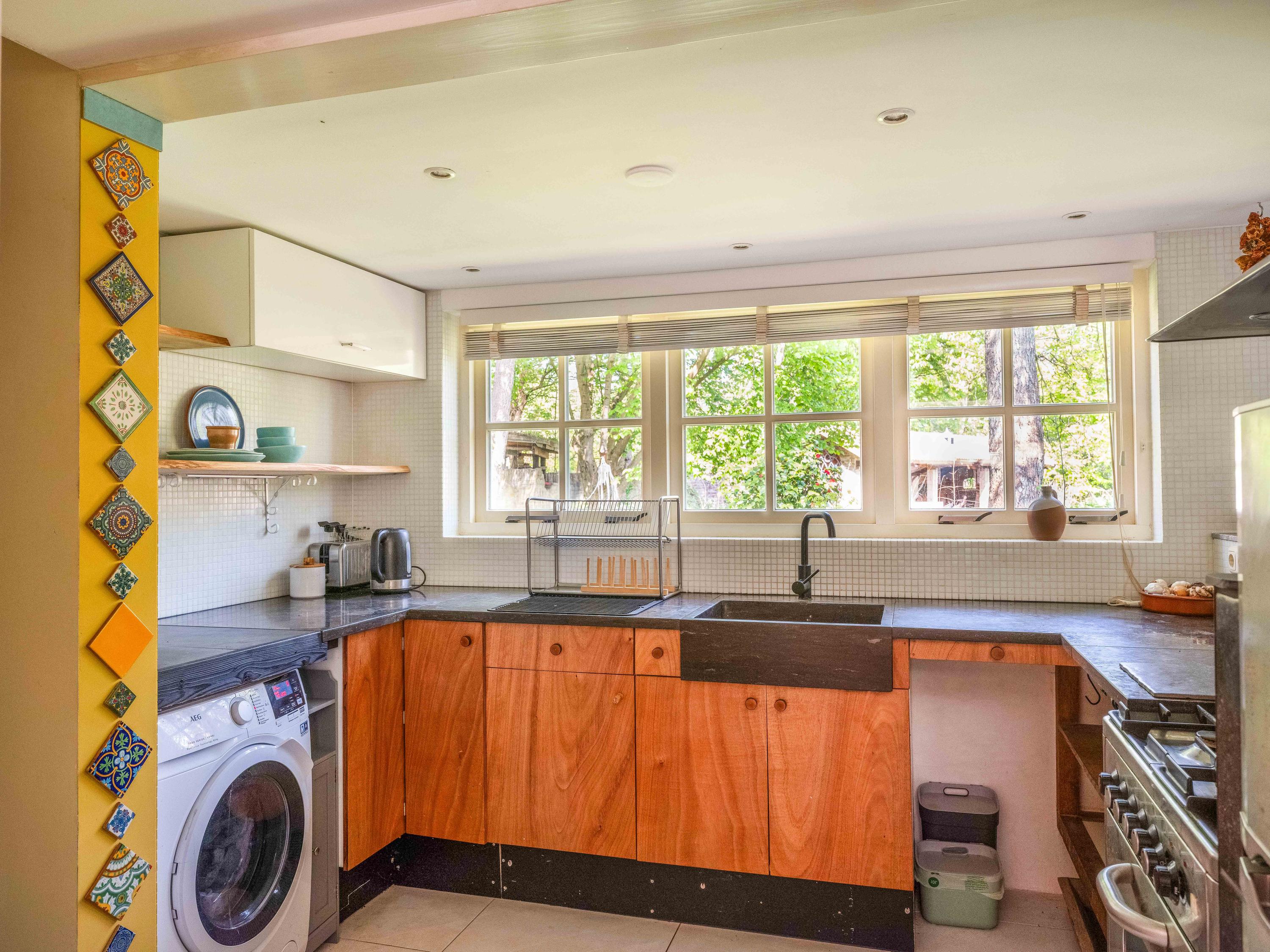 The generous plot of over 7,000 m² is a haven of tranquility, entirely enclosed by a moat with multiple dune streams, and landscaped with unique groups of trees in a thoughtfully designed pattern. In addition to the main house, you’ll find a separate, fully functional guest house and several charming outbuildings and covered spaces, making this property a truly unique ensemble. Whether you’re looking to relax, find inspiration, entertain guests, enjoy a cup of tea in the lovely tea pavilion, or bake a pizza in your very own clay outdoor oven – this country home offers it all.