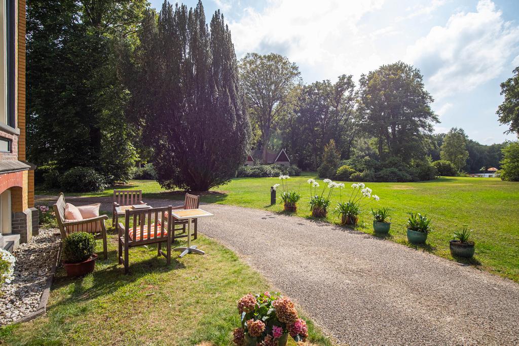 The landscaped estate extends to 5 hectares and borders the private Vegelin woodland, including a large pond. The grounds feature a terrace, a historic tea pavilion dating from circa 1900, a waterside gazebo and a carriage house with plans for conversion into additional guest accommodation or residential space with a separate driveway.