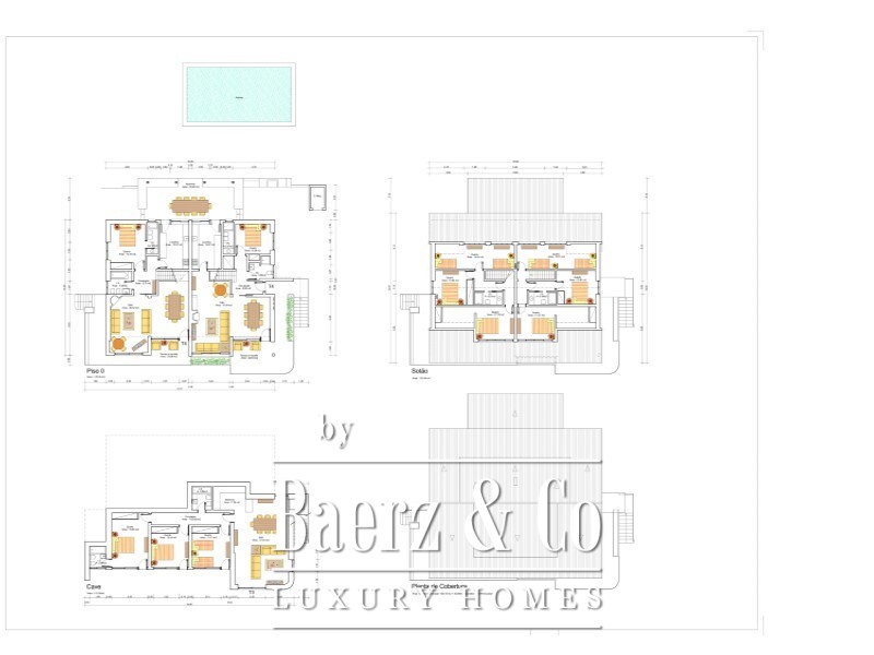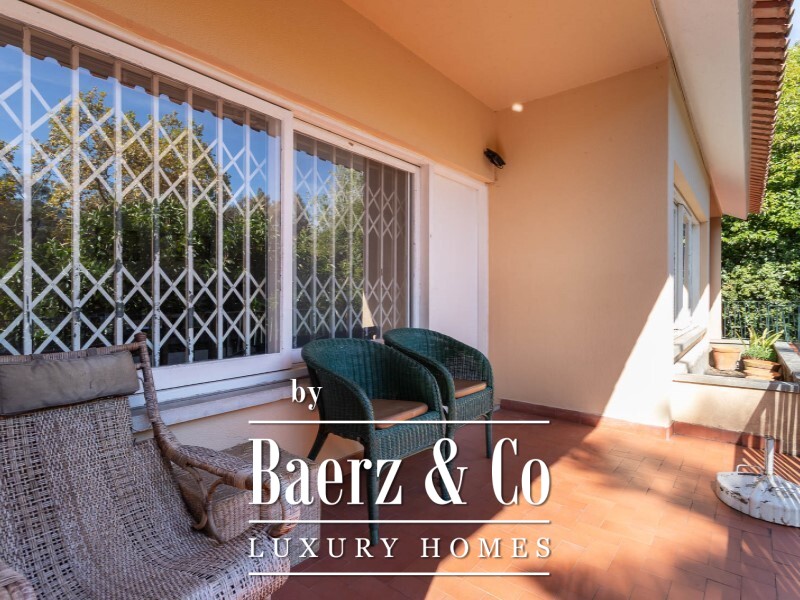 The house offers 380 sqm of private area, spread over three floors (ground floor and two upper levels). It features a swimming pool, garden, a 200 sqm garage, and several porches and terraces that create multiple outdoor leisure and living areas.