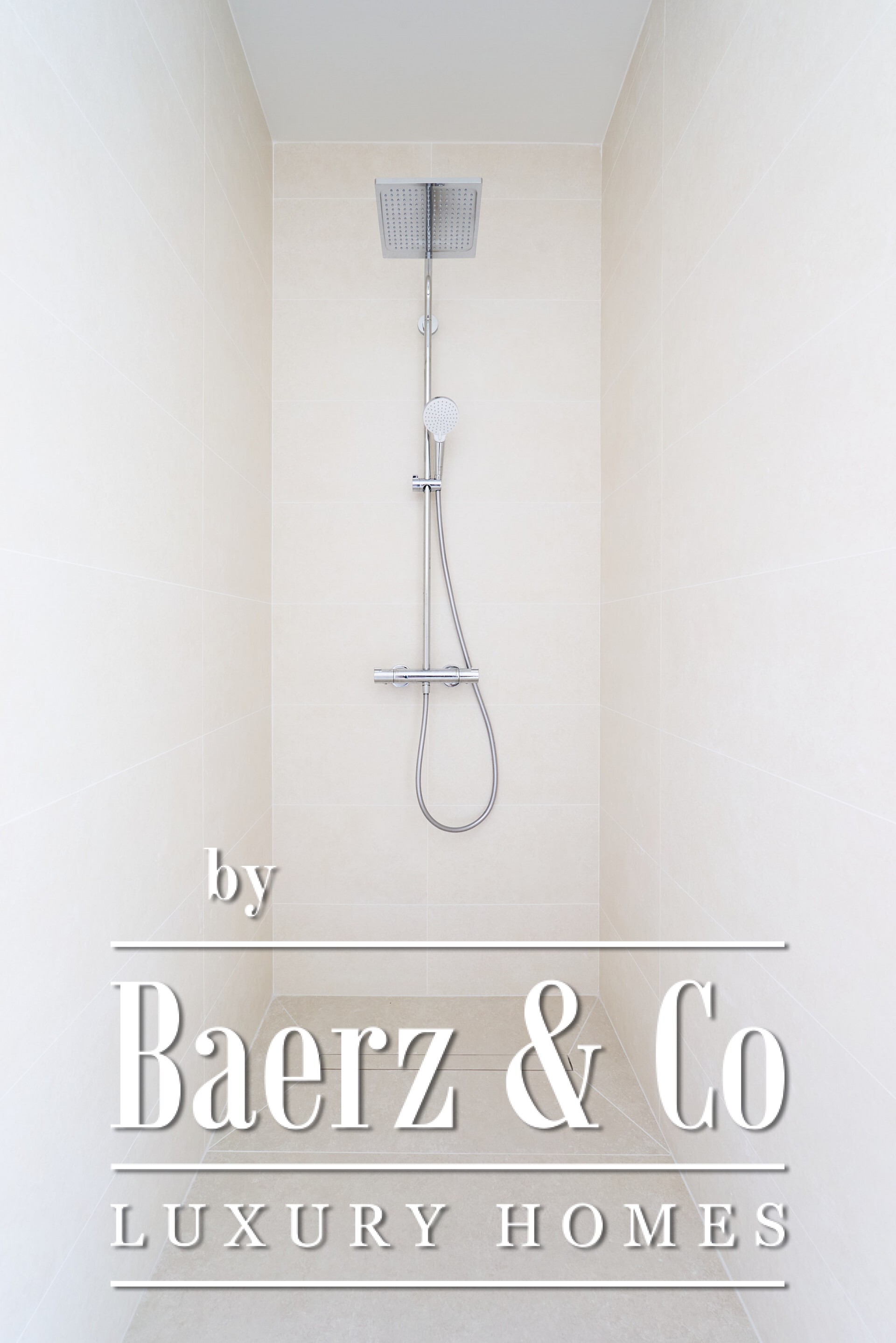 The private quarters include three bedrooms, with the master suite offering a private terrace, walk-in dressing room, and en-suite bathroom. Two guest bedrooms share a tranquil space on the ground floor, each enjoying garden access. Throughout, premium materials define the mood: marble fireplaces, Reynaers windows, underfloor heating in bathrooms, and a commitment to understated comfort.