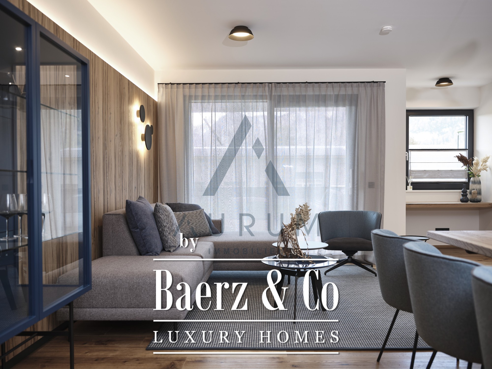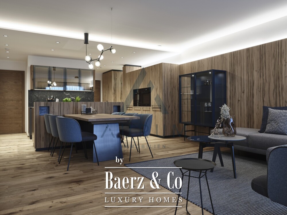 Garden apartment St. Johann in Tirol presents a refined living experience designed for those who appreciate understated luxury and breathtaking mountain panoramas. Upon entering, a thoughtfully arranged layout welcomes you, balancing privacy and openness with a generous living and dining area at the heart of the home. The space flows naturally onto a sun-drenched terrace and into a private garden, framing signature views of the Wilder Kaiser range. The open-plan kitchen, fitted with Miele appliances, compliments the elegant atmosphere and blends seamlessly with the rest of the interiors finished to high standards, including bespoke Aufschnaiter furnishings.