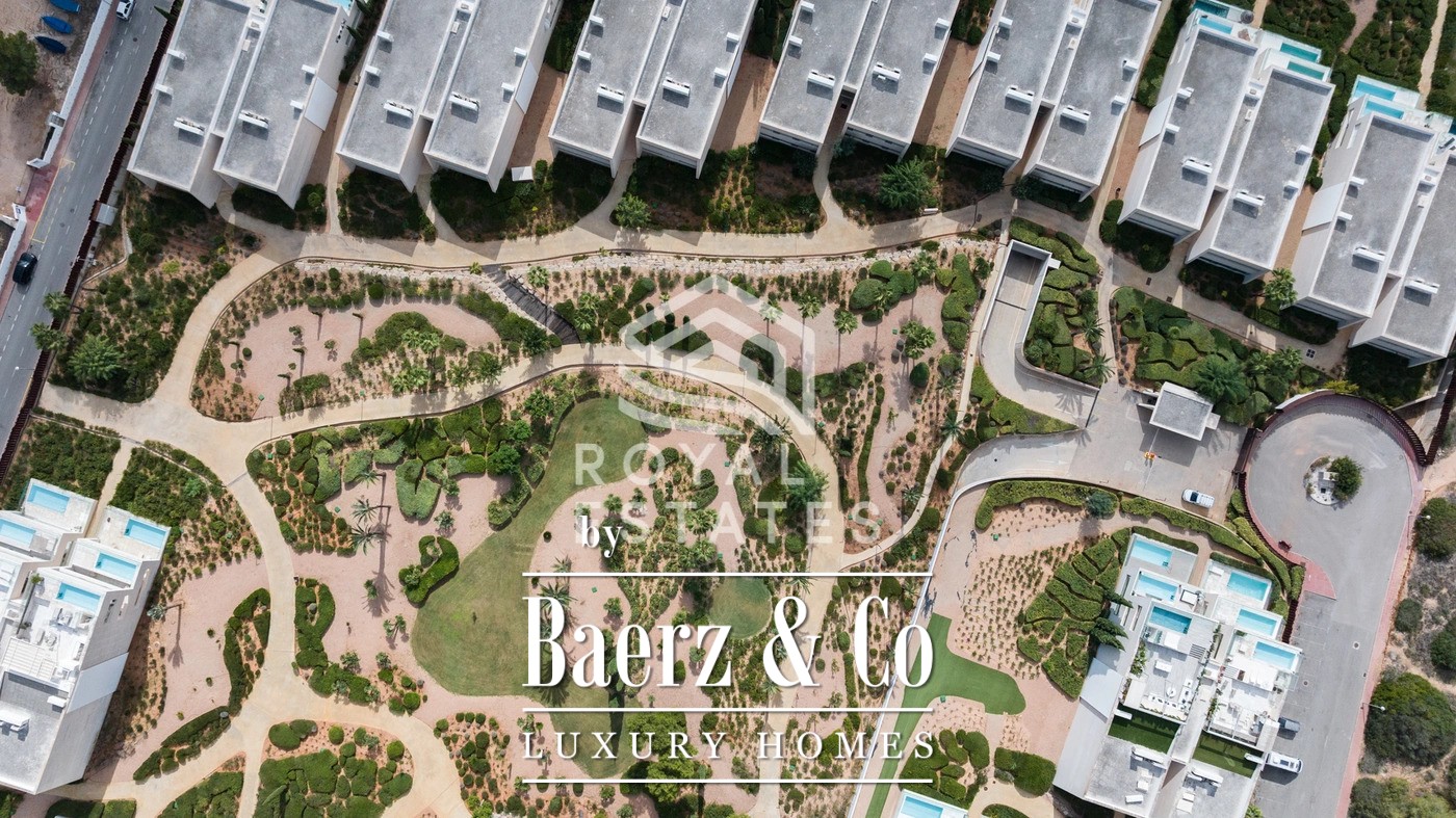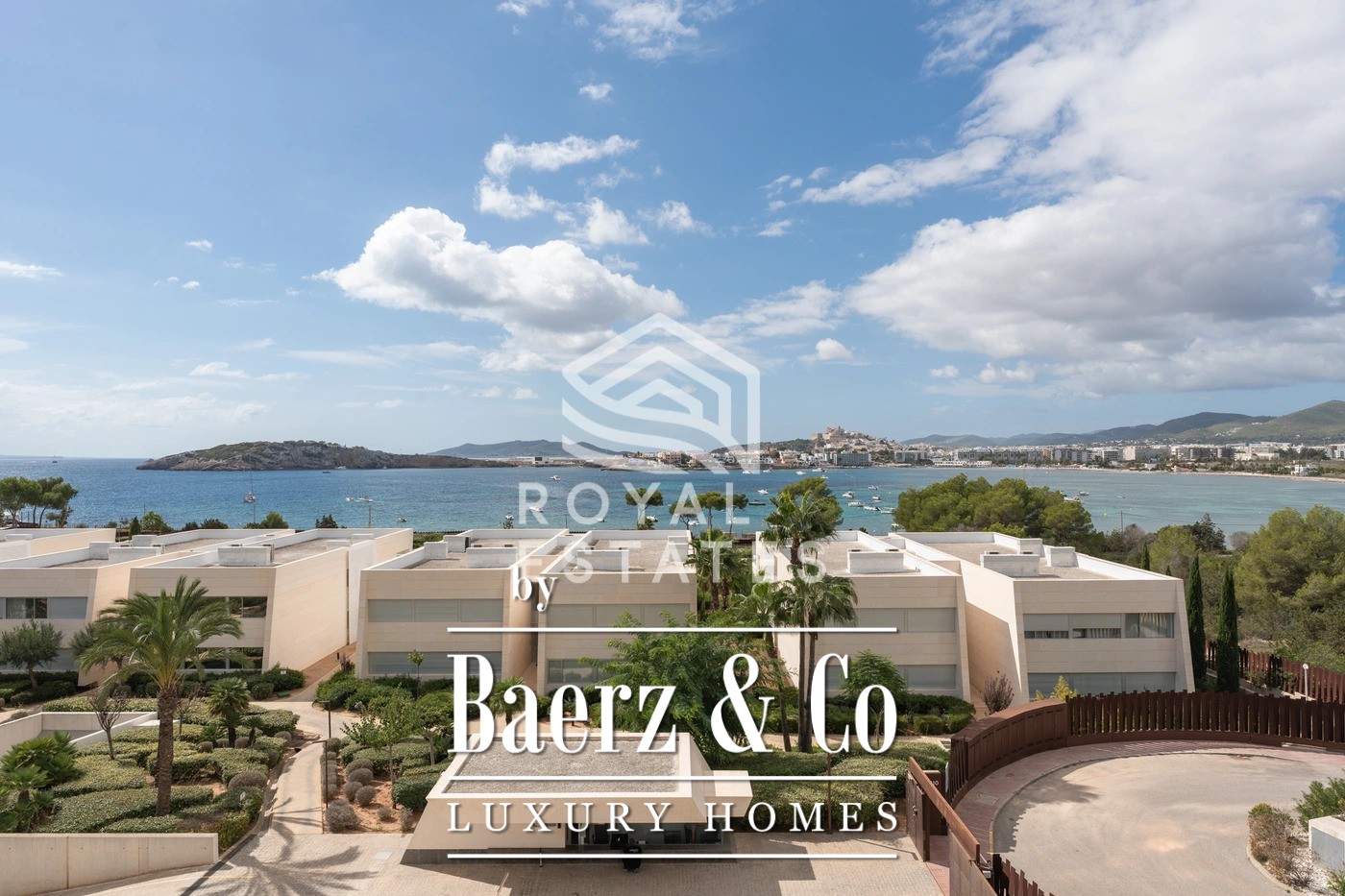 A private rooftop terrace, complete with swimming pool and expansive solarium, surveys the calm waters of Talamanca Bay and the distant lights of Ibiza Town. Two private parking spaces and a 30 m² storage room add utility while communal amenities—designer pool, landscaped gardens, round-the-clock security—reinforce the sense of tranquility and discretion.