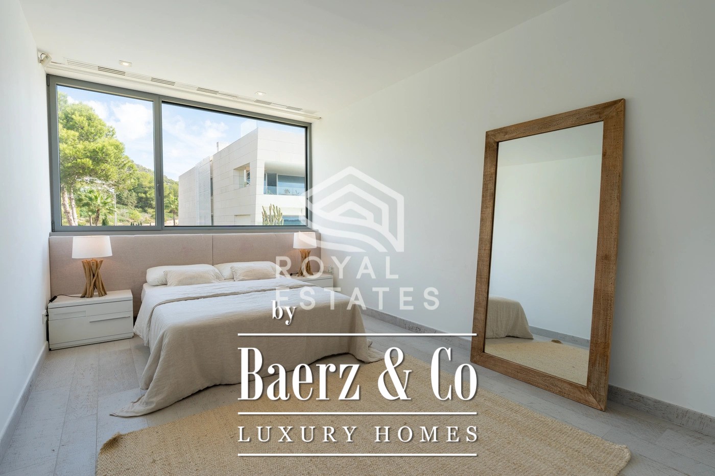 Within walking distance lie Talamanca Beach, acclaimed restaurants, and the cosmopolitan atmosphere of Marina Botafoch. The international airport is reached in under twenty minutes. This penthouse in Es Pouet offers not simply space and architecture but the rare promise of seafront living paired with ease and exclusivity.