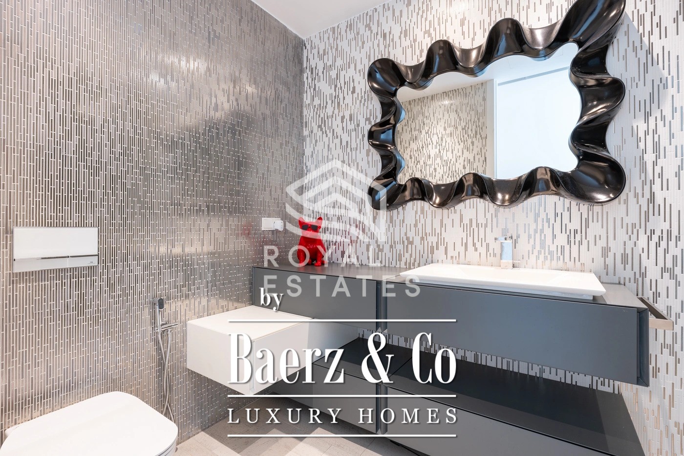Four bedrooms are arranged for privacy and comfort, with three en-suite bathrooms complementing the thoughtful layout. The master suite, distinguished by direct terrace access and views across the bay, reflects a commitment to restraint and premium materials. A contemporary kitchen blends understated elegance with practicality while a guest toilet and dedicated laundry room provide further convenience.