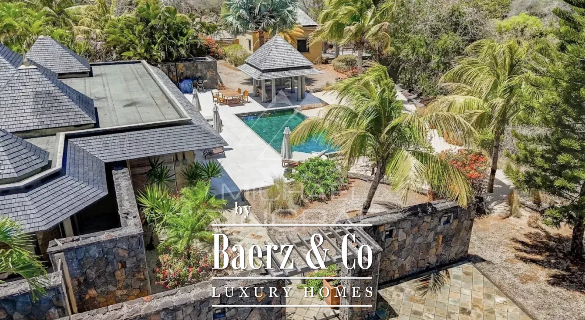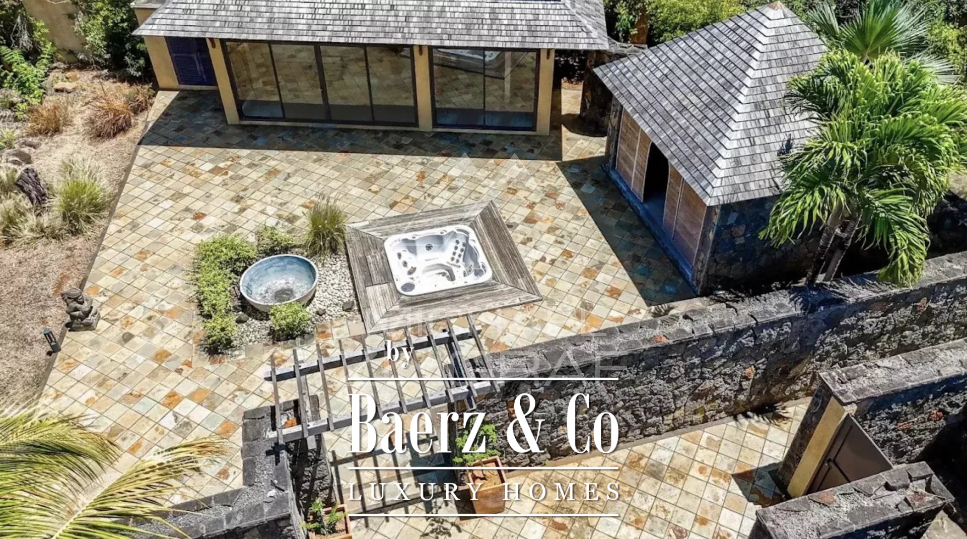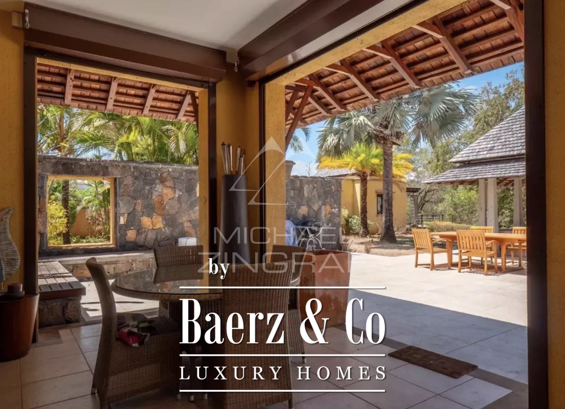 Villa Tamarin Mauritius offers a rare intersection of privacy, security, and refined tropical living within the highly regarded Tamarina estate. This property provides 551 m² of living space across five en-suite bedrooms, each conceived as a retreat imbued with quiet sophistication. The villa unfolds across a landscaped plot of 2,845 m², with natural light illuminating expansive communal areas and enhancing the sense of openness.