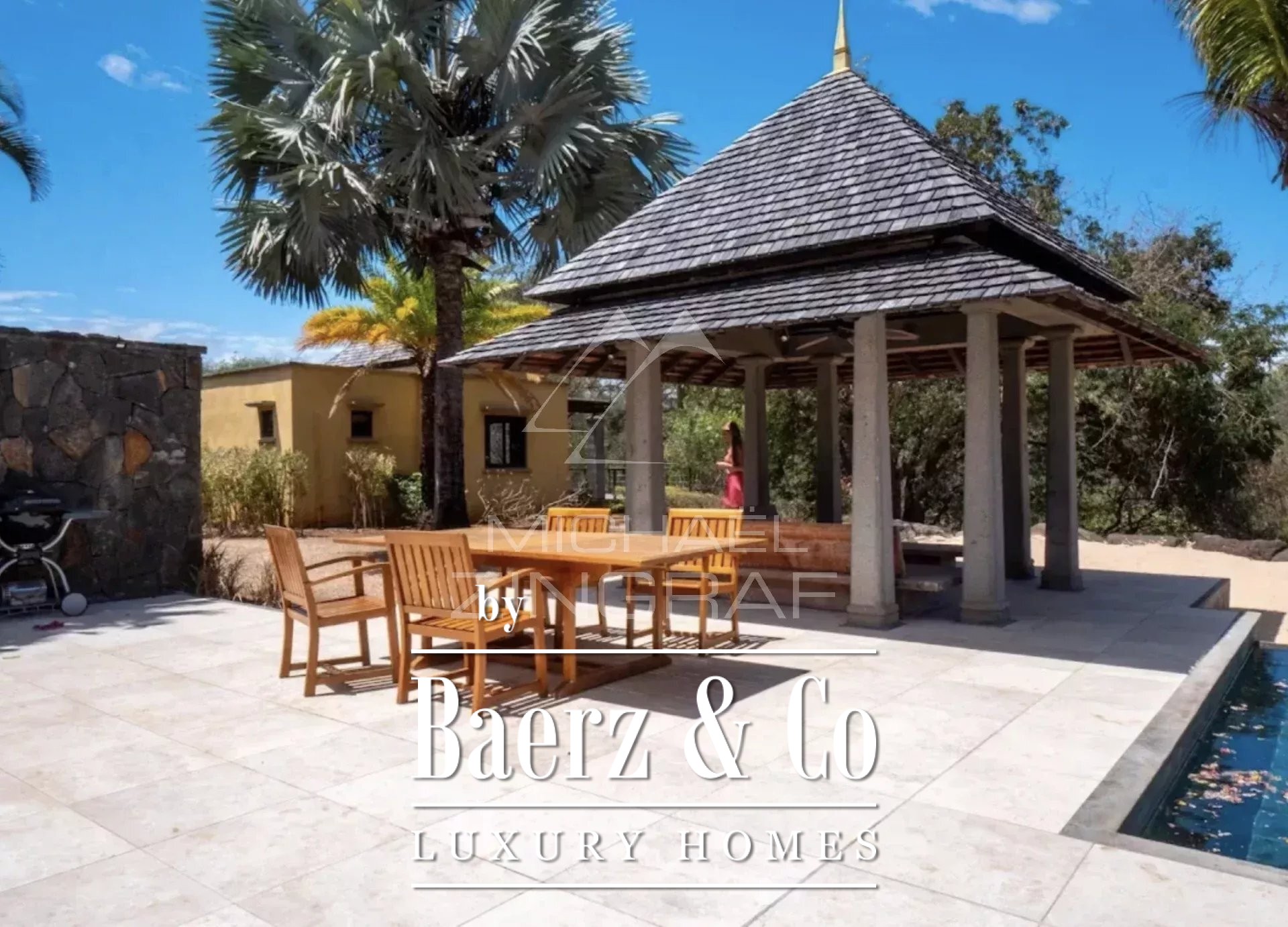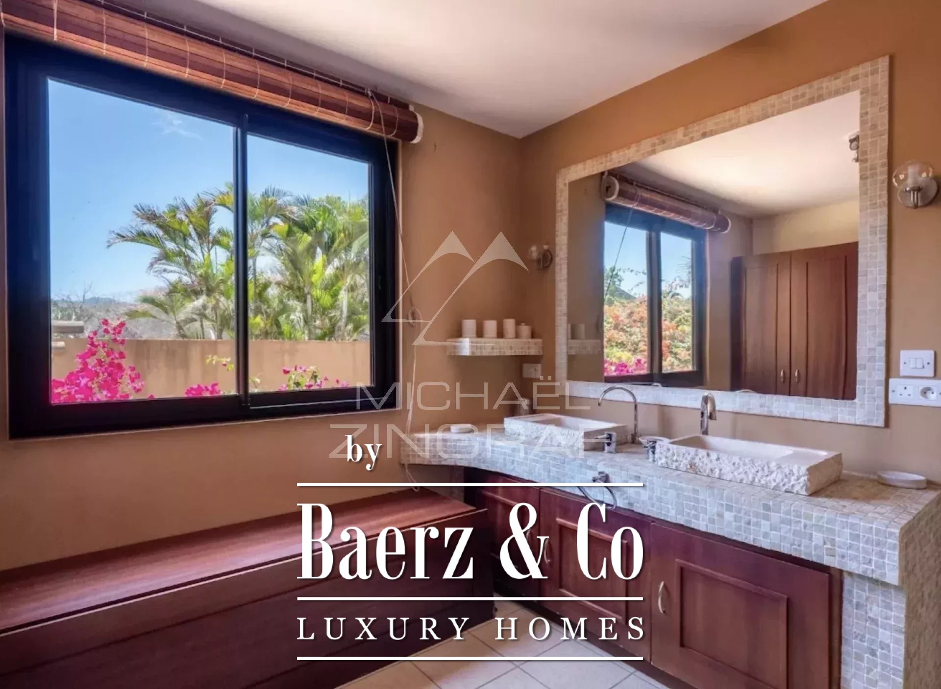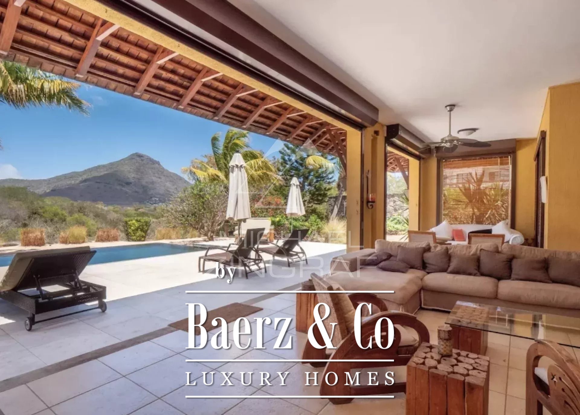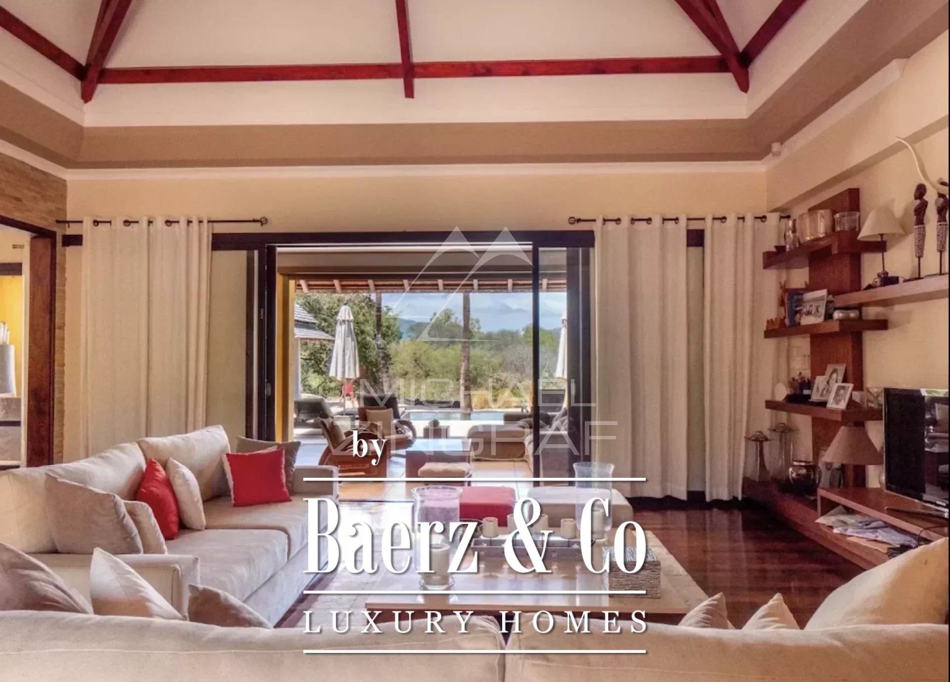 Villa Tamarin Mauritius offers a rare intersection of privacy, security, and refined tropical living within the highly regarded Tamarina estate. This property provides 551 m² of living space across five en-suite bedrooms, each conceived as a retreat imbued with quiet sophistication. The villa unfolds across a landscaped plot of 2,845 m², with natural light illuminating expansive communal areas and enhancing the sense of openness.
