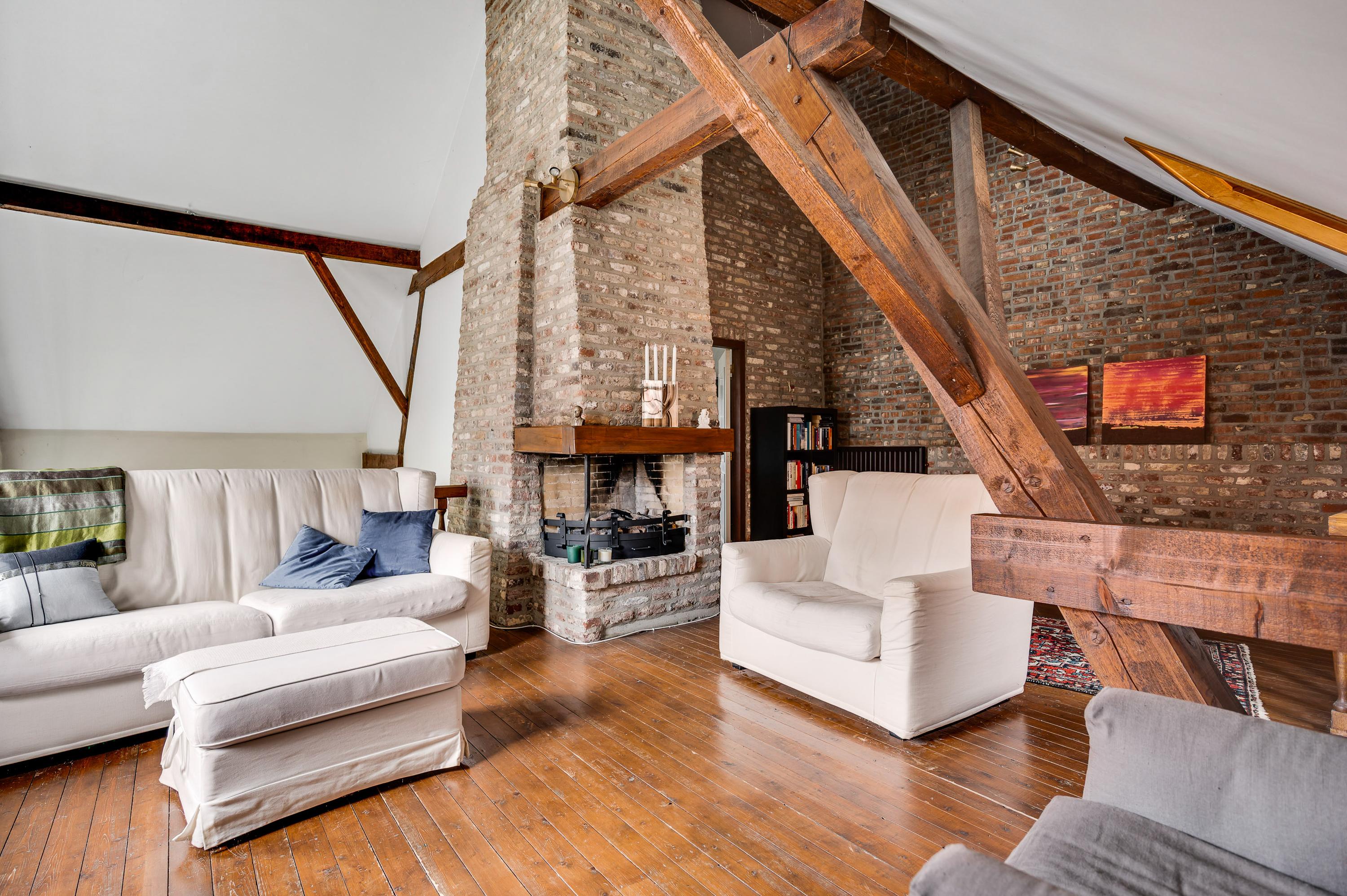 The spacious hall with a fireplace and meter cupboard provides access to the toilet, a bedroom with a separate bathroom, and the kitchen. The stairs to the first floor are also accessible from the hall. The hall also served as the B&B's former living room. This space can be used for various purposes.