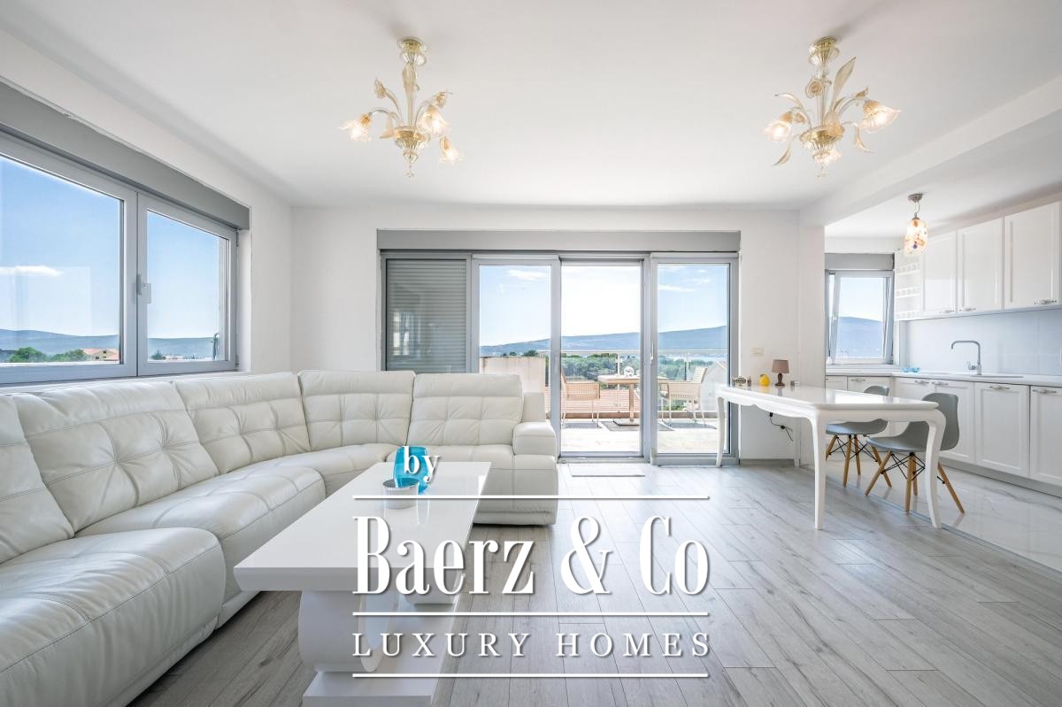 Structure of the penthouse: hallway, living room with kitchenand dining table, 3 bedrooms, 2 bathrooms, storage room and 2 terraces. It hasa sea view an the view of the mountains thatsurround it. The penthouse is fully furnished and read for moving in